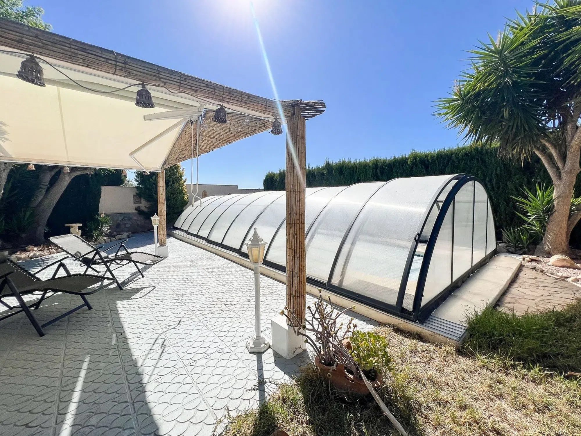 Descubre esta magnífica villa reformada en Mutxamel, Alicante, donde el confort moderno se une al encanto clásico. Ubicada en una parcela de 1.125 m², la propiedad cuenta con una vivienda de 147 m² distribuidos en 4 dormitorios y 3 baños, ideales para familias o quienes buscan espacio y comodidad. La casa ofrece una amplia cocina interior, además de una cocina exterior perfecta para reuniones, una elegante piscina privada, un jardín cuidado al detalle y zona de parking con puerta automática. Dispone también de paneles solares, lo que aporta eficiencia y sostenibilidad. Un hogar único que combina tradición y modernidad en un entorno tranquilo, a pocos minutos de Alicante y sus playas. [IW].