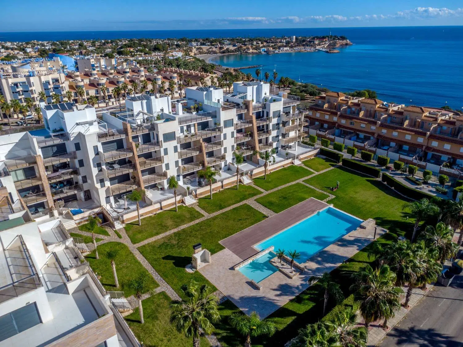¡Apartamento de ensueño en exclusiva urbanización cerca del mar Mediterráneo! Descubra este soleado apartamento de 85 m², perfectamente ubicado en la urbanización cerrada Bioko, a solo 50 metros del paseo marítimo y a solo 5 - 10 minutos a pie de la playa. Con una ubicación orientada al suroeste, se puede disfrutar del sol todo el día, y el apartamento parece nuevo después de haber sido construido en 2016. Hay una encantadora terraza de 14 m² que invita a la relajación al aire libre y a momentos agradables con la familia y los amigos, además tiene una terraza junto a la cocina donde puede disfrutar de su café de la mañana. Con dos dormitorios luminosos y dos baños modernos, tiene mucho espacio tanto para usted como para sus invitados. La elegante sala de estar con cocina abierta cuenta con electrodomésticos integrados, perfectos para cocinar y socializar. Tres nuevas unidades de aire acondicionado garantizan un clima interior confortable durante todo el año. El piso se vende amueblado con muebles de calidad y está totalmente equipado, listo para entrar a vivir. Además, el apartamento cuenta con persianas eléctricas en el salón, downlights para un ambiente moderno y un ascensor que baja al garaje con un cómodo trastero. La urbanización Bioko ofrece una gran piscina comunitaria con piscina infantil propia, celdas solares, duchas climatizadas y hermosas zonas verdes que proporcionan un escenario perfecto para la relajación y el esparcimiento. Como beneficio adicional, viene con un automóvil Smart for 4, que tiene solo 11,000 km en el mostrador. Esto no es solo un apartamento, sino una forma de vida. Póngase en contacto con nosotros hoy mismo para obtener más información o para concertar una visita. ¡La casa de tus sueños te está esperando! TASAS E IMPUESTOS NO INCLUIDOS. Aviso legal: la información descrita es meramente informativa, no vinculante jurídicamente pudiendo contener algún error.