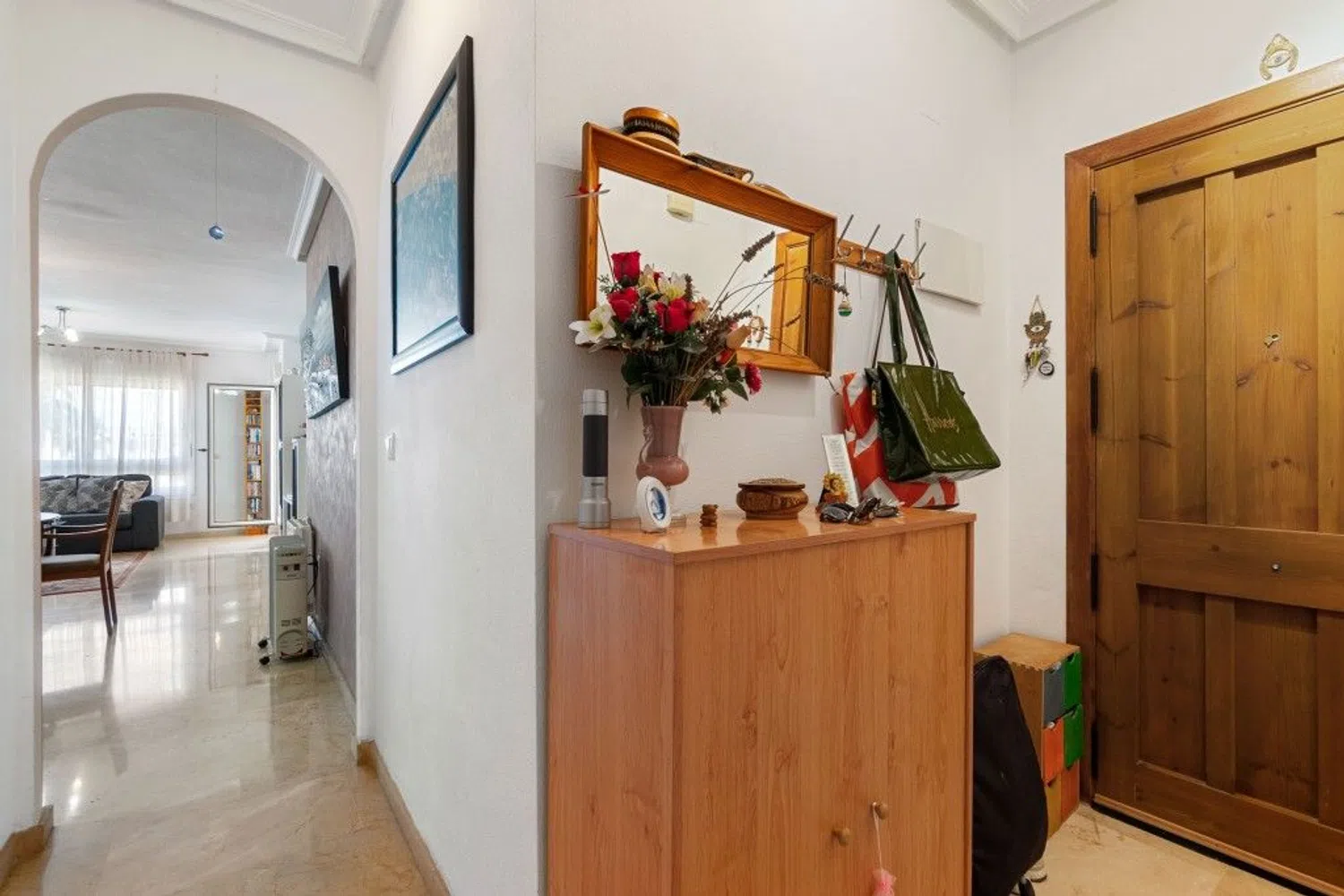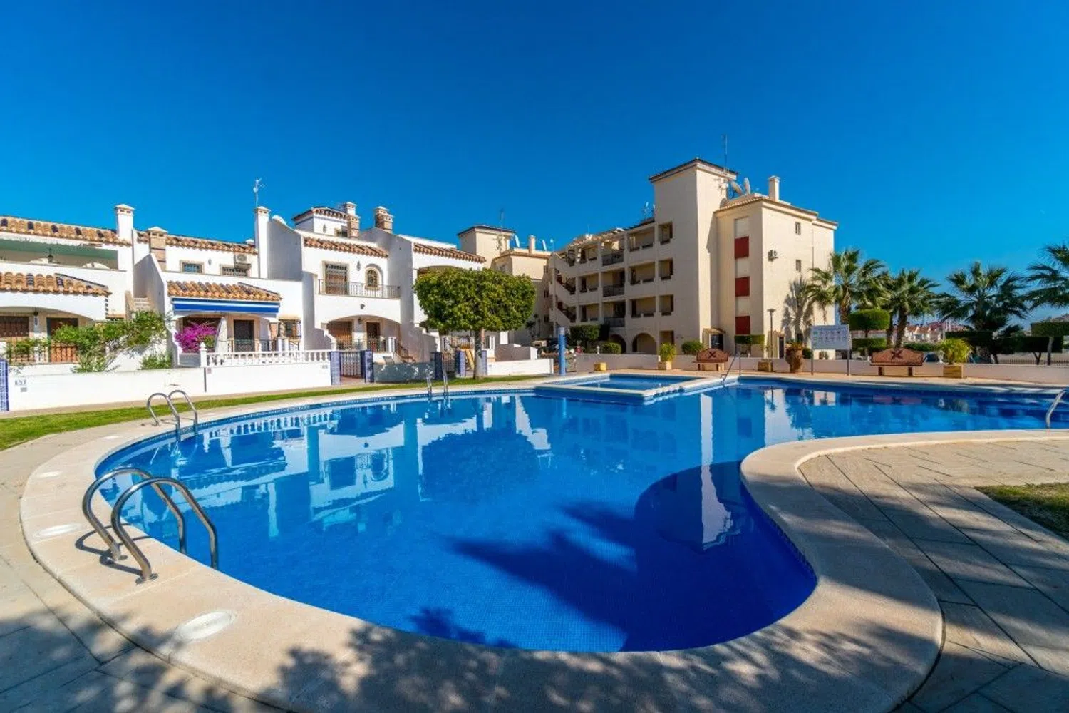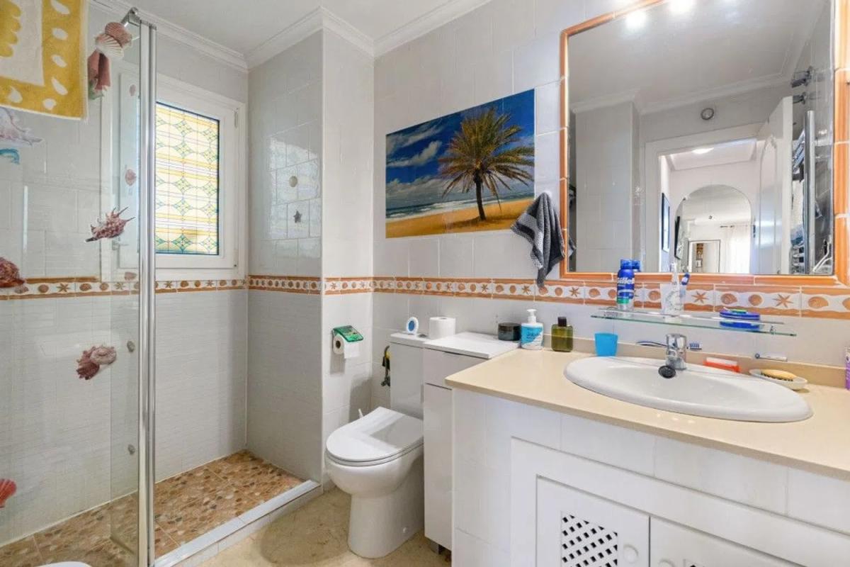 Este encantador apartamento del segundo piso ofrece una mezcla perfecta de confort y estilo. Con dos amplios dormitorios y dos cuartos de baño bien equipados, uno de ellos en suite, esta casa ofrece privacidad y comodidad. La cocina abierta y el salón crean un espacio luminoso y acogedor, ideal tanto para relajarse como para recibir invitados. El apartamento también cuenta con una hermosa terraza, ideal para disfrutar de comidas al aire libre o simplemente relajarse mientras disfruta del aire fresco. La comunidad cerrada ofrece un entorno tranquilo y seguro, rodeado de exuberantes zonas verdes que realzan la tranquilidad del entorno. Los residentes tienen acceso a una impresionante piscina, ideal para refrescarse en los días calurosos. Además, una terraza comunitaria en la azotea ofrece impresionantes vistas panorámicas del mar, por lo que es un lugar ideal para disfrutar de una puesta de sol o simplemente relajarse y contemplar el impresionante entorno. A poca distancia, tiene un colegio, tiendas, bares y La Zenia Boulevard. Para más información no dude en ponerse en contacto con nosotros.