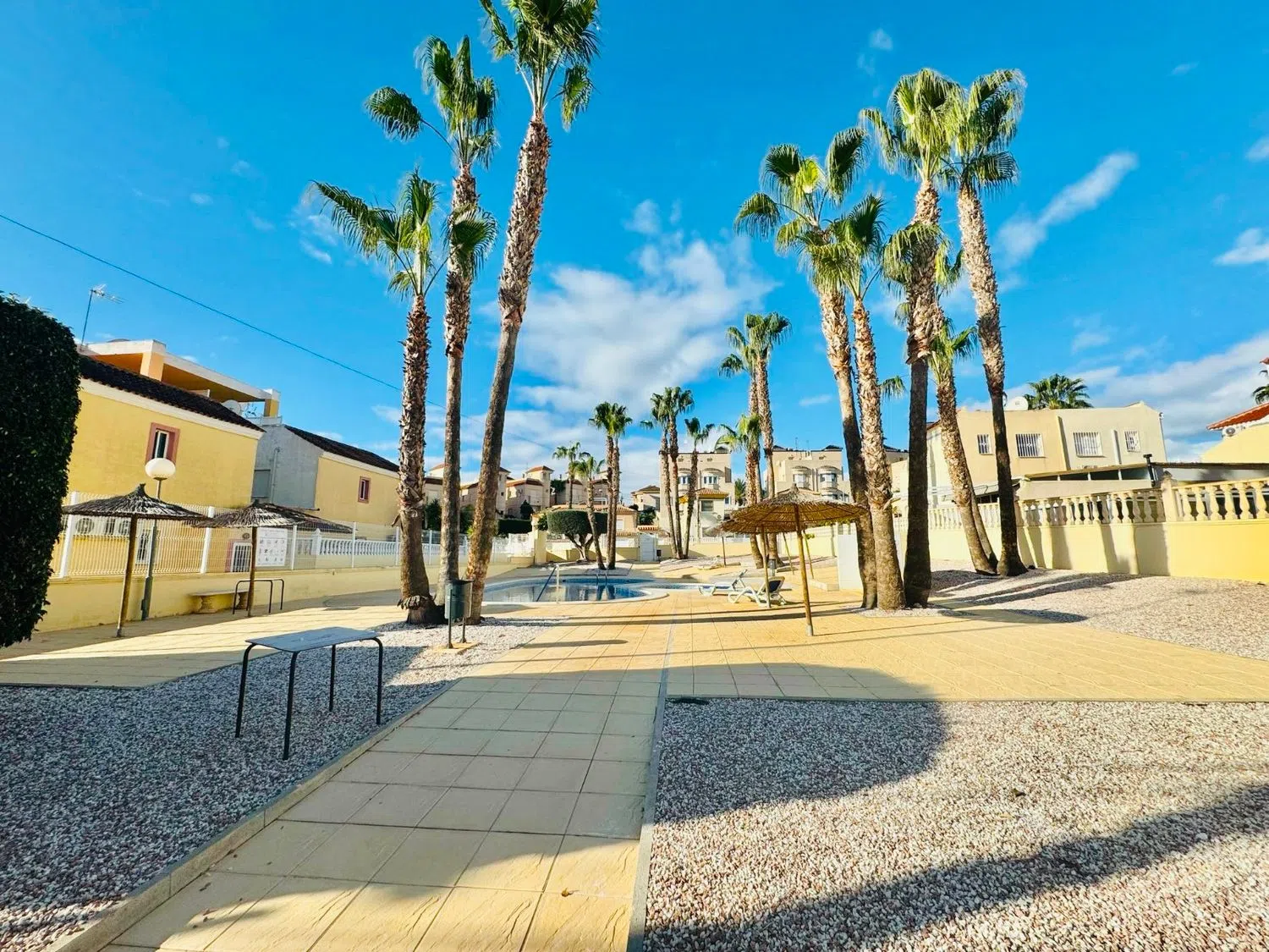 Hermoso Bungalow en Planta Alta en Las Filipinas, Villamartín – 2 Dormitorios, 1 Baño, con Solárium Este encantador bungalow en planta alta con 2 dormitorios y 1 baño está ubicado en la deseada zona de Las Filipinas, en Villamartín. Ofrece el hogar perfecto para vivir todo el año, pasar unas relajantes vacaciones o como una excelente inversión. � Solárium de 30 m² – Un espacio ideal para disfrutar del sol, relajarte o comer al aire libre. � Orientación Este – Aprovecha la luz del sol por las mañanas y disfruta de una agradable temperatura durante todo el día. �♂️ Piscina comunitaria y amplias áreas verdes muy bien cuidadas, perfectas para disfrutar en familia o hacer ejercicio al aire libre. � Plaza de aparcamiento incluida en el precio, asegurando comodidad y fácil acceso. � Trastero en la planta baja, junto a las escaleras, proporcionando espacio adicional para almacenamiento. � Terraza con acceso directo desde el salón, perfecta para disfrutar de momentos al aire libre sin salir de casa. Este bungalow está cerca de todos los servicios esenciales como campos de golf, playas (a solo unos minutos en coche), supermercados, centros comerciales, colegios y mucho más. La ubicación es ideal para quienes buscan un equilibrio entre la tranquilidad y la proximidad a las comodidades urbanas. Con su maravilloso clima durante todo el año, este bungalow es ideal para quienes buscan un hogar permanente, un refugio de vacaciones o una propiedad para alquilar. No pierdas la oportunidad de hacer tuyo este maravilloso espacio. � Contáctanos hoy mismo para obtener más información o para concertar una visita. ¡Te esperamos!