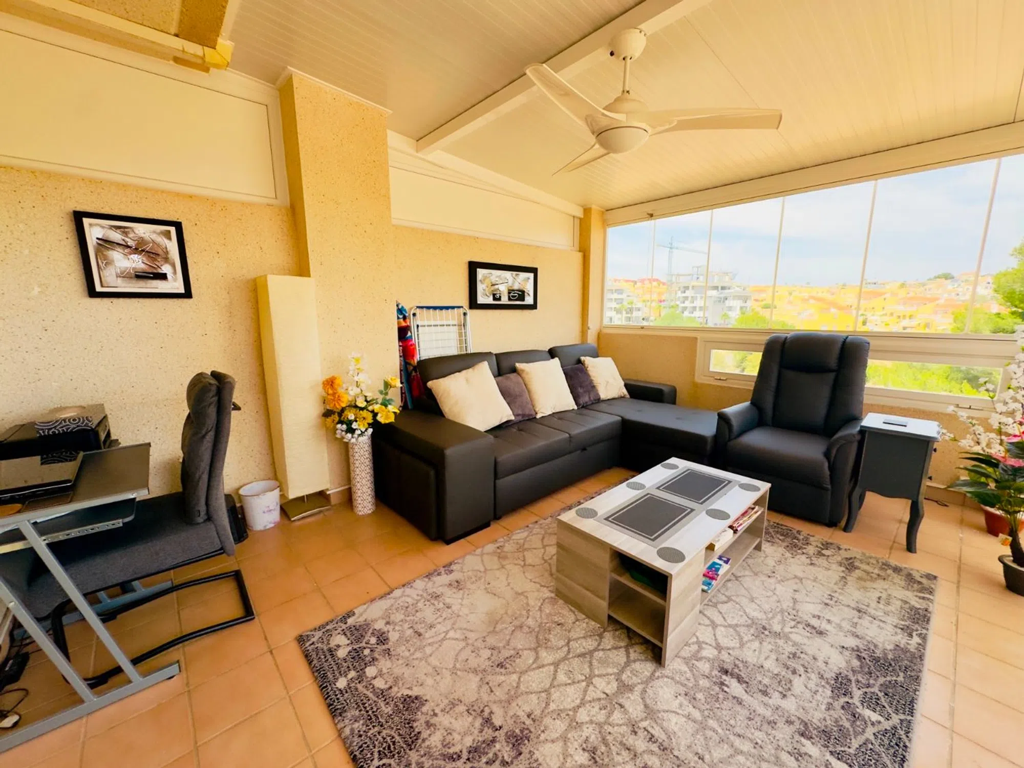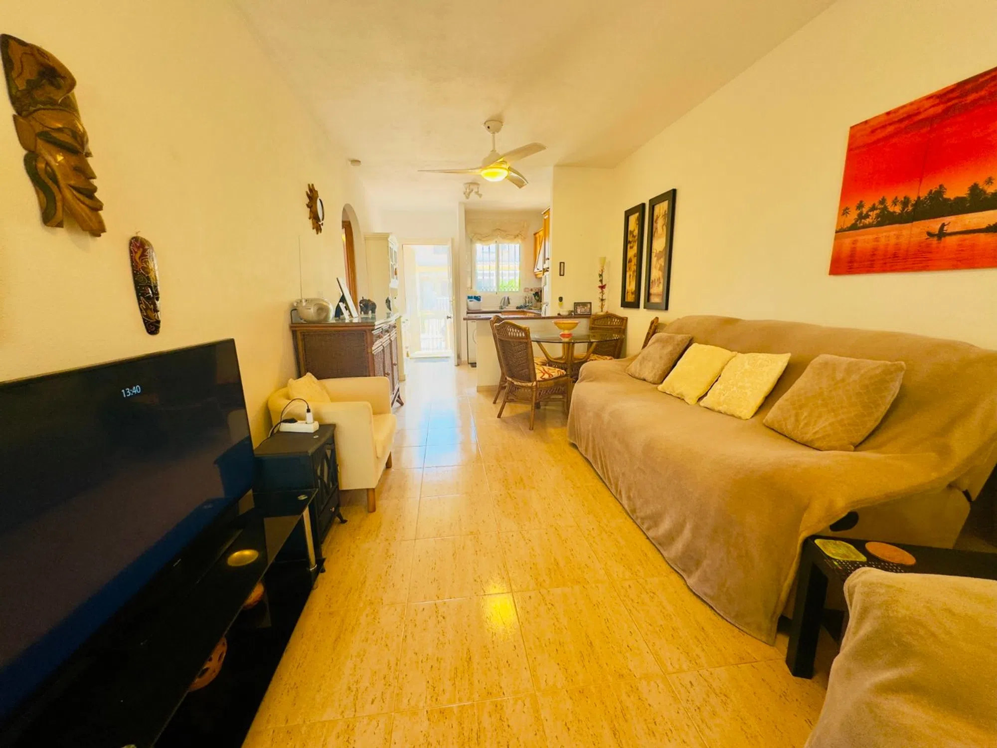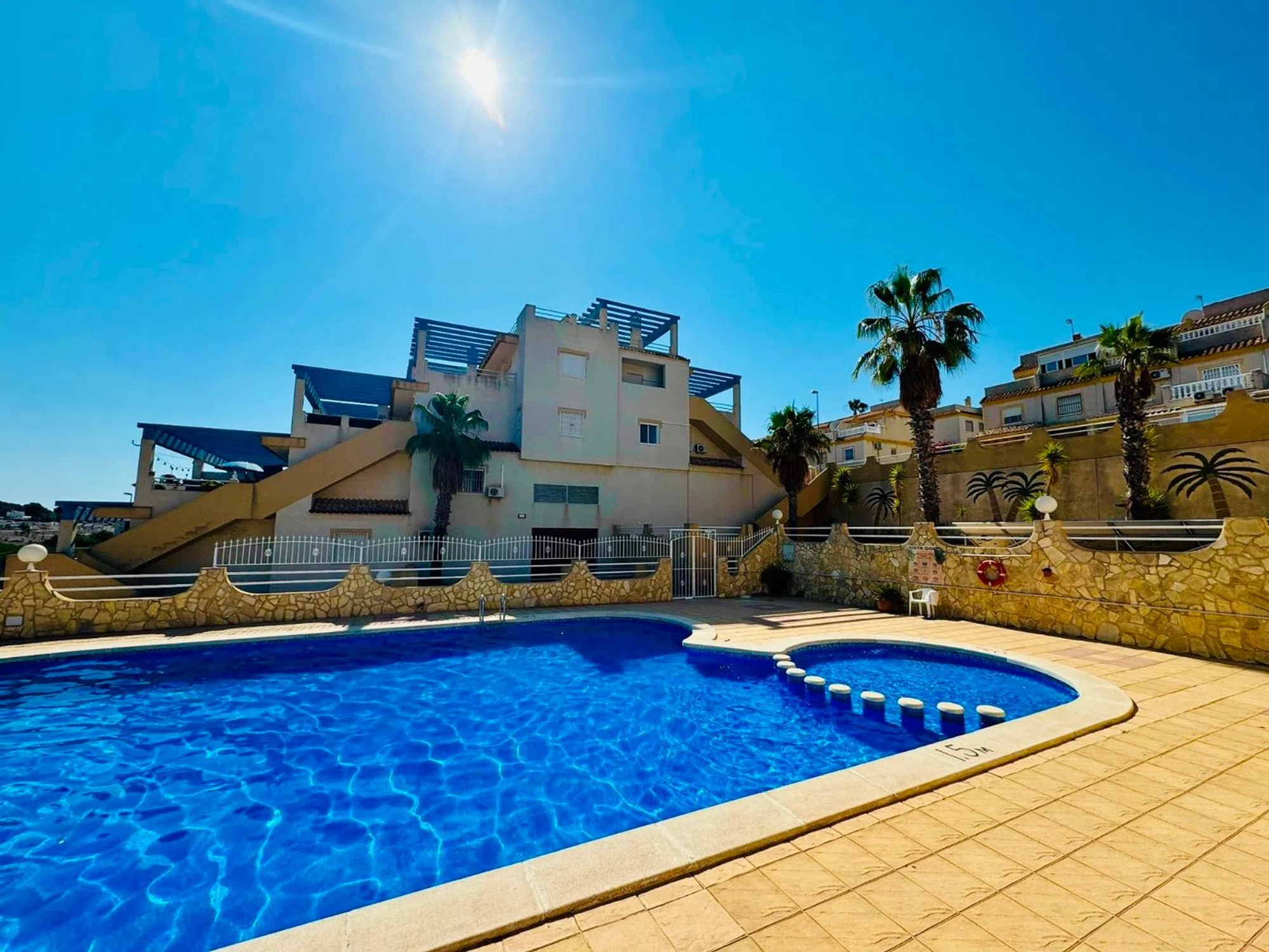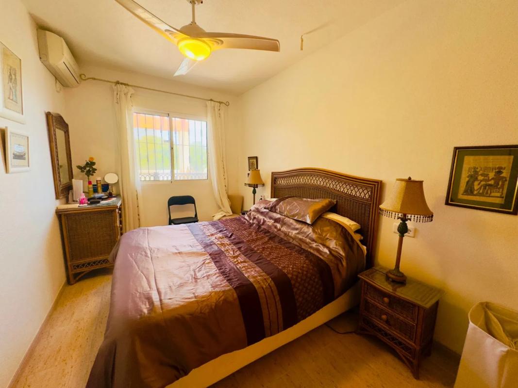Encantador Bungalow en Calle Jamaica, Las Filipinas, Villamartin – Alicante (Costa Blanca) Descubre este acogedor bungalow de orientación este, situado en una tranquila calle residencial de Las Filipinas. Con una superficie construida de 80 m², la vivienda se distribuye en dos amplios dormitorios y un baño completo, todo completamente amueblado y listo para entrar a vivir. La propiedad ofrece múltiples espacios exteriores para disfrutar del clima mediterráneo: un jardín-patio ideal para relajarse, soleadas terrazas y un solárium privado en la azotea, perfecto para tomar el sol o disfrutar de las vistas. Ubicado a tan solo 15 minutos a pie de tiendas, bares, restaurantes y zonas verdes, y a menos de 10 minutos en coche del prestigioso centro comercial La Zenia Boulevard y de las playas de la Costa Blanca. También se encuentra cerca de varios campos de golf y otras comodidades locales. Cuenta con piscina comunitaria para refrescarse en los días de verano y entrada privada para aparcamiento. Una excelente opción tanto como residencia habitual como para escapadas vacacionales.