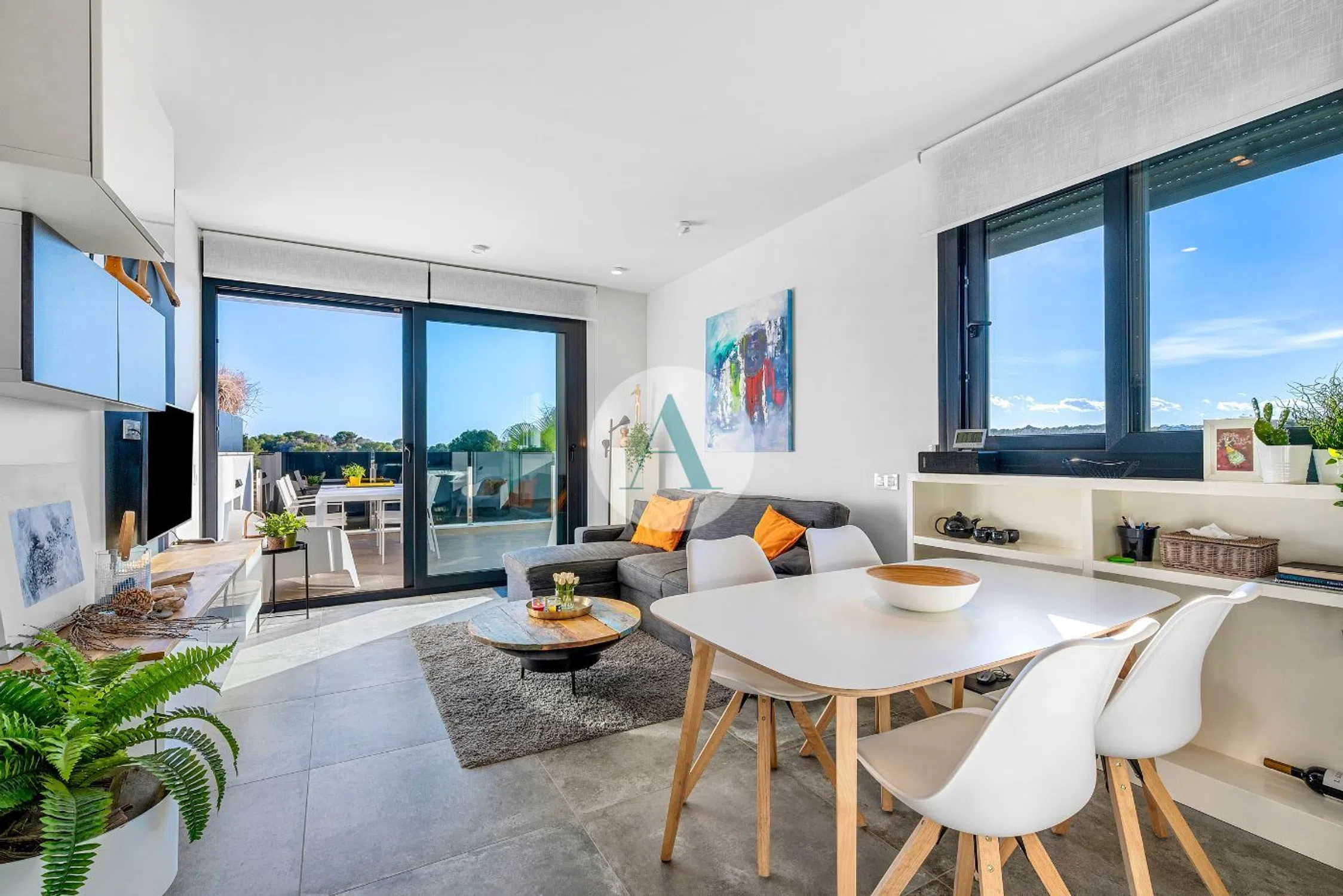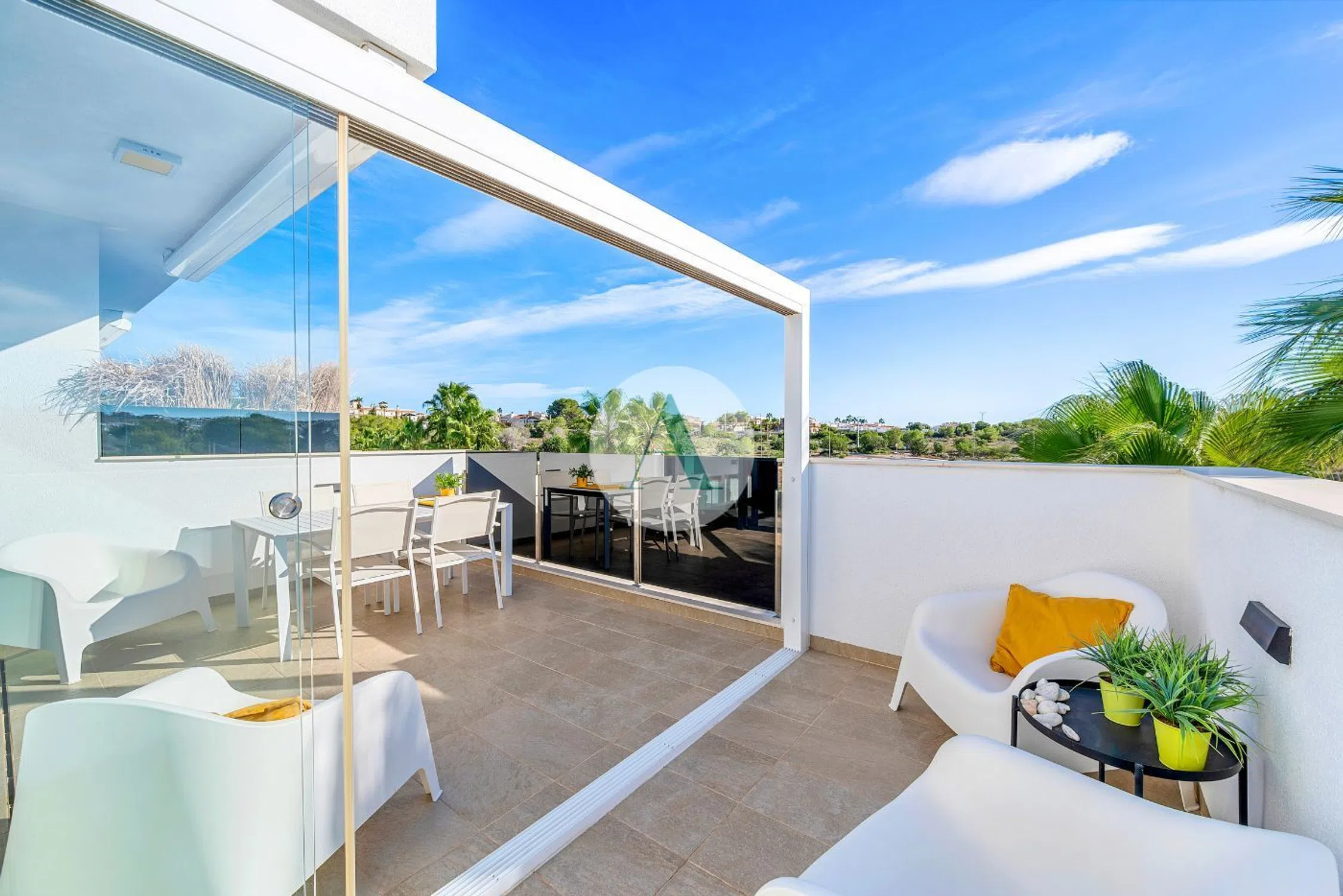 ¿Buscas un apartamento sin preocupaciones en una ubicación privilegiada de Orihuela Costa? Este apartamento en esquina en la 2ª planta de la residencia El Amanecer III (Pau 8 - Orihuela Costa) combina sol, confort y excelente conectividad. Con una terraza orientada al sur de 19m2, disfrutarás de luz durante todo el año y de vistas a la piscina comunitaria y a las zonas verdes. Gracias a una cortina de cristal lateral estarás resguardado del viento en los días más frescos sin renunciar a la luz natural, mientras que el toldo eléctrico proporciona sombra cuando lo necesites. En el interior encontrarás un salón luminoso con puertas correderas hacia la terraza y una cocina abierta moderna. El apartamento cuenta con 2 dormitorios y 2 baños. El dormitorio principal dispone de baño en suite. Ambos dormitorios incluyen armarios empotrados, prácticos y bien integrados. El edificio es de 2018 y se encuentra en muy buen estado. El confort está garantizado: aire acondicionado por conductos, suelo radiante en los baños, persianas eléctricas y ascensor. Además, una plaza de aparcamiento subterránea y el mobiliario están incluidos en el precio. La ubicación es realmente ventajosa: desde Los Altos llegarás rápidamente a Punta Prima, La Zenia y Villamartin. Para las compras diarias hay un supermercado a aprox. 800 m, Viapark con restaurantes a 1,3 km, Zenia Boulevard a 2,8 km y la playa de Playa Flamenca a 3,5 km. El golf de Villamartin está a 2 km. La residencia es tranquila, de tamaño reducido y residencial, pero con buenas conexiones con todos los puntos costeros más animados. ¿Tienes las maletas listas y te gustaría visitar este moderno apartamento en Orihuela Costa? Ponte en contacto con Adaleta para más información o agenda una visita ahora mismo. Estaremos encantados de mostrarte todas sus ventajas in situ.