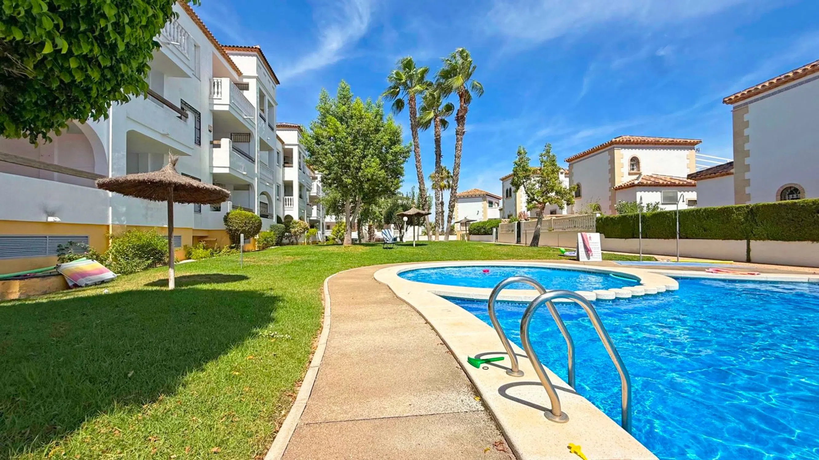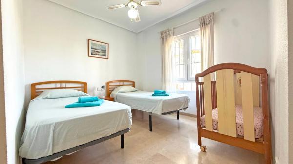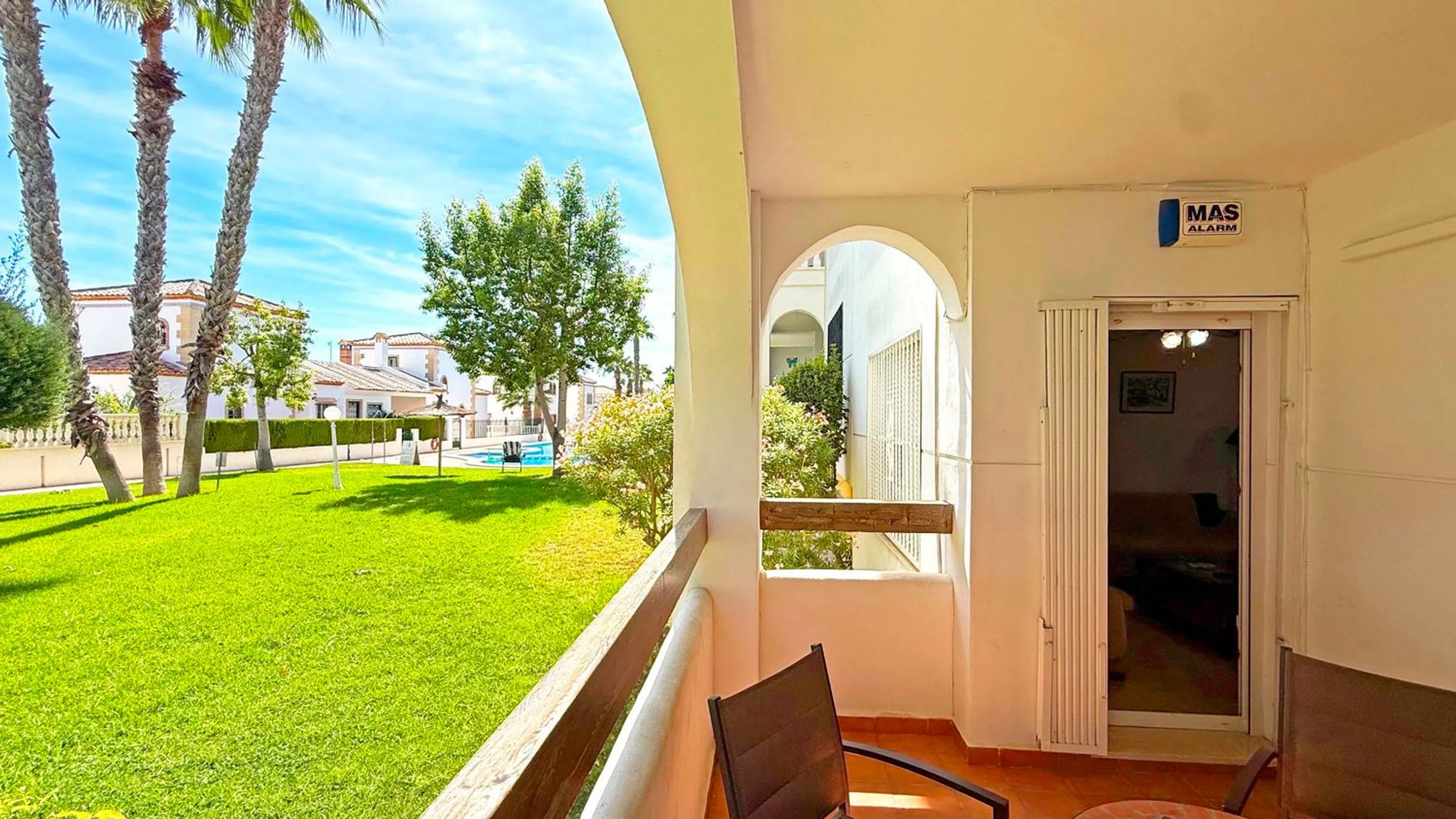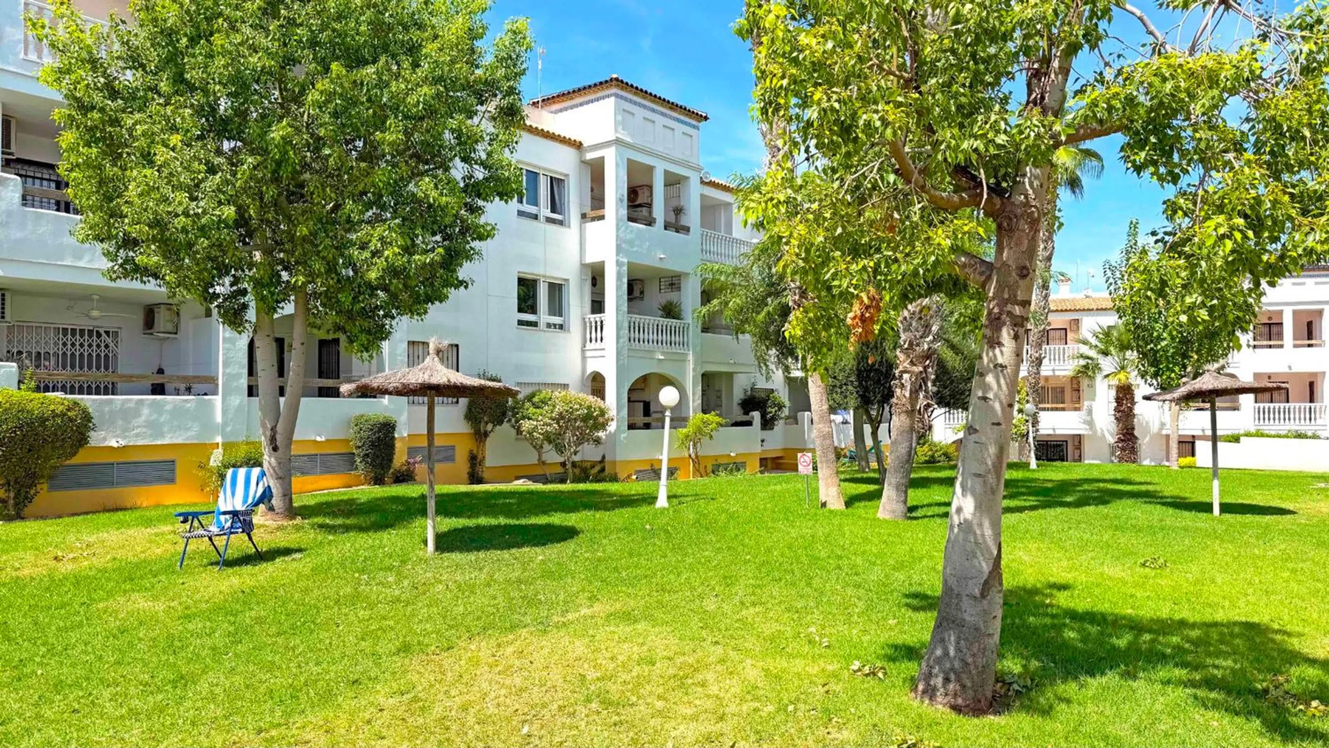 Les presentamos este encantador apartamento en planta baja ubicado en el codiciado residencial Las Violetas, a solo unos pasos de la famosa Plaza Villamartín y del campo de golf. La vivienda ofrece 2 dormitorios y 2 baños, uno de ellos en suite, un salón-comedor amplio y luminoso de planta abierta y un balcón soleado perfecto para relajarse. Se vende completamente amueblado y con aire acondicionado, listo para entrar a vivir. Incluye además plaza de garaje subterránea y trastero privado. La comunidad dispone de jardines bien cuidados y una piscina comunitaria. Con su ubicación inmejorable frente a la Plaza Villamartín y a pocos minutos de las playas de Orihuela Costa, esta propiedad es ideal como vivienda vacacional, inversión de alquiler o residencia permanente.