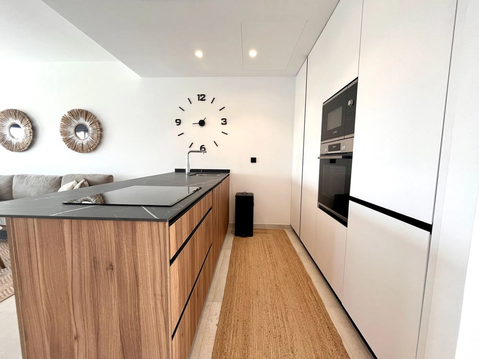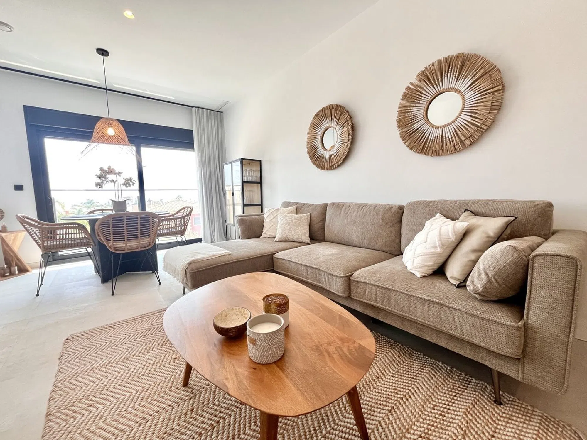 Apartamento moderno de 2 dormitorios y 2 baños con orientación sur en La Zenia en venta en un complejo con piscina comunitaria y a pocos pasos del centro comercial Boulevard, Paddys Point para bares y restaurantes y la playa a 1500 m. Este impresionante apartamento de dos dormitorios y dos baños ofrece la combinación perfecta de diseño moderno, comodidad y ubicación. Con orientación sur y espectaculares vistas al mar, la propiedad se encuentra dentro de un complejo tranquilo y excepcionalmente bien cuidado que cuenta con piscinas comunitarias con jacuzzi, piscinas climatizadas para la temporada de invierno y un gimnasio para los residentes. A solo dos minutos a pie del famoso La Zenia Boulevard y a solo cinco minutos del animado mercadillo de Playa Flamenca de los sábados, el apartamento también está cerca de todos los servicios locales, tiendas, restaurantes y la playa, lo que lo hace ideal tanto como residencia permanente como como escapada de vacaciones. El interior ha sido terminado con el más alto nivel, con diseño de primera clase, cortinas a medida, armarios empotrados y muebles elegantes en todas partes. La cocina viene con un sistema de filtrado de agua ya instalado, y hay un armario de servicios separado que alberga la caldera y la lavadora para mayor comodidad. Hay dos terrazas, una de las cuales disfruta de impresionantes vistas al mar, que ofrece el escenario perfecto para relajarse o entretenerse. La propiedad está completamente amueblada e incluye estacionamiento fuera de la carretera en el precio. Todas las habitaciones están equipadas con camas de almacenamiento, maximizando el espacio y la practicidad. Este apartamento realmente ofrece una rara oportunidad de disfrutar de la vida moderna en una de las ubicaciones más solicitadas de la Costa Blanca.