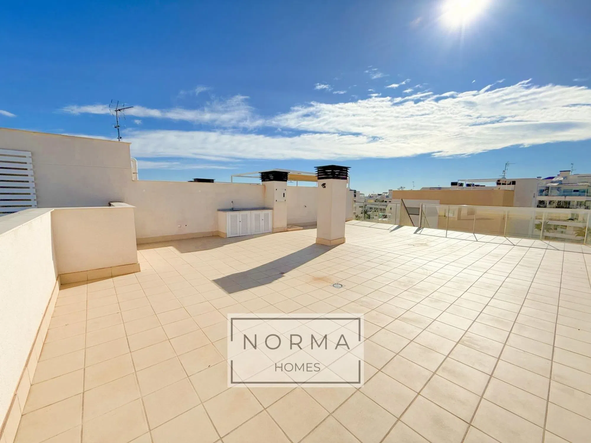 Exclusivo ático de esquina con solárium privado en Villamartín – Orihuela Costa Descubre este moderno ático de esquina y de reciente construcción, situado en una de las zonas residenciales más demandadas de la Costa Blanca. Con un solárium privado de 102 m² y orientación sur, es el lugar ideal para disfrutar del sol mediterráneo todo el año. La vivienda cuenta con 3 amplios dormitorios y 2 baños, un luminoso salón-comedor con acceso a la terraza, cocina de estilo contemporáneo y suelo radiante en los baños para mayor confort. Al ser una vivienda de esquina, ofrece mayor privacidad, más luz natural y mejores vistas. ✔️ Urbanización cerrada y privada con excelentes instalaciones: 3 piscinas comunitarias Piscina climatizada Zonas ajardinadas Garaje subterráneo con acceso por ascensor y trastero � Ubicación privilegiada para compradores internacionales: A solo 3 km de las playas de La Zenia A 1 km del centro comercial La Zenia Boulevard 3 prestigiosos campos de golf a pocos minutos 45 minutos del aeropuerto internacional de Alicante Un entorno tranquilo y cosmopolita al mismo tiempo, con residentes de diferentes nacionalidades, perfecto tanto para vacaciones como para vivir todo el año. La vivienda se entrega sin amueblar, lista para personalizar al gusto del comprador.