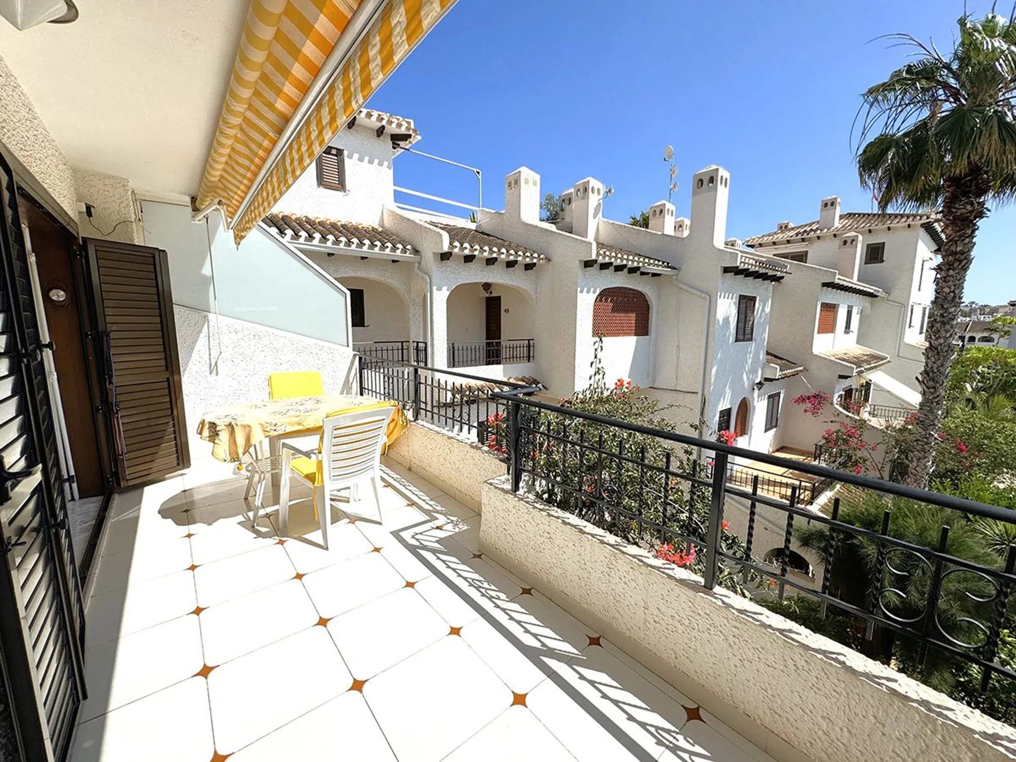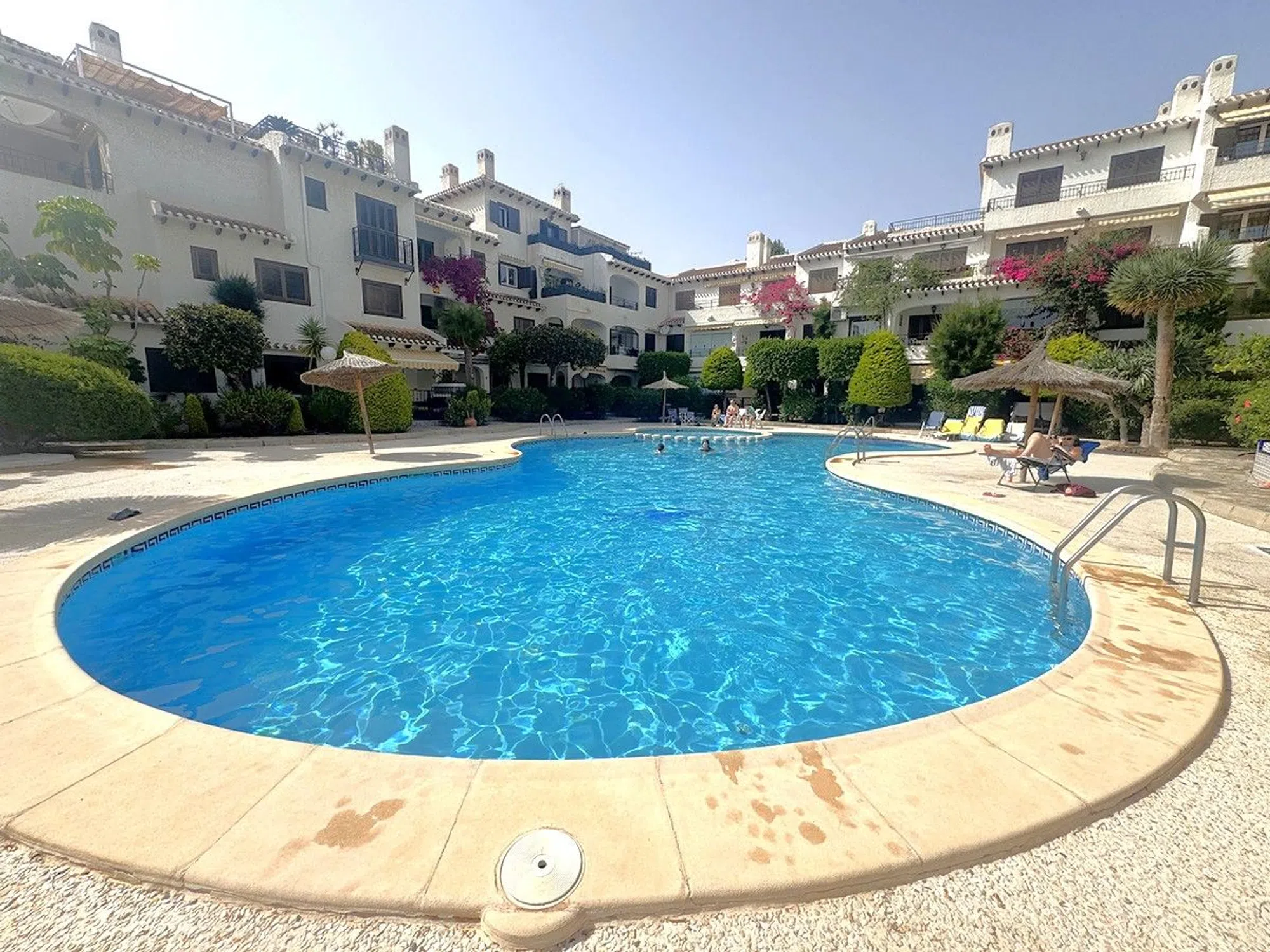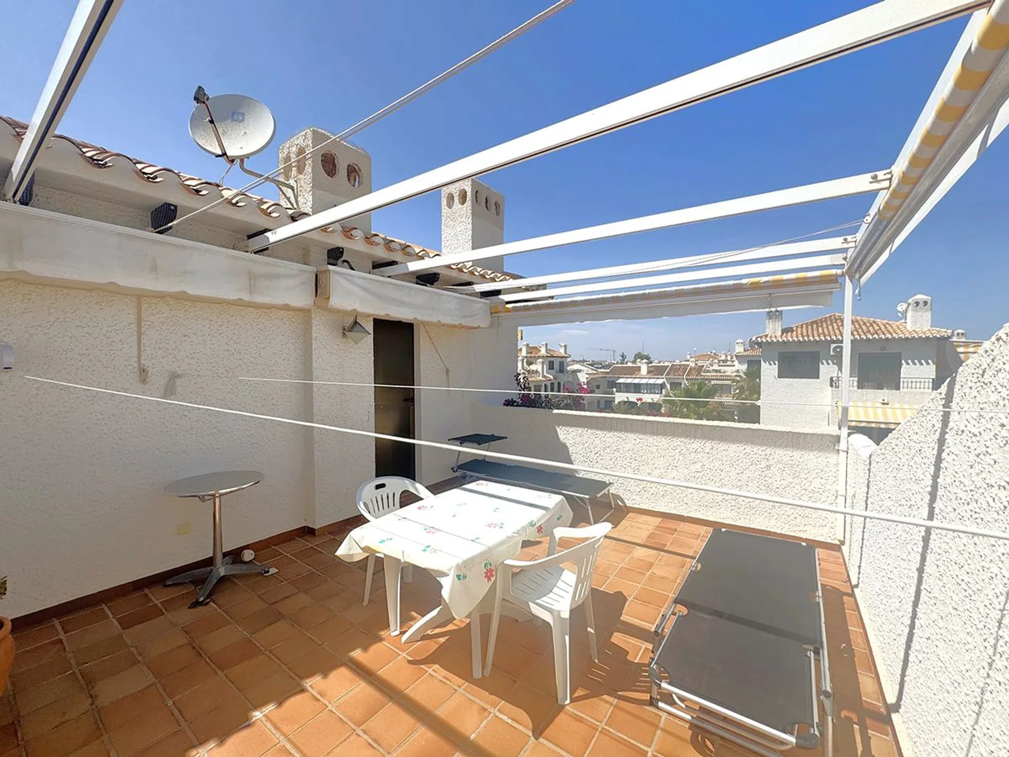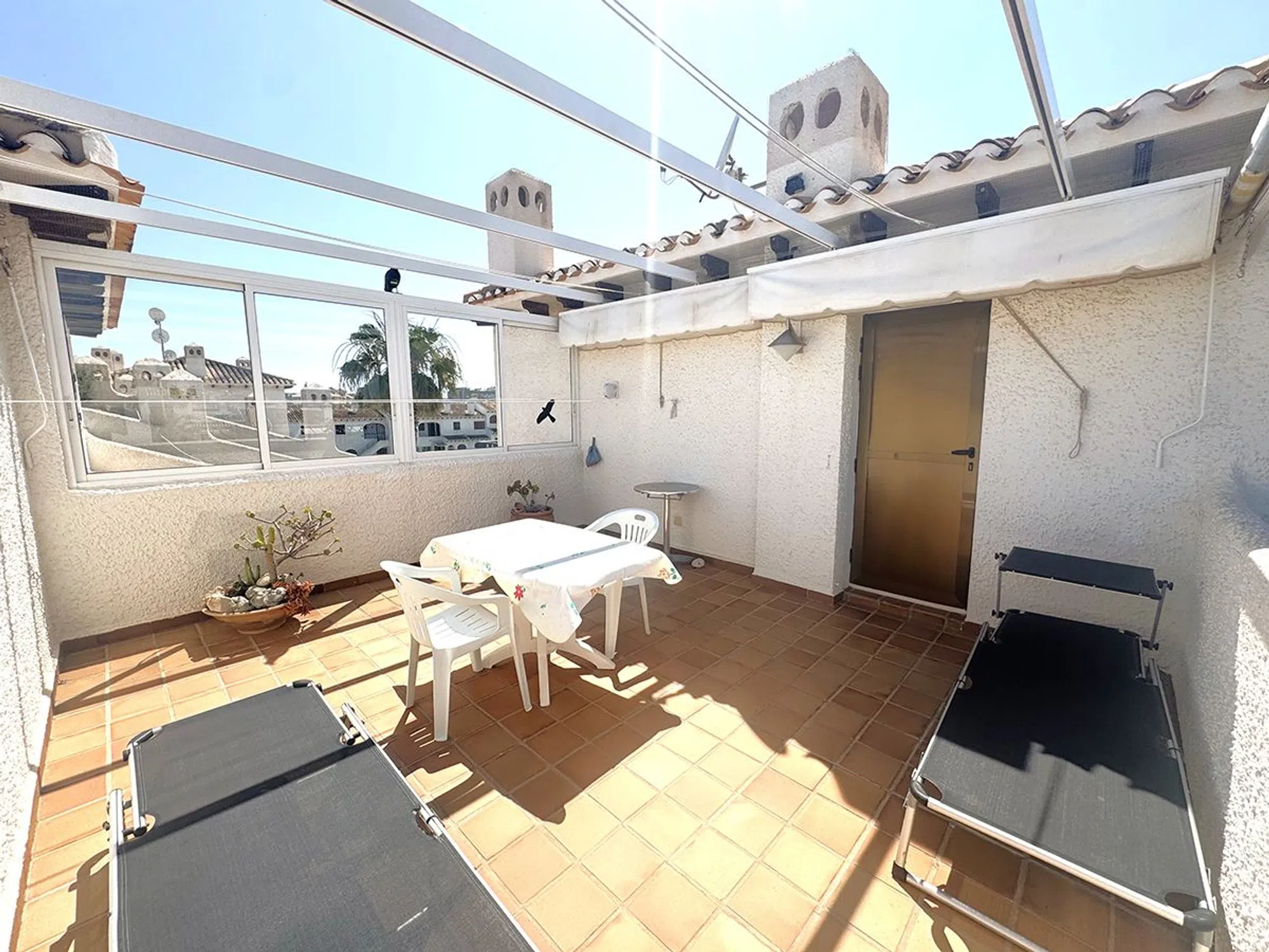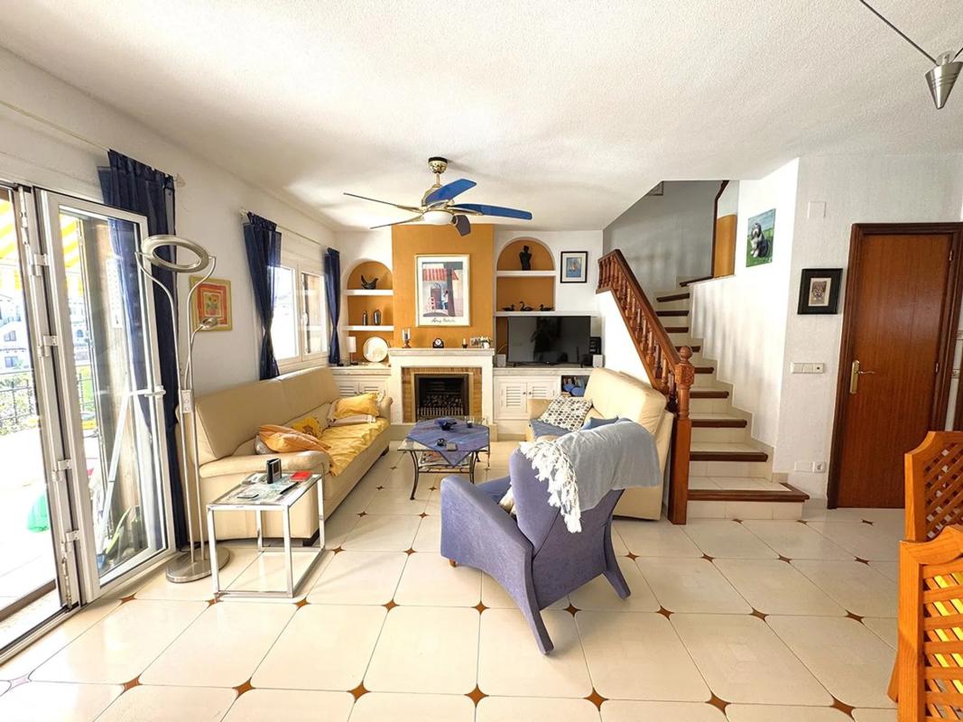 Ático Dúplex de Estilo Mediterráneo en Venta en Cabo Roig, Orihuela Costa Espléndido ático dúplex de estilo mediterráneo con orientación sur, que ofrece131 m² construidos distribuidos en tres amplios dormitorios y dos baños. La vivienda cuenta con un luminoso salón-comedor con chimenea, una cocina abierta totalmente equipada, lavadero independiente y una gran terraza ideal para disfrutar del sol durante todo el día. Ubicado en el exclusivo residencial, de cuidada arquitectura mediterránea, a solo 300 metros de la playa de La Caleta, en Cabo Roig. El complejo ofrece excelentes zonas comunes, incluyendo psicina comunitaria, amplios jardines y aparcamiento privado para residentes. La propiedad se vende completamente amueblada, lista para entrar a vivir. Una oportunidad excepcional para disfrutar de una excelente calidad de vida en una de las zonas más demandadas de Orihuela Costa.