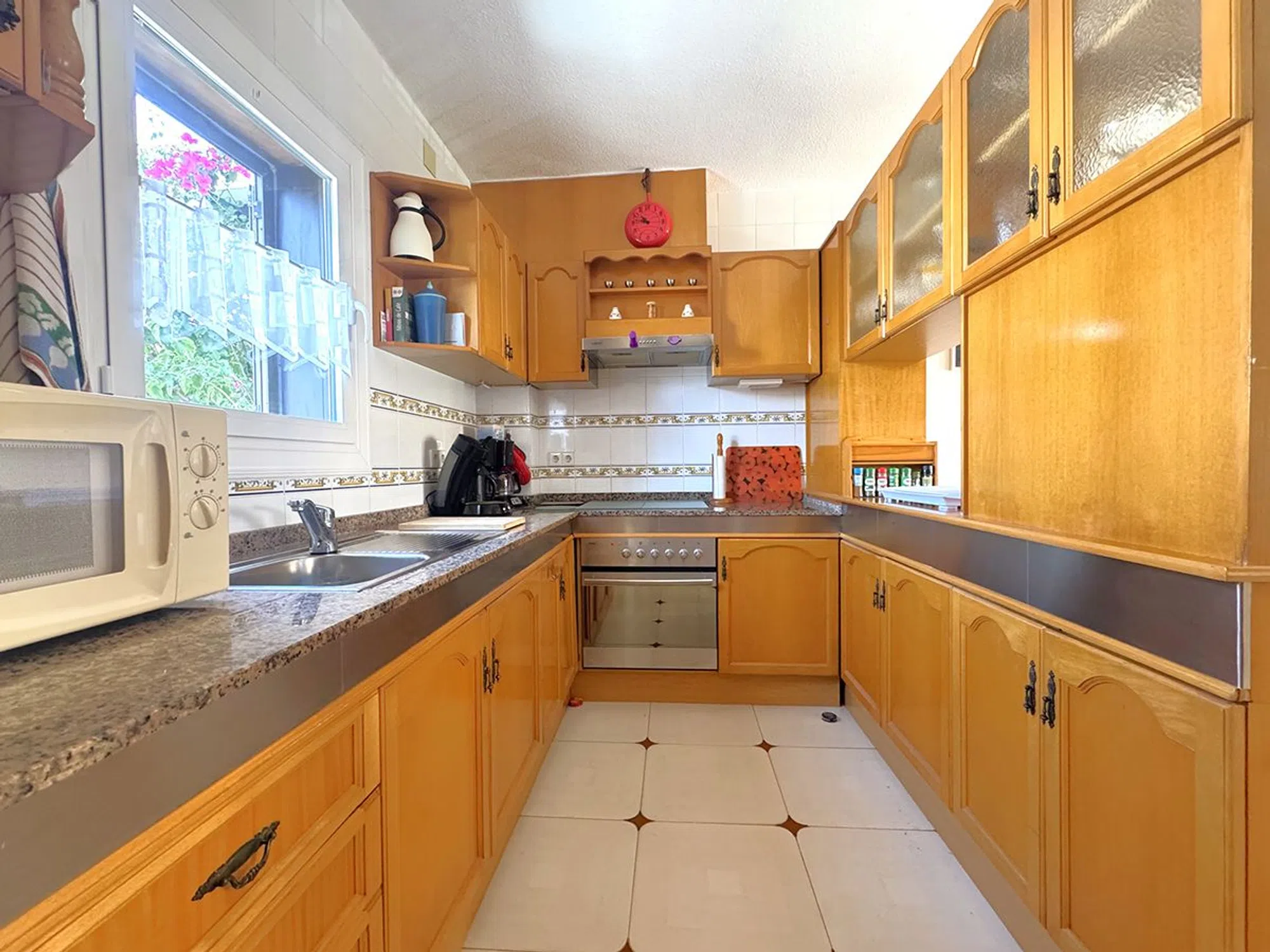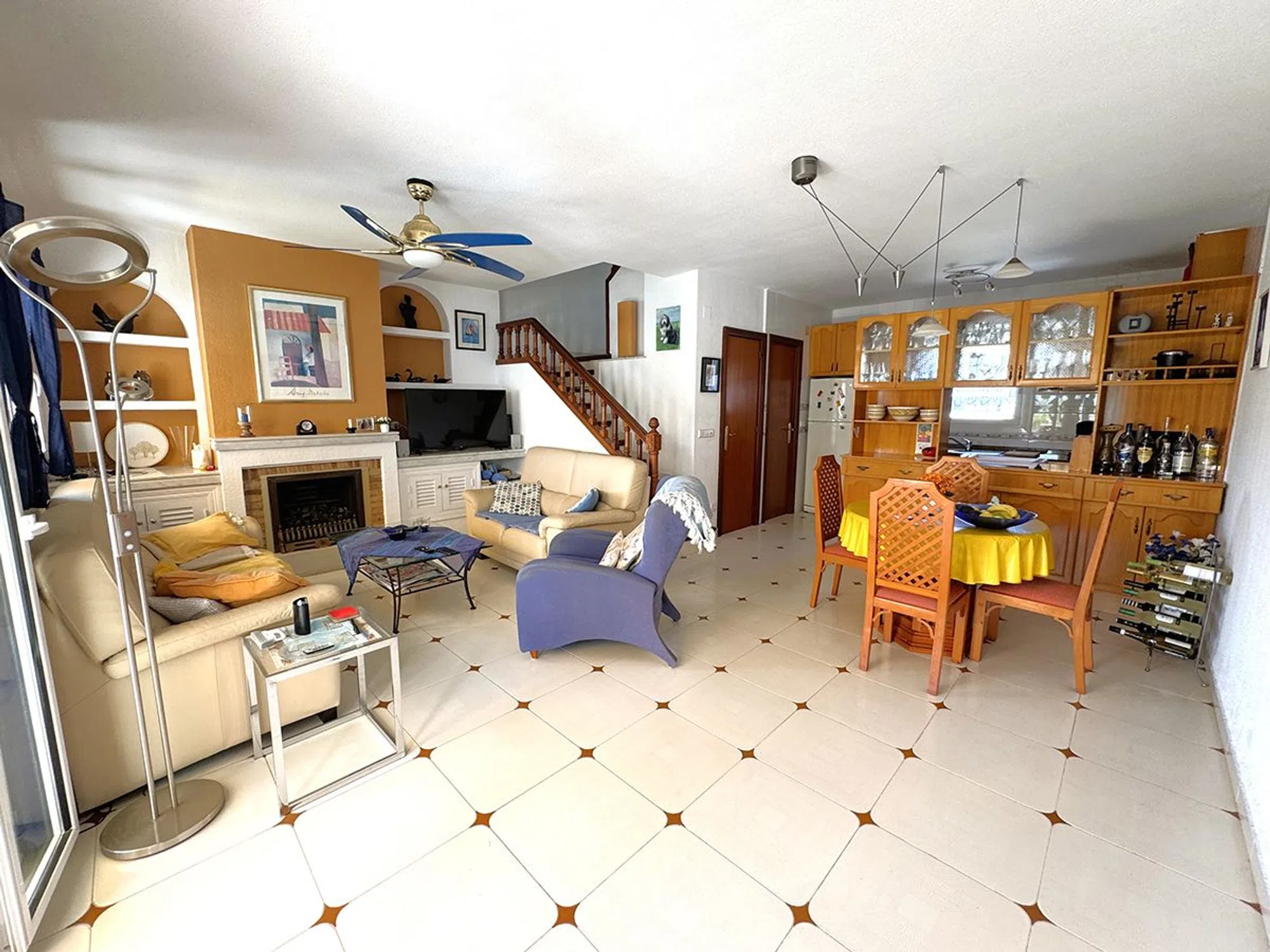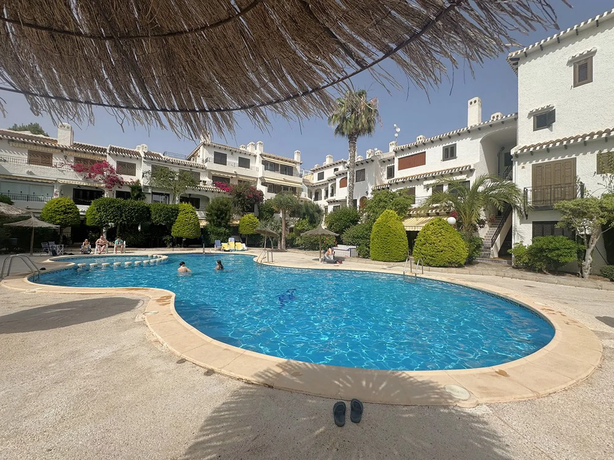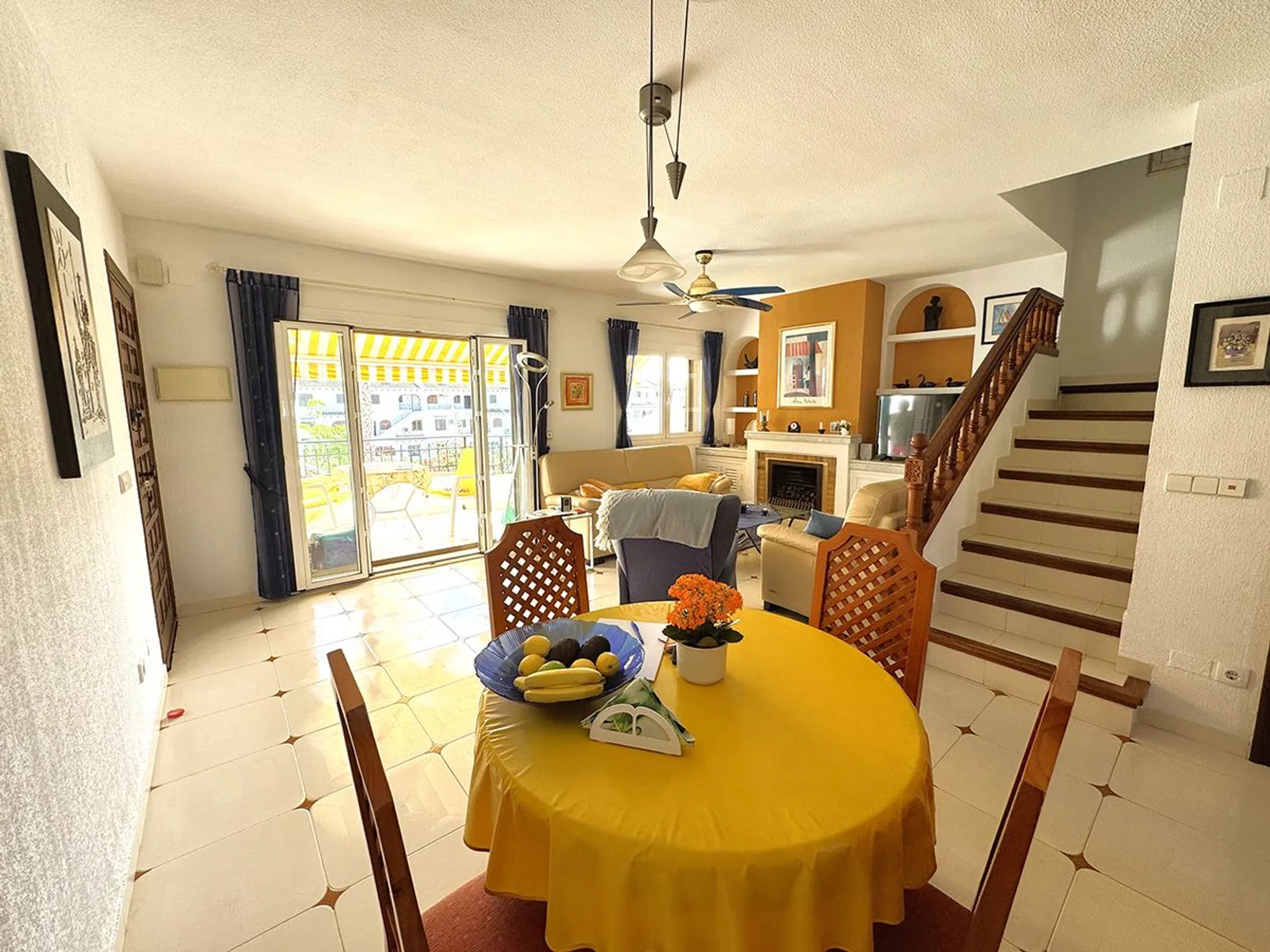 Ático Dúplex de Estilo Mediterráneo en Venta en Cabo Roig, Orihuela Costa Espléndido ático dúplex de estilo mediterráneo con orientación sur, que ofrece131 m² construidos distribuidos en tres amplios dormitorios y dos baños. La vivienda cuenta con un luminoso salón-comedor con chimenea, una cocina abierta totalmente equipada, lavadero independiente y una gran terraza ideal para disfrutar del sol durante todo el día. Ubicado en el exclusivo residencial, de cuidada arquitectura mediterránea, a solo 300 metros de la playa de La Caleta, en Cabo Roig. El complejo ofrece excelentes zonas comunes, incluyendo psicina comunitaria, amplios jardines y aparcamiento privado para residentes. La propiedad se vende completamente amueblada, lista para entrar a vivir. Una oportunidad excepcional para disfrutar de una excelente calidad de vida en una de las zonas más demandadas de Orihuela Costa.