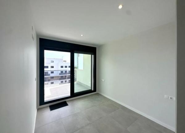 Das Solarium, das über eine elegante Treppe von der Terrasse aus zugänglich ist, stellt den Höhepunkt dieser Immobilie dar und bietet ausreichend Platz, um eine private Oase mit Außenküche und sogar die Möglichkeit eines Whirlpools zu schaffen. Stell dir vor, wie du an sonnigen Tagen oder während des Sonnenuntergangs hier entspannst. Dieses Penthaus umfasst drei Schlafzimmer und zwei moderne Badezimmer, die mit Doppelwaschbecken, bodengleichen Duschen und hängenden Toiletten ausgestattet sind. Die beiden hinteren Schlafzimmer verfügen über einen privaten Balkon, der ruhige Ausblicke auf die Umgebung bietet.