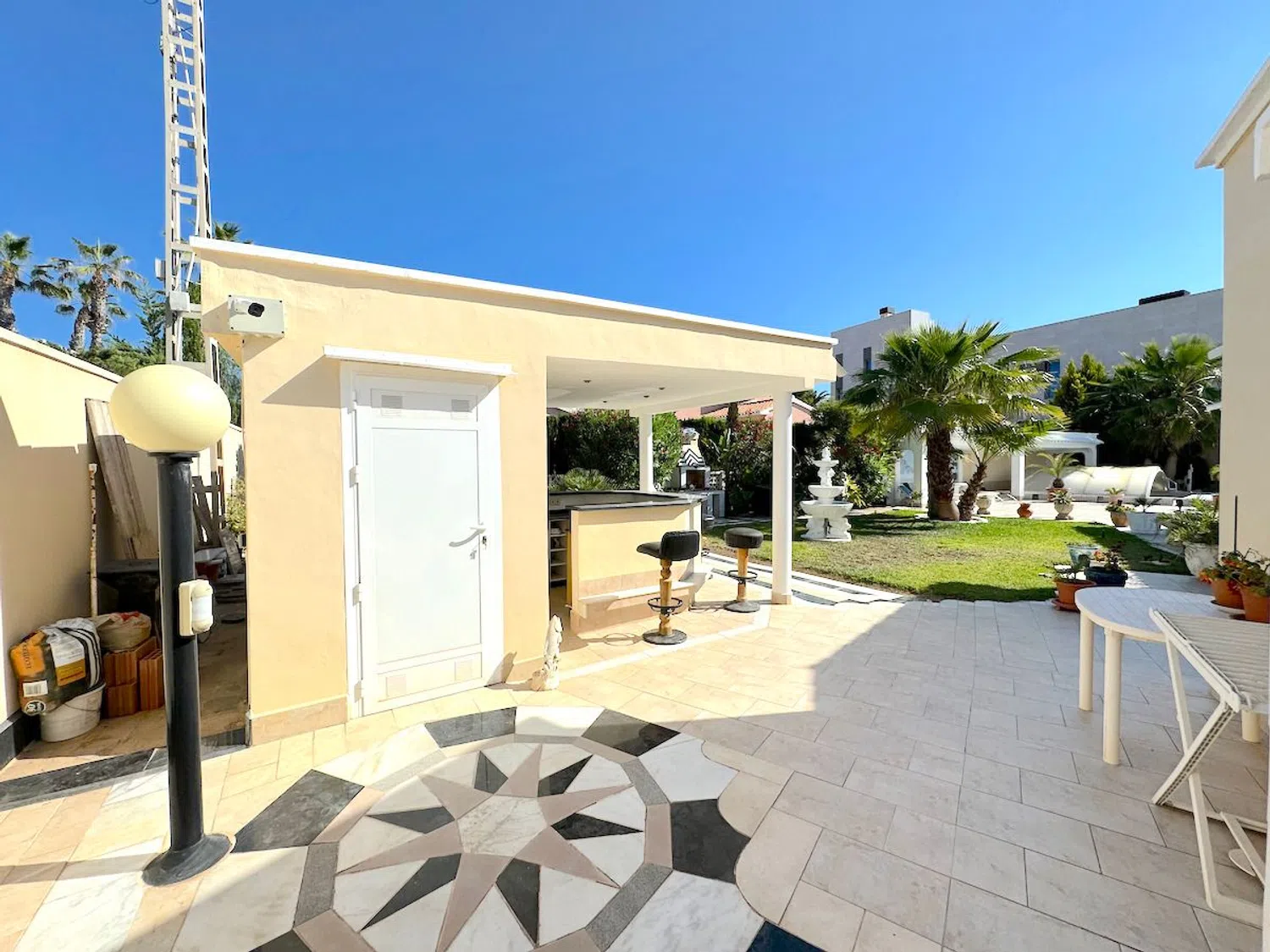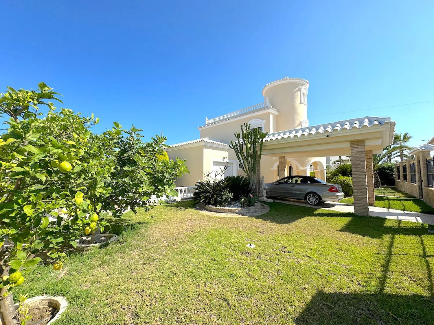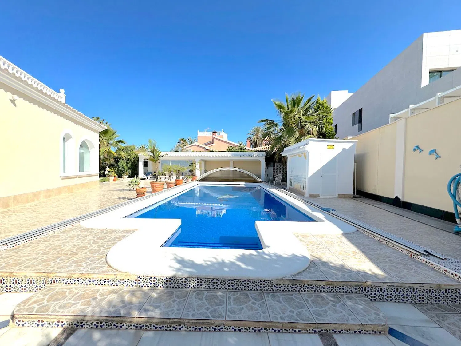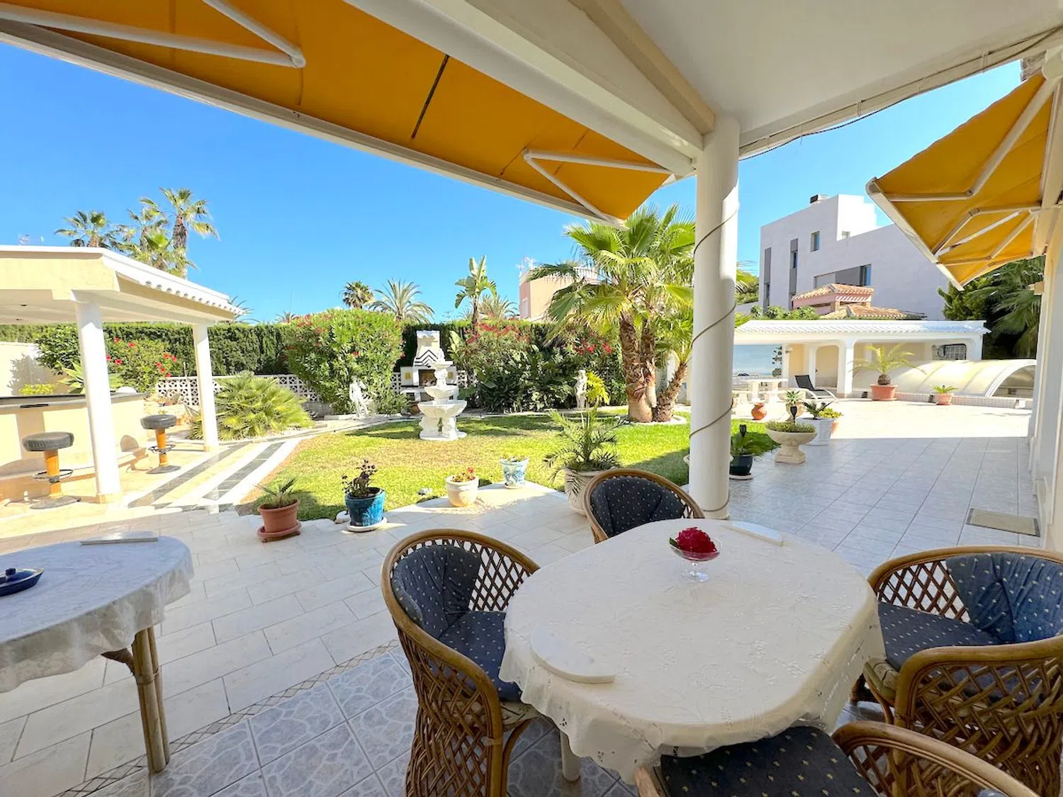 Diese beeindruckende Villa befindet sich nur 300 Meter von den herrlichen Stränden entfernt und ist nur einen kurzen Spaziergang von den lokalen Annehmlichkeiten entfernt. Mit einer großzügigen Wohnfläche von 250 m² auf einem weitläufigen Grundstück von 964 m² bietet die Villa geräumige Terrassen, eine Außenküche, einen beheizten Pool und eine private Garage.