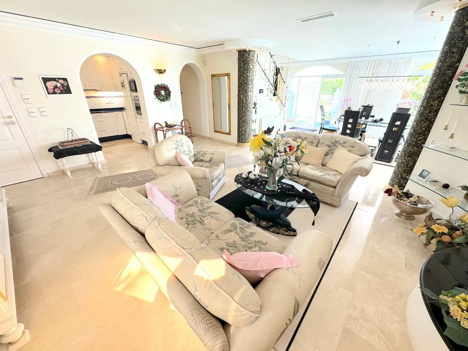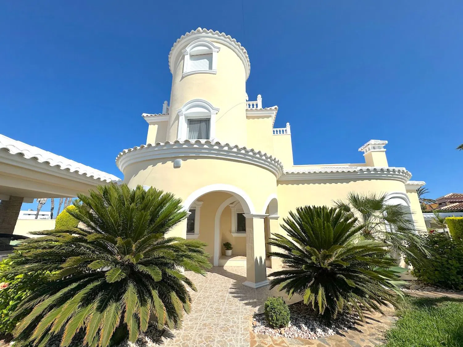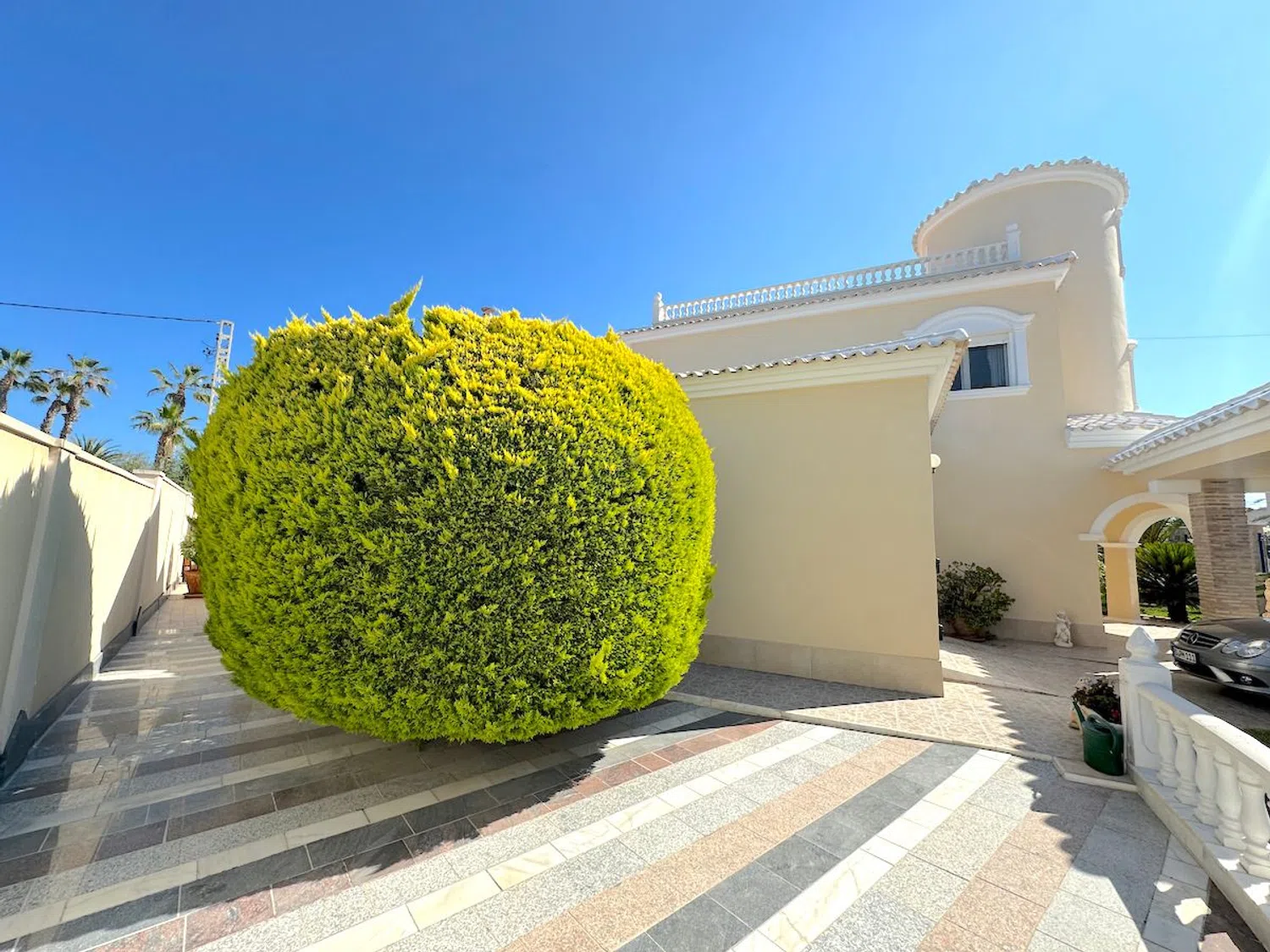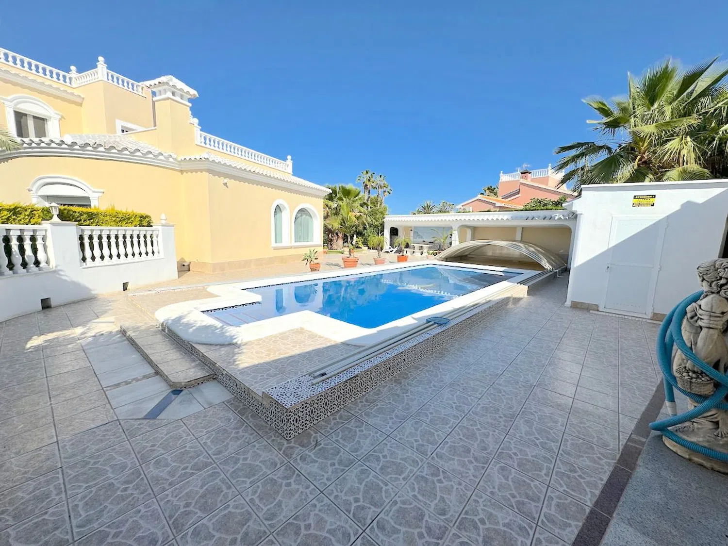 Diese beeindruckende Villa befindet sich nur 300 Meter von den herrlichen Stränden entfernt und ist nur einen kurzen Spaziergang von den lokalen Annehmlichkeiten entfernt. Mit einer großzügigen Wohnfläche von 250 m² auf einem weitläufigen Grundstück von 964 m² bietet die Villa geräumige Terrassen, eine Außenküche, einen beheizten Pool und eine private Garage.
