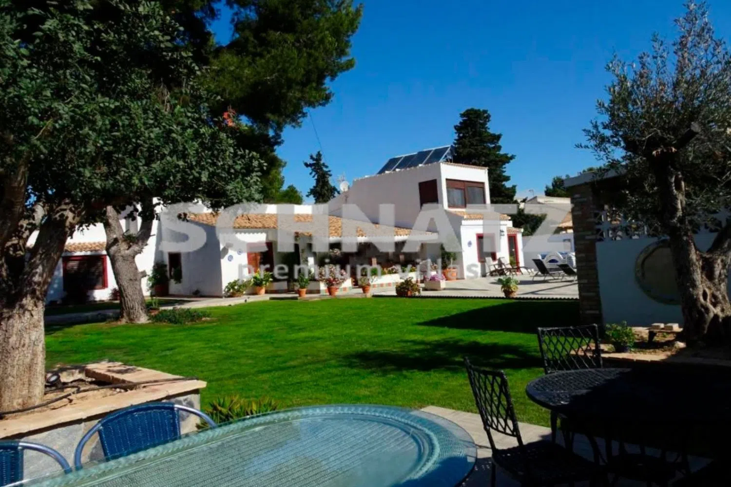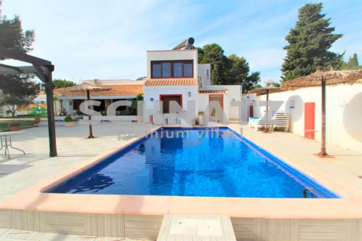 Excepcional villa en venta situado en una de las zonas más tranquilas de Lomas de Cabo Roig, Orihuela Costa. Esta hermosa casa familiar cuenta con 9 dormitorios y uno de ellos tiene un altillo con zona de estar. Todas las habitaciones son amplias, la villa tiene también 8 baños, salón con chimenea, amplio comedor y cocina americana. Situado sobre parcela privada de 1040 m2 con una piscina climatizada, ducha exterior y aseo, barbacoa / zona de picnic y cocina de verano. También hay un parque infantil y un trastero. Los jardines y terrazas son de bajo mantenimiento. La propiedad se vende completamente amueblada y cuenta con extras como, aire acondicionado en toda la casa, paneles solares para el agua caliente, además de 2 calentadores eléctricos en caso de que sean necesarios. La villa está construida en un estilo rústico tradicional con vigas originales, techos altos y una decoración única. La villa ofrece un excelente potencial para una gran casa familiar o como una inversión de alquiler debido a su licencia turística. La casa está situada en una zona cerca de supermercados, bares y restaurantes. Los campos de golf están a 3,3 km. La playa de Dehesa de Campoamor está a 5 km. El aeropuerto está a 45 minutos en coche. Y el Centro Comercial La Zenia Boulevard a 5 km.