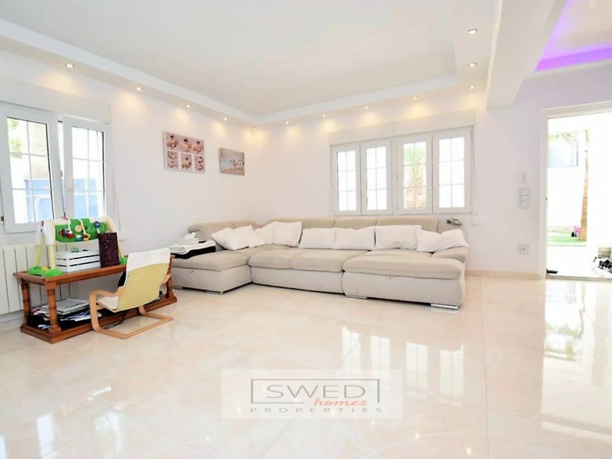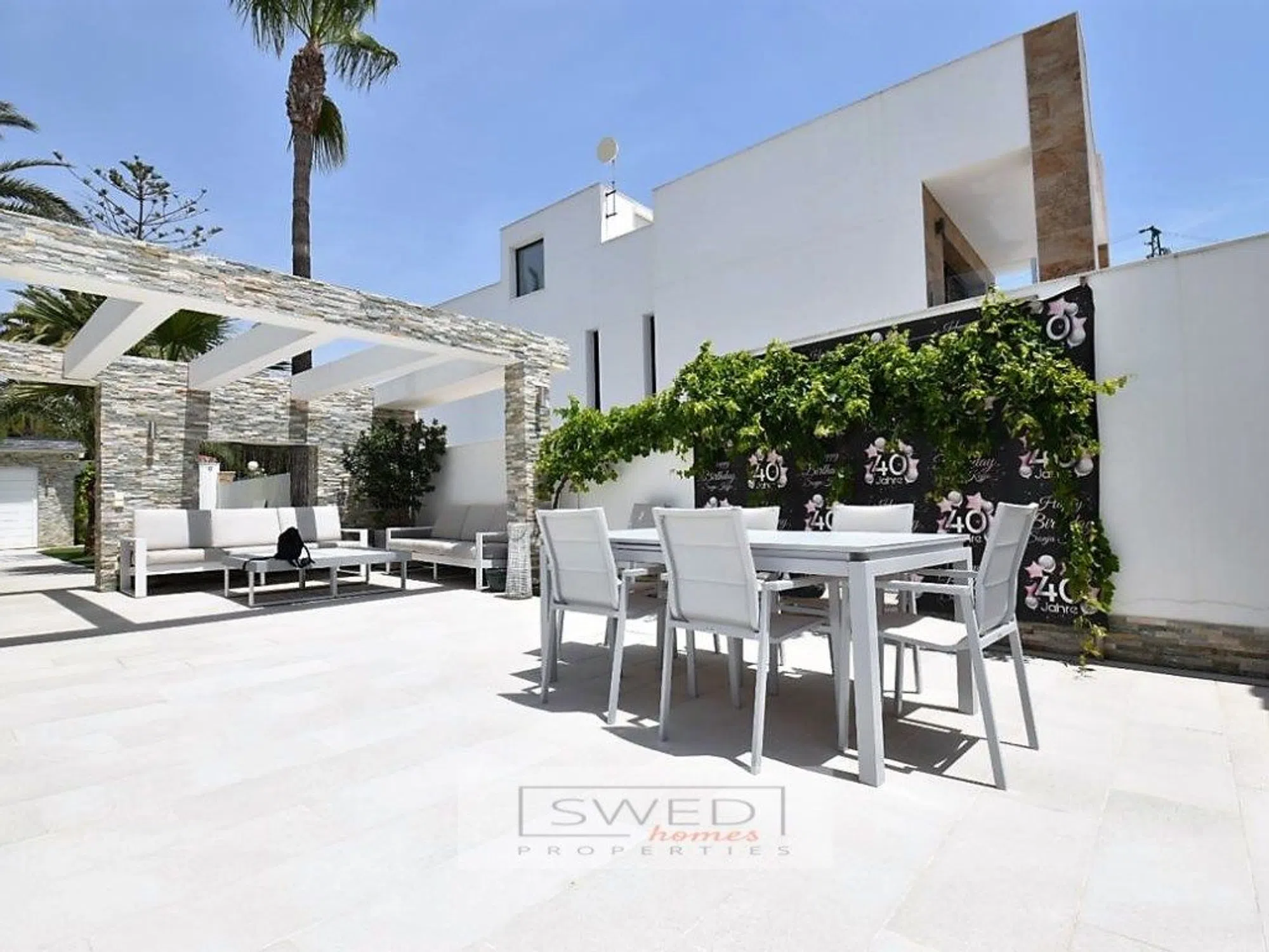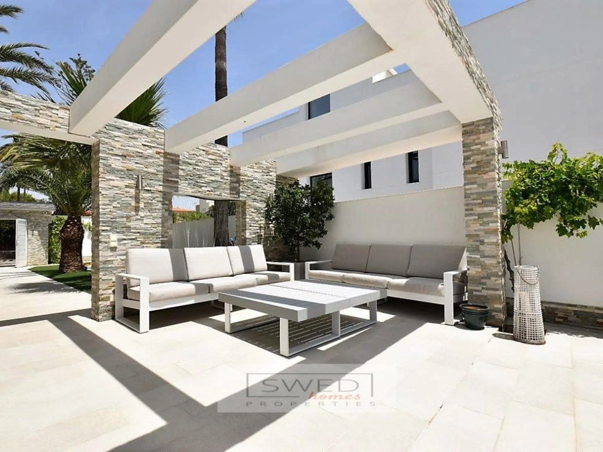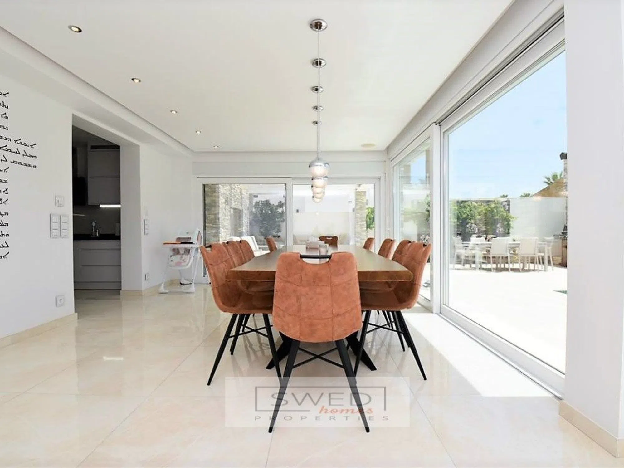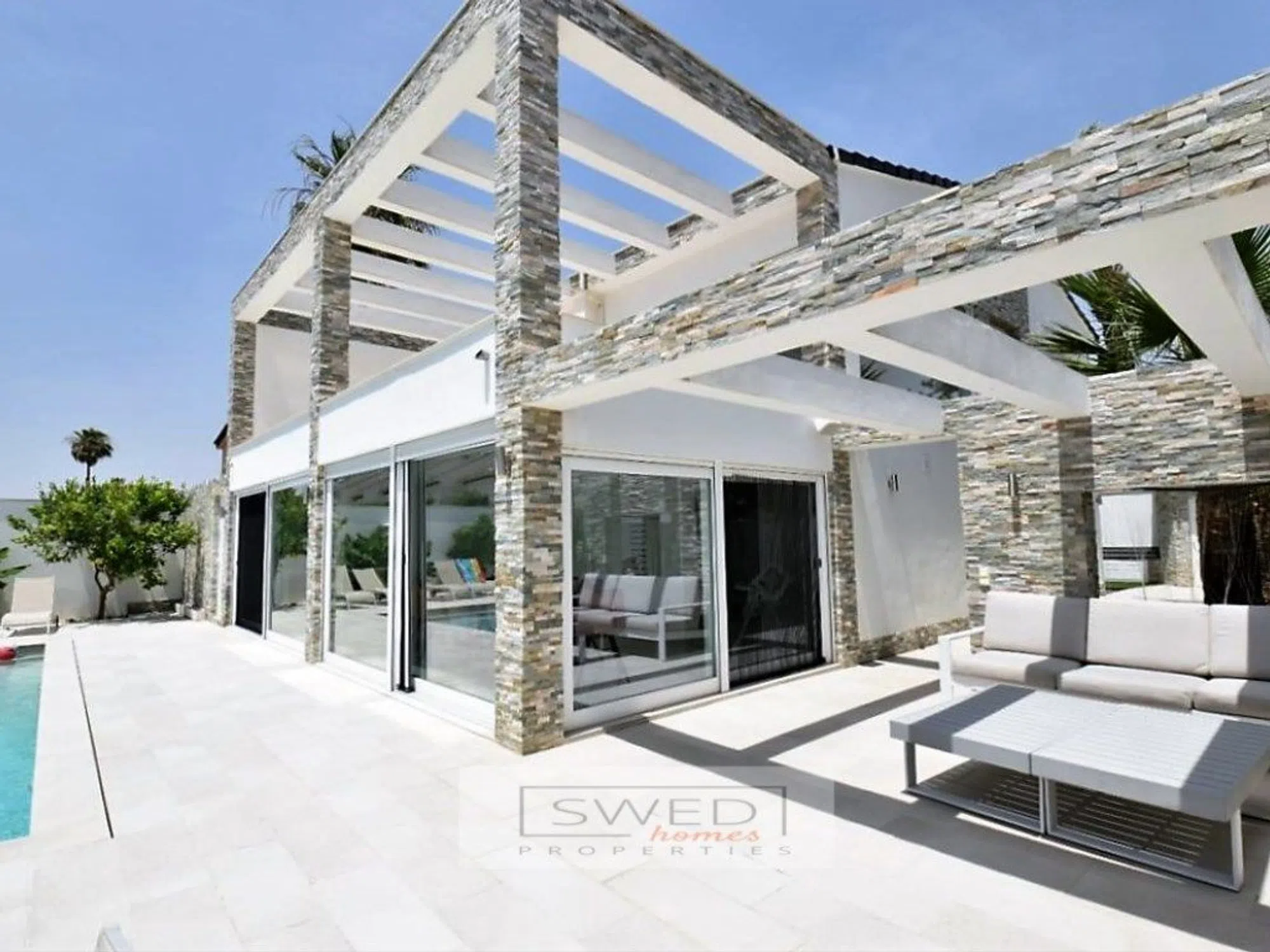 Precioso chalet totalmente reformado en estilo moderno con materiales de alta calidad, situado a 250m. de la Playa de La Zenia. Consta de 2 salones de gran tamaño separados por una gran cocina totalmente equipada con electrodomésticos de alta gama y con despensa. Uno de los salones tiene acceso directo a la piscina con zona de barbacoa y chill-out. Tiene 4 dormitorios amplios con grandes ventanales lo cual hace que sean muy luminosos, 2 baños completos y gran terraza con vistas despejadas en la planta superior. Persianas eléctricas, suelos de mármol, aire acondicionado y calefacción central. Se vende totalmente amueblado. Hermosa parcela de fácil mantenimiento que rodea la vivienda, en la que encontramos la mencionada zona de piscina con servicio, ducha y un recinto acristalado para almacenaje o para cenador, barbacoa, chill-out y garaje. ref: SJJ02.
