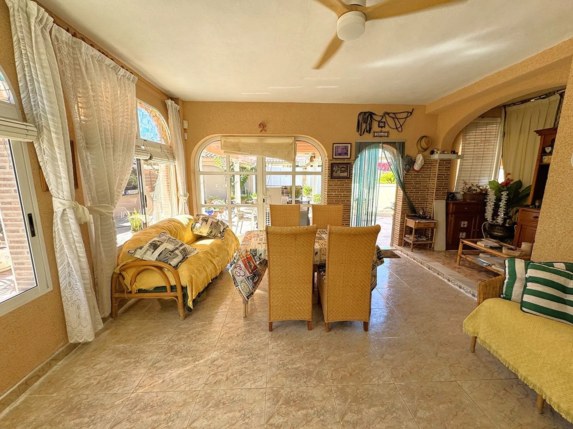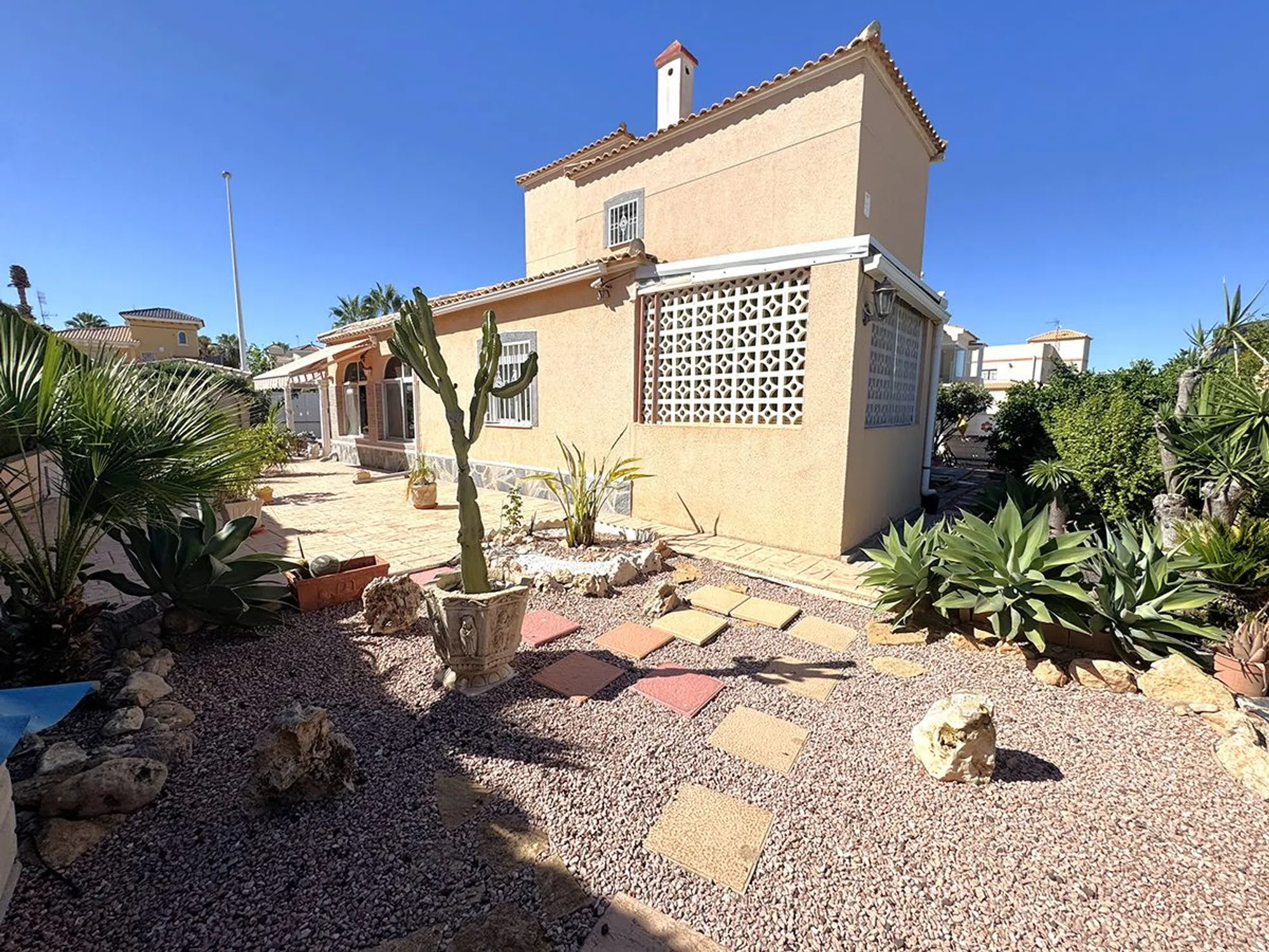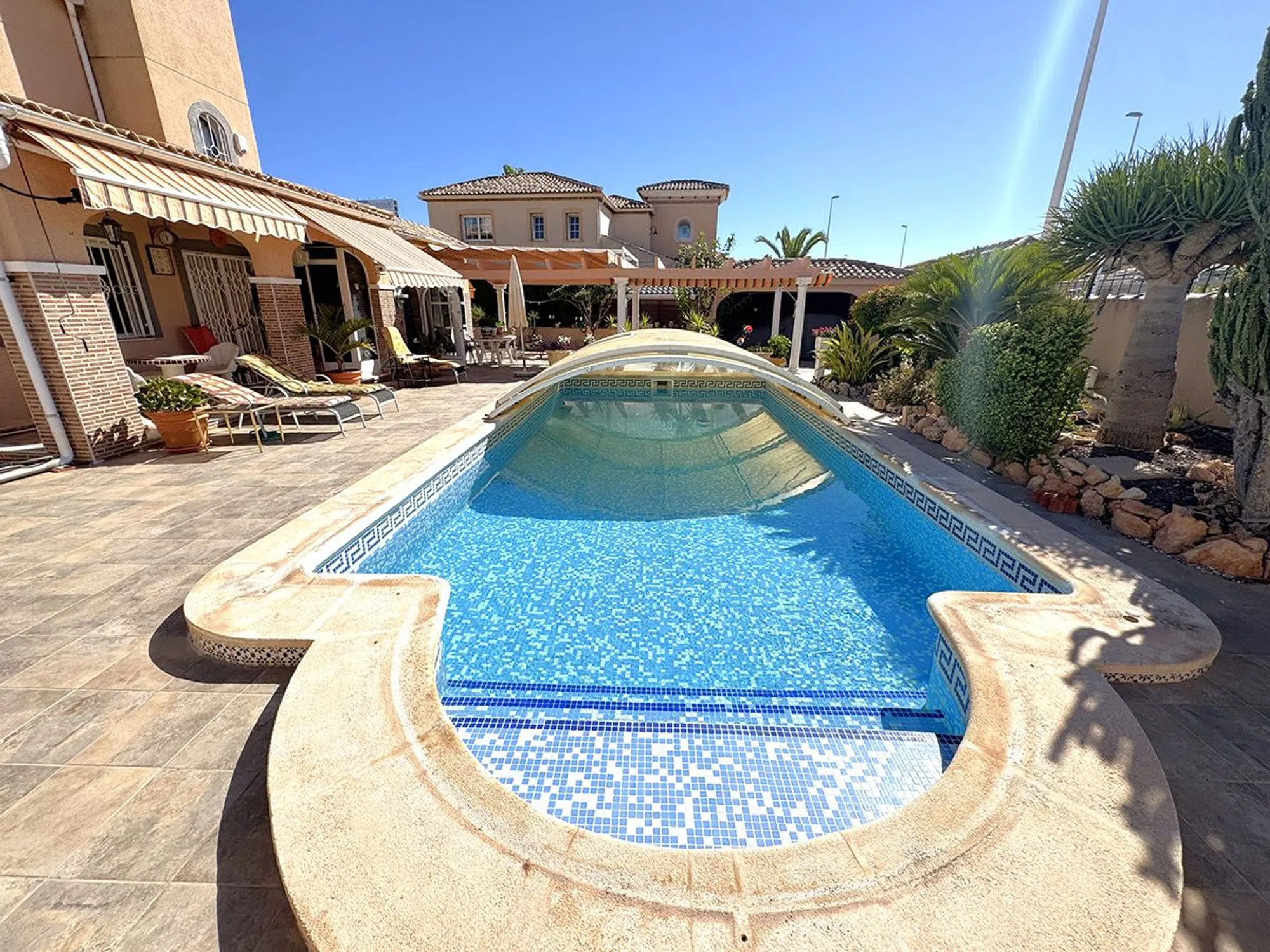 Villa con piscina privada a la venta en La Regia, Cabo Roig Esta fantástica villa de 180 m² construidos con piscina cubierta, ubicada en una amplia parcela privada de 670 m², ofrece comodidad, amplitud y un entorno ideal para disfrutar durante todo el año. En el exterior, dispone de varias terrazas cubiertas y descubiertas, una espectacular piscina cubierta de grandes dimensiones y un jardín consolidado con árboles frutales, que aportan frescura, privacidad y encanto mediterráneo, en el interior, la planta principal alberga un amplio salón, cocina independiente, así como 2 dormitorios y 1 baño completo la planta superior cuenta con otros 2 dormitorios, un baño totalmente equipado y una gran terraza soleada con vistas abiertas. Una propiedad que combina funcionalidad y espacios exteriores únicos, perfecta como residencia habitual o como casa de vacaciones.