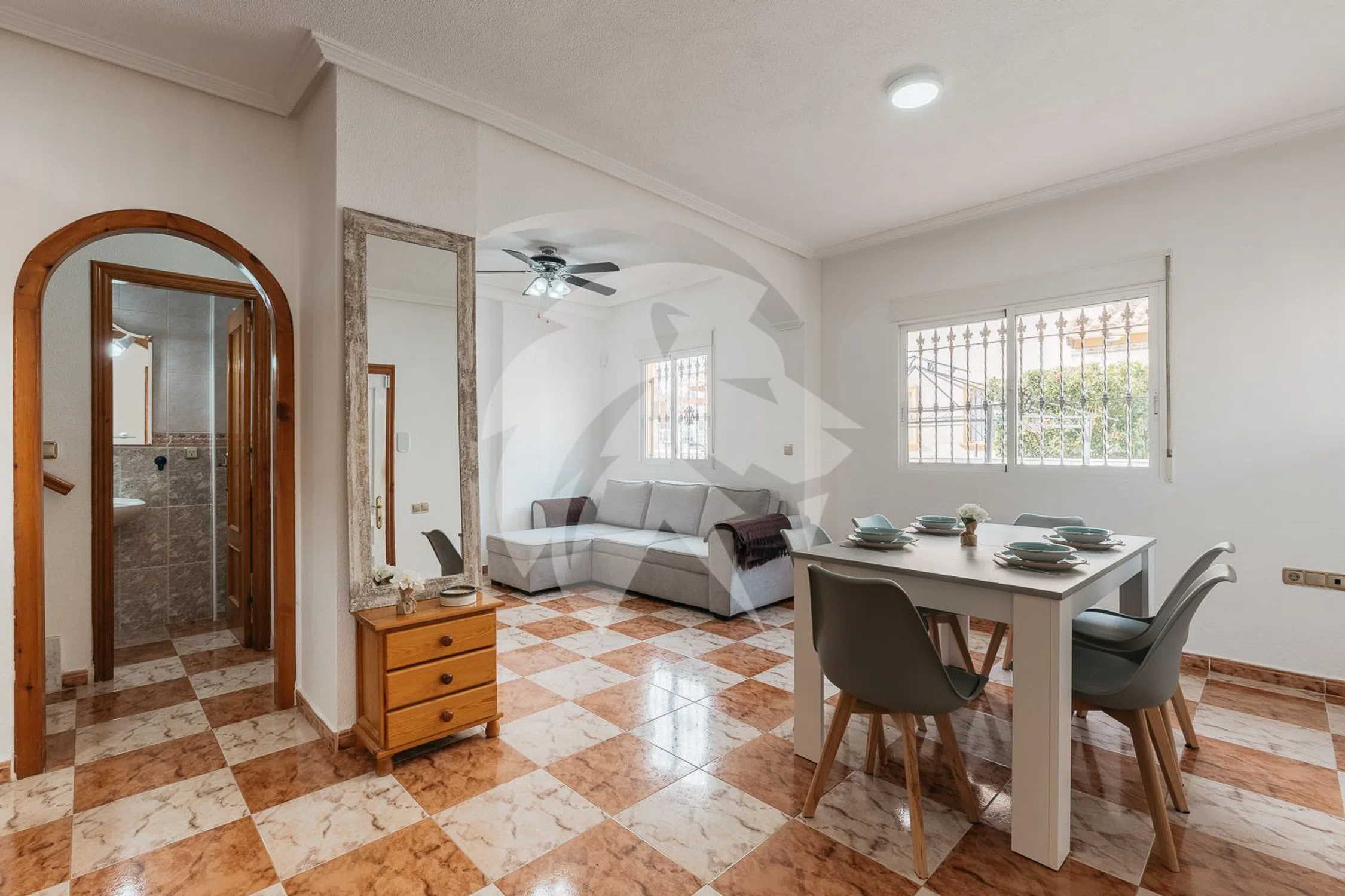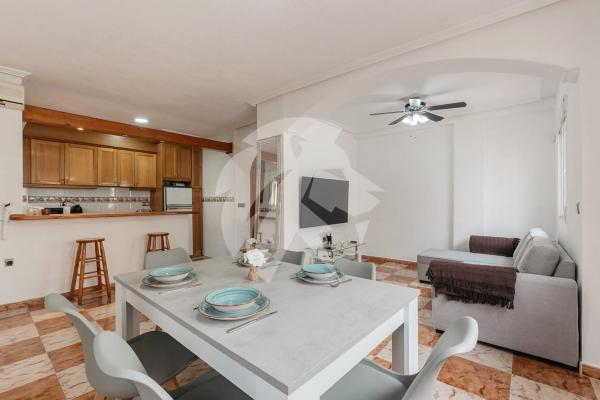 Lion Capital Group presenta esta encantadora propiedad situada en la demandada zona de La Regia, en el Residencial Villas San José II. Construida en 2002, esta vivienda adosada destaca por su luminosidad y distribución inteligente. Con 75 m² construidos y una terraza de 67 m², ofrece 2 dormitorios, 1 baño completo y 1 aseo de cortesía. La planta baja cuenta con un espacio abierto que integra salón-comedor y cocina, iluminado por grandes ventanales que llenan el ambiente de luz natural, creando un lugar acogedor y perfecto para recibir invitados. En la primera planta se encuentran los 2 dormitorios con armarios empotrados y un baño completo, mientras que la planta superior alberga un amplio solárium con zona de almacenamiento. Uno de los aspectos más notables de esta propiedad es su amplio salón, concebido originalmente como una tercera habitación en la planta baja, lo que brinda la posibilidad de recuperarla según las necesidades del nuevo propietario. Además, la vivienda se integra en una residencia apacible, equipada con piscina comunitaria y rodeada de zonas verdes, un espacio perfecto para relajarse y disfrutar plenamente del buen clima y la calidad de vida que ofrece la zona. La ubicación es, sin duda, uno de sus mayores atractivos: a pocos minutos del centro comercial La Zenia Boulevard, supermercados, restaurantes y colegios, y a solo 5 minutos en coche de la playa de Cabo Roig. Esta combinación de tranquilidad, cercanía a todos los servicios y al mar la convierte en una oportunidad ideal para quienes buscan confort y un auténtico estilo de vida mediterráneo. No dejes pasar esta oportunidad, contáctanos y ven a visitarla con nosotros.