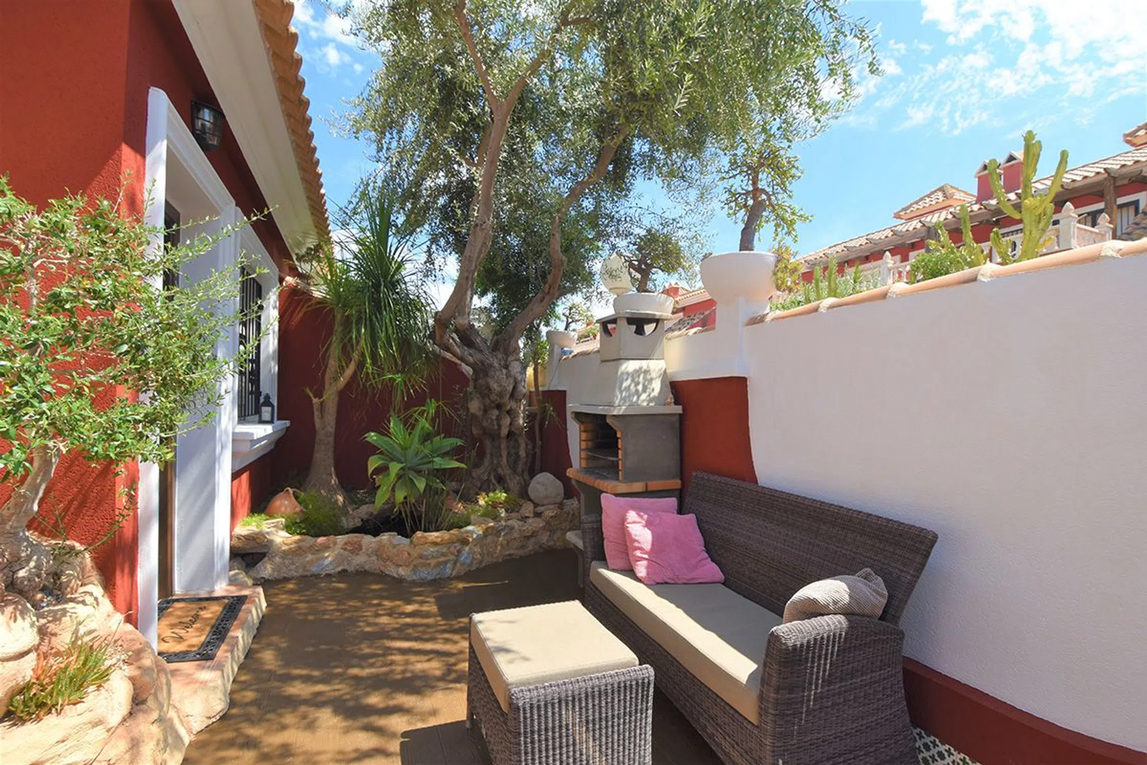Estupendo tríplex adosado en urbanización con piscina comunitaria, en venta en Pau 26, Villamartín Ubicado en la moderna zona residencial PAU 26, en un entorno tranquilo y agradable, a menos de cinco minutos en coche de todos los servicios, tiendas y restaurantes de la zona de Orihuela Costa. La vivienda se encuentra a solo 3 km de las playas de Cabo Roig, La Zenia y Playa Flamenca, y a 10 minutos en coche del popular centro comercial Zenia Boulevard. Además, tres de los mejores campos de golf del sur de la Costa Blanca están a menos de 2 km de distancia. Construido en dos plantas y completamente reformado en 2025, este adosado cuenta con un total de 3 dormitorios dobles y 3 baños. Dispone de un amplio salón-comedor con chimenea, cocina independiente con galería, y una pequeña terraza. También incluye garaje privado, cuarto de lavandería y una bonita terraza con vistas despejadas. La vivienda ofrece además un encantador porche delantero, ideal como zona de barbacoa. La urbanización dispone de una gran piscina comunitaria, perfecta para disfrutar del buen clima de la zona. Como valor añadido, la propiedad cuenta con una planta subterránea adicional, incorporada posteriormente, que incluye un amplio dormitorio con baño completo en suite y un gran armario empotrado. Se vende parcialmente amueblada, con cocina equipada y aire acondicionado con bomba de calor en todas las estancias. Lista para entrar a vivir.