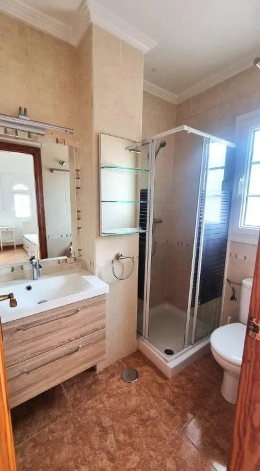 Encantadora casa adosada en Villamartin – ¡A solo 3,5 km de la playa! Bienvenido a su nuevo hogar en Sol-Golf II – Los Almendros, Villamartin (Orihuela Costa), una zona residencial tranquila y soleada con una ubicación perfecta cerca de la costa y todos los servicios. Esta cuidada casa adosada ofrece no solo un amplio confort, sino también el auténtico estilo de vida mediterráneo. A solo 3,5 km del mar, vivirá aquí de forma relajada, con mucha privacidad y en una ubicación muy céntrica. Aspectos destacados de la propiedad: • 2 dormitorios y 2 baños – distribuidos idealmente en dos plantas • Terraza privada en la azotea con trastero – perfecta para tomar el sol y almacenar objetos • Amplio salón-comedor con chimenea y aire acondicionado (frío/calor) • Cocina independiente moderna + trastero práctico • 2 terrazas y patio – ideal para barbacoas y momentos al aire libre • Plaza de aparcamiento privada en la parcela El dormitorio en la planta baja es ideal para invitados o para vivir sin barreras. El dormitorio en la planta superior tiene acceso directo a la soleada terraza de la azotea. Comodidades y equipamiento: • Aire acondicionado frío/calor en salón y dormitorios • Completamente amueblado y equipado – ¡listo para entrar a vivir! • Superficie total: 88,15 m², superficie habitable: 74,60 m² • Parcela: 63,40 m² Ubicación privilegiada: • Solo 8 minutos en coche del mar y las preciosas calas de la Costa Blanca • Centro comercial La Zenia Boulevard a solo 3,5 km • Restaurantes, bares y supermercados muy cerca (Playa Flamenca) • Aeropuerto de Alicante a unos 45 minutos Su refugio bajo el sol de España – ideal como casa de vacaciones, residencia permanente o inversión para alquilar. ¡Solicite ya su visita!