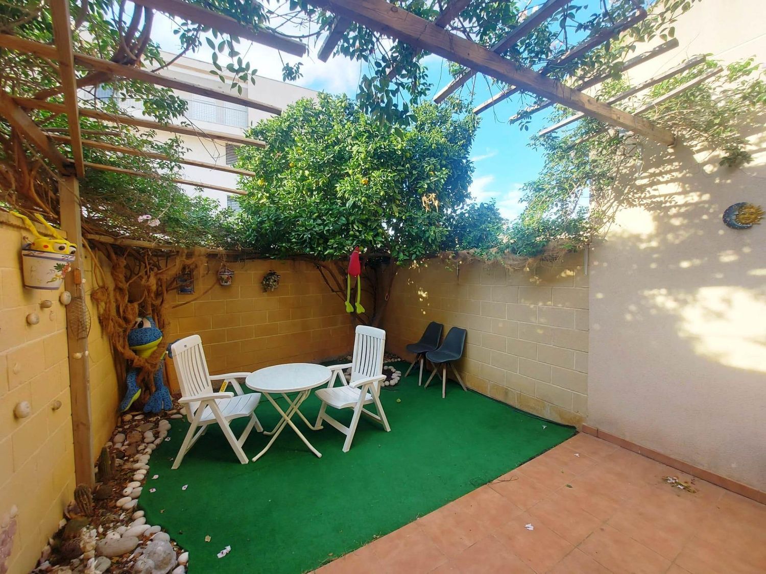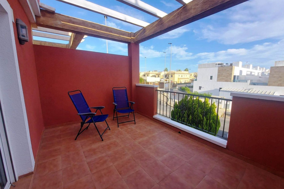 Vivienda de 97 m2 mas terraza parking, patio, galeria, solarium, 3 dormitorios (uno en planta baja) dos baños (uno en planta baja) salón comedor y cocina independiente.Se vende con muebles y electrodomésticos.