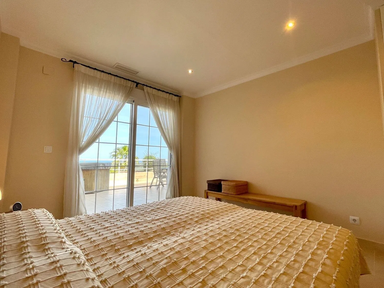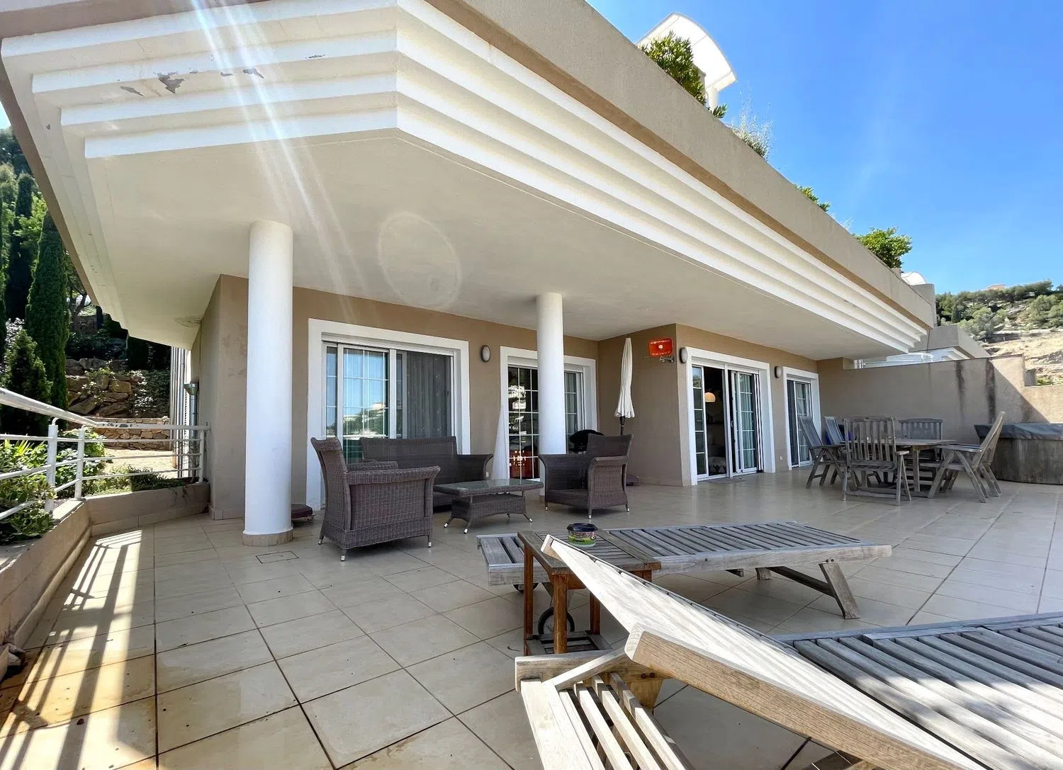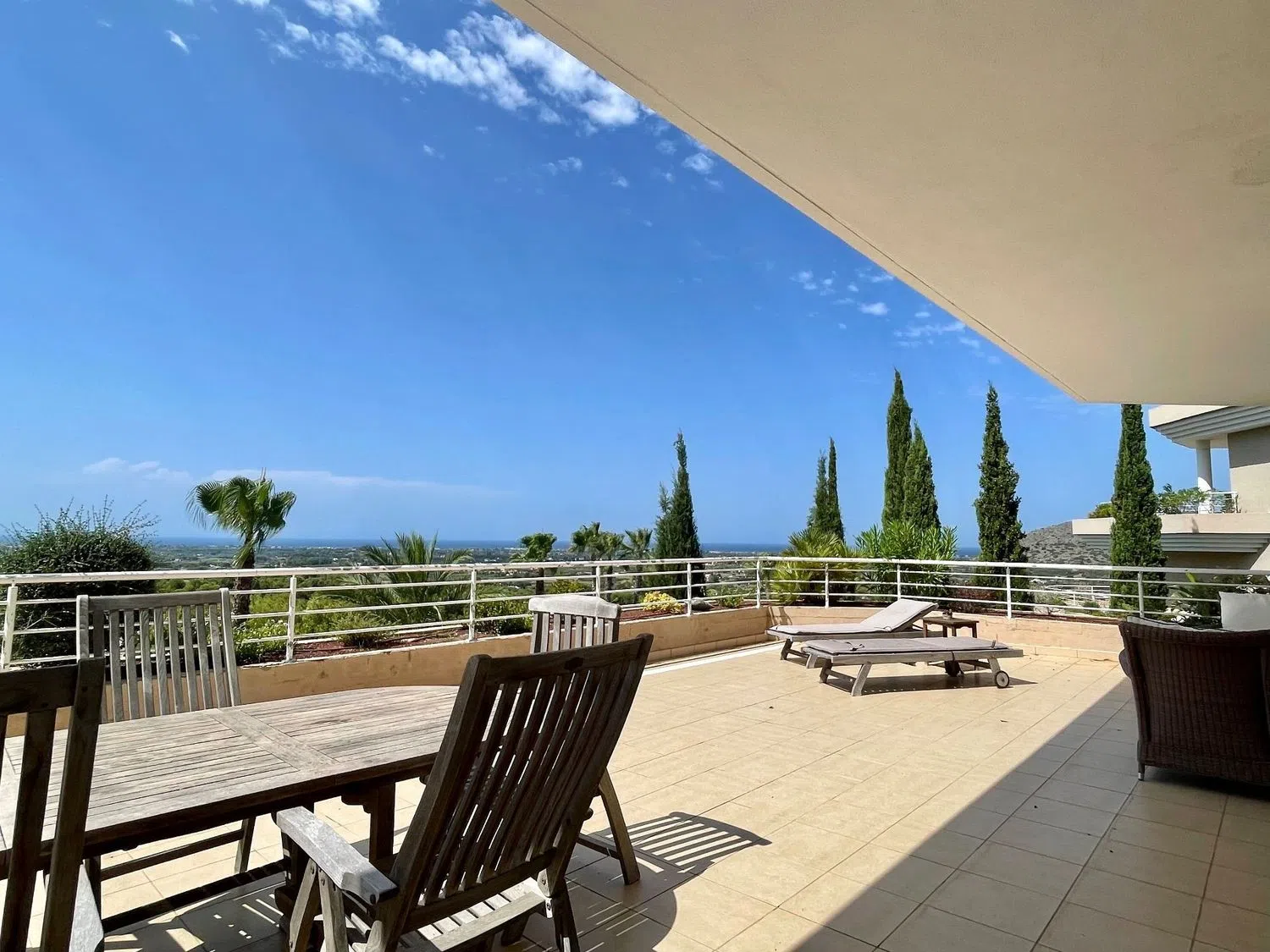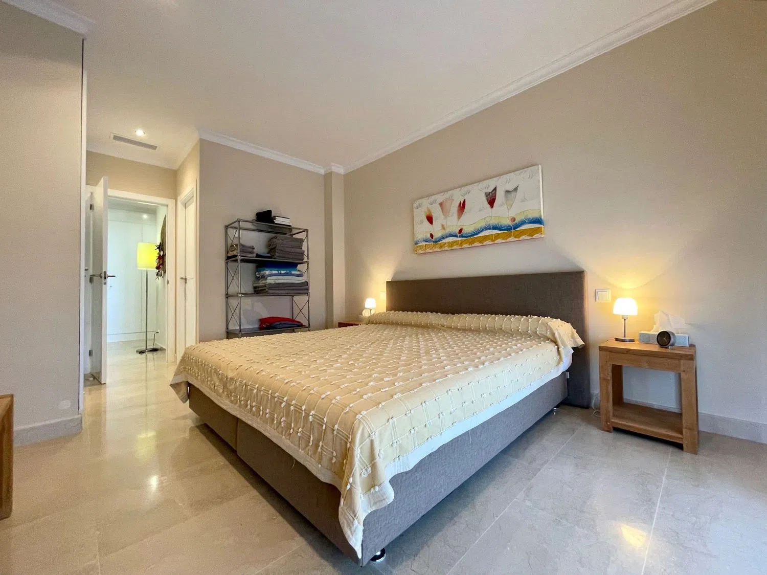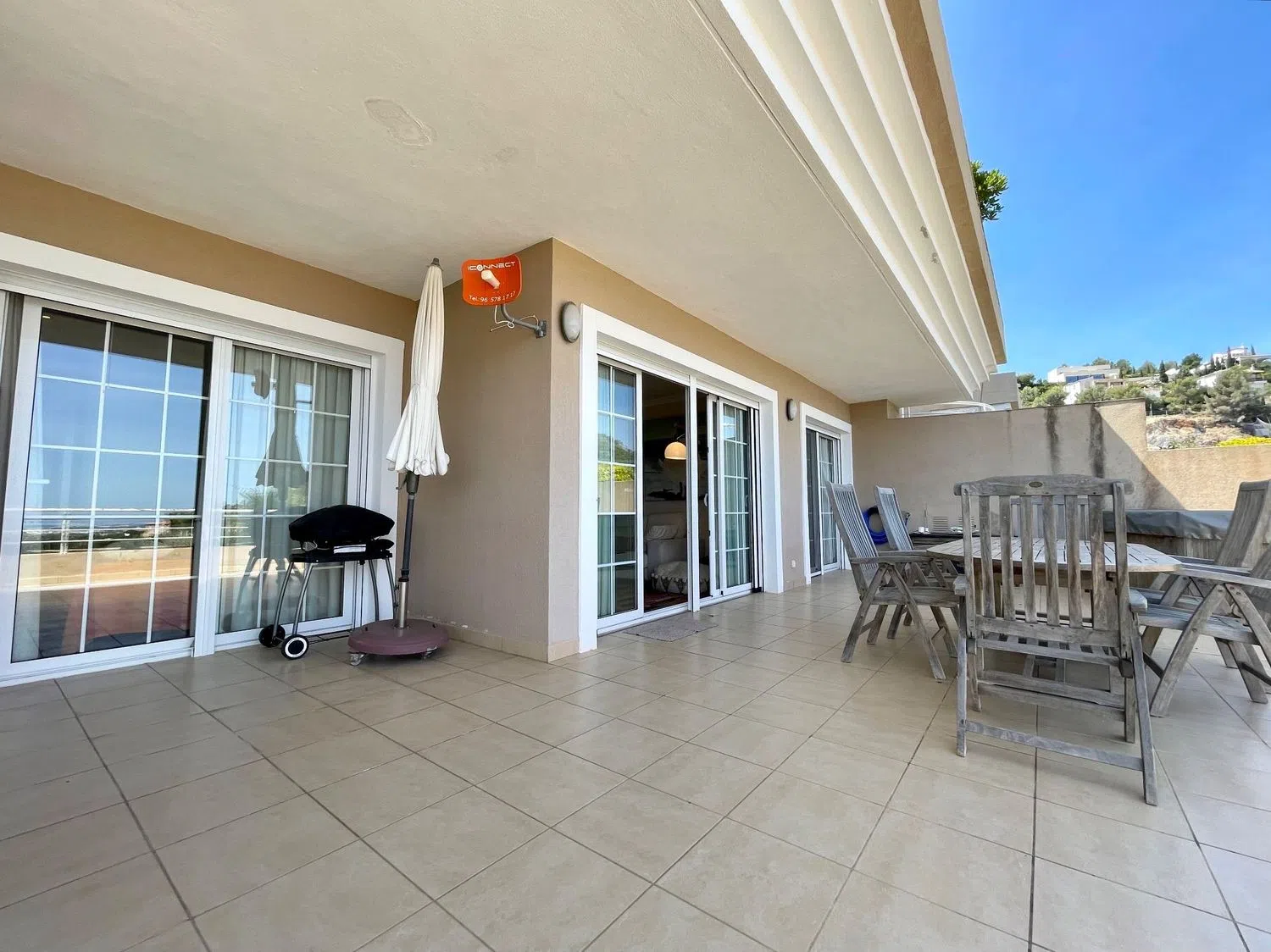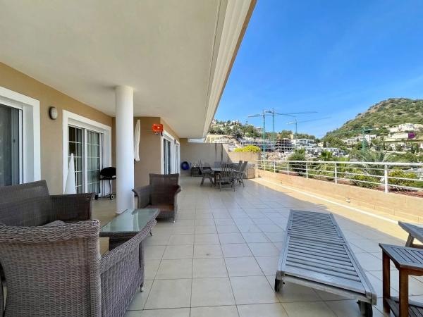 Das Apartment erstreckt sich über eine Etage und bietet ein geräumiges Wohn- und Esszimmer, eine offene Küche mit Hauswirtschaftsraum, drei Doppelzimmer und drei Badezimmer, von denen eines en-suite ist. Eine große Terrasse von ca. 60 m² ist von allen Wohnbereichen zugänglich und beeindruckt mit spektakulären Ausblicken auf das Meer, die Küstenlinie und die umliegenden Berge.