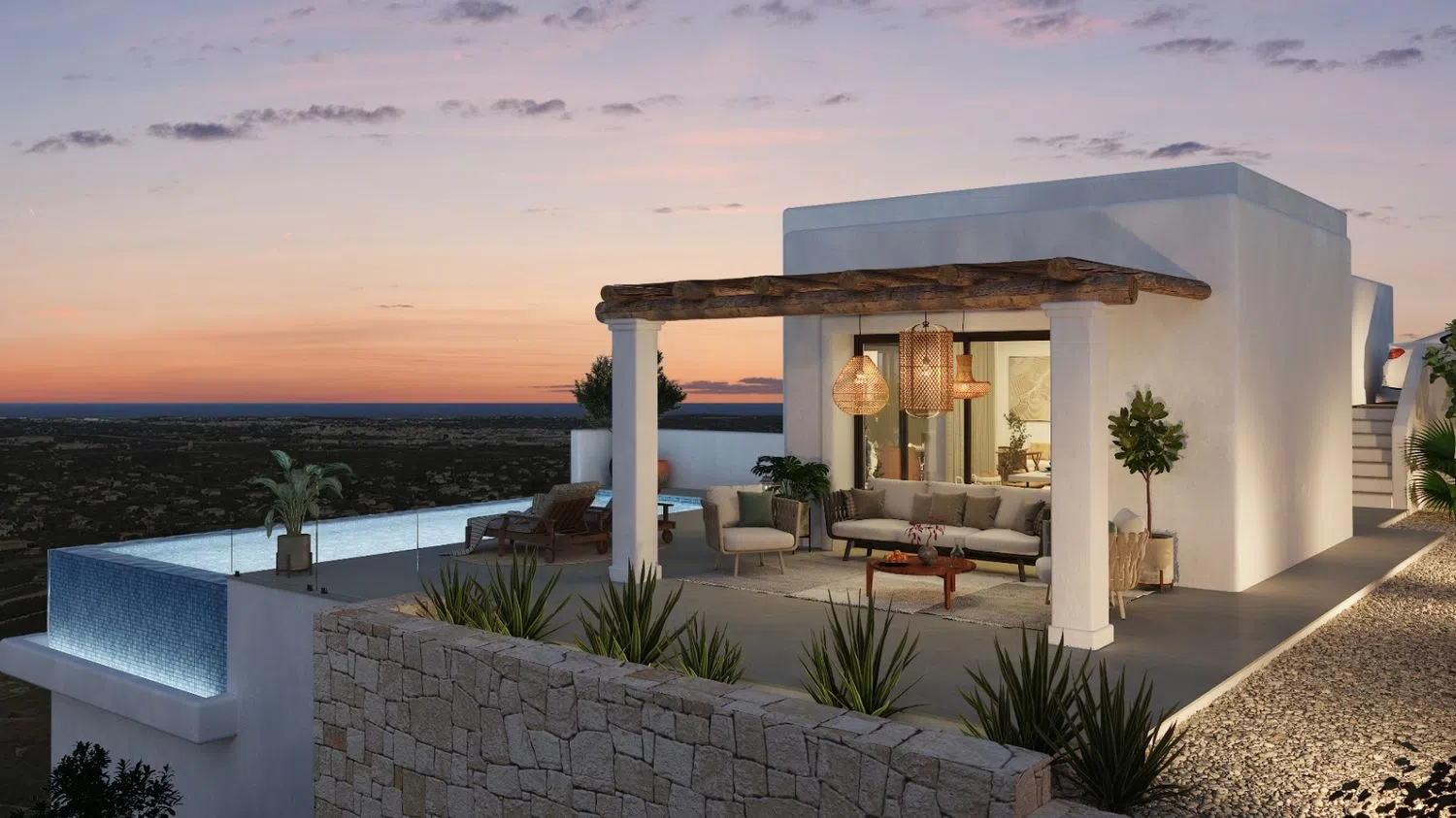 Diese Villa in der Urbanisation Monte Solana verkörpert ein exklusives Designprojekt, das den rustikalen ibizenkischen Stil mit modernen Elementen vereint. Hier entsteht ein Raum von hoher Qualität und Eleganz, der durch spektakuläre Ausblicke auf das Mittelmeer besticht. Die ruhige und exklusive Umgebung ist ideal für diejenigen, die Erholung und Beschaulichkeit suchen.