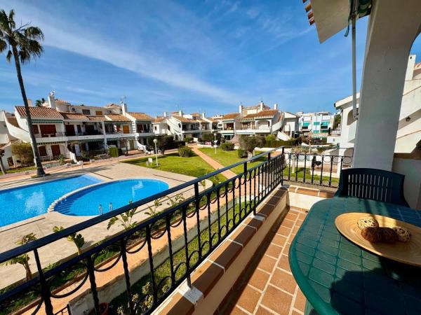 Este apartamento de 2 dormitorios y 1 baño está situado en una ubicación inmejorable en la playa de Torre de la Horadada, a tan solo 200 metros del mar. Su gran terraza soleada le permitirá disfrutar del clima mediterráneo, mientras que la zona comunitaria ajardinada le ofrece un espacio tranquilo rodeado de vegetación. El complejo cuenta con una piscina comunitaria para relajarse y disfrutar del sol, y está a pocos pasos de supermercados, bares y otros servicios. El apartamento sigue un estilo español tradicional, lo que lo convierte en un lugar acogedor y lleno de encanto. Características destacadas: Ubicación: Playa de Torre de la Horadada, a 200 metros de la playaDistribución: 2 dormitorios, 1 bañoGran terraza soleadaZona comunitaria ajardinadaPiscina comunitariaCerca de supermercados y baresEstilo español tradicionalIdeal para inversores Perfecto para aquellos que buscan una vivienda cerca del mar, con mucho potencial para alquileres vacacionales o como inversión a largo plazo en la Costa Blanca. Solicite más información o agende una visita hoy mismo.