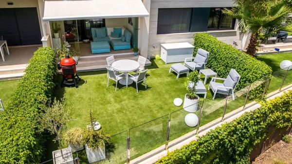 Descubra este lujoso apartamento en planta baja con preciosos acabados, ubicado en la exclusiva urbanización Golf Lo Romero, en la soleada Pilar de la Horadada. Una oportunidad única para quienes buscan tranquilidad, comodidad y magníficas vistas al campo de golf. ? Superficie habitable y parcela El apartamento tiene una superficie habitable de 77 m², una amplia terraza cubierta (92 m² en total) y una parcela de 149 m². La casa se construyó en 2022 y se compró nueva en 2023. ✨ Acabados y extras La casa está lista para entrar a vivir y terminada con materiales de alta calidad y muchas opciones adicionales • Jardín delantero y trasero completamente ajardinado con césped artificial de bajo mantenimiento. • La terraza se cerró completamente con una elegante cortina de vidrio de 4 metros de ancho y ventanas adicionales en las aberturas superiores. • El patio trasero cuenta con un toldo eléctrico de 4 metros para la sombra y comodidad necesarias.? ️ Diseño • 2 dormitorios con amplios armarios empotrados (1 con 3 puertas, 1 con 4 puertas) • 2 baños, ambos equipados con modernas duchas con puertas corredizas de vidrio. • Moderna cocina abierta equipada con • Refrigerador grande • Lavavajillas empotrado • Placa de cocina y horno • 2 armarios de almacenamiento adicionales en la cocina. • Salpicadero de vidrio negro en lugar de azulejos tradicionales? Comodidad y tecnología • Mosquiteras en todas las ventanas y puertas corredizas (incluida la terraza que da a la sala de estar) • Aire acondicionado (frío/calor) con mando a distancia, regulable individualmente por habitación. ? Ubicación Situado en una zona tranquila con hermosas vistas al campo de golf, ideal para aficionados al golf, aficionados al invierno o cualquier persona que disfrute del sol español en un entorno verde y cuidado. Este moderno complejo de lujo ofrece tranquilidad, privacidad y seguridad. ¡Plaza de parking privada incluida! A 10 km de la playa. El pueblo se encuentra a 5 Km y a 2 Km del supermercado El Cabo. Para más información, fotos o una visita, contáctenos. Esta casa lista para entrar a vivir es una oportunidad única en una ubicación privilegiada.