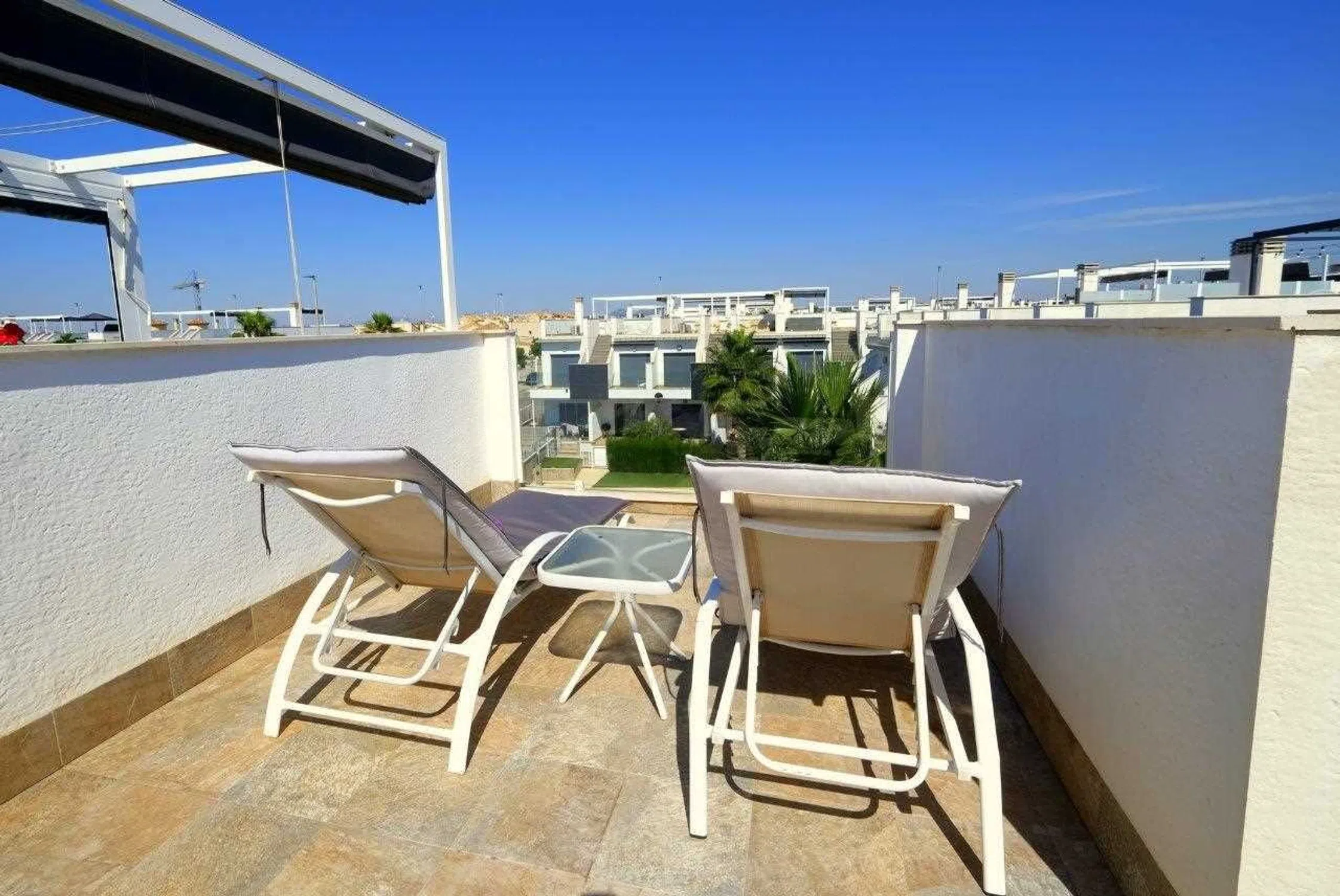 Fantástico estudio en Pilar de la Horadada Este apartamento cuenta con un baño con ducha a ras de suelo, una moderna cocina equipada, un salón/comedor y una cama abatible. Desde aquí, una escalera exterior conduce a la azotea de 36 m². Aquí podrá disfrutar del sol durante todo el día y de las fantásticas vistas al mar y a la piscina. La propiedad está equipada con aire acondicionado y se vende completamente amueblada. Este apartamento también dispone de licencia turística.