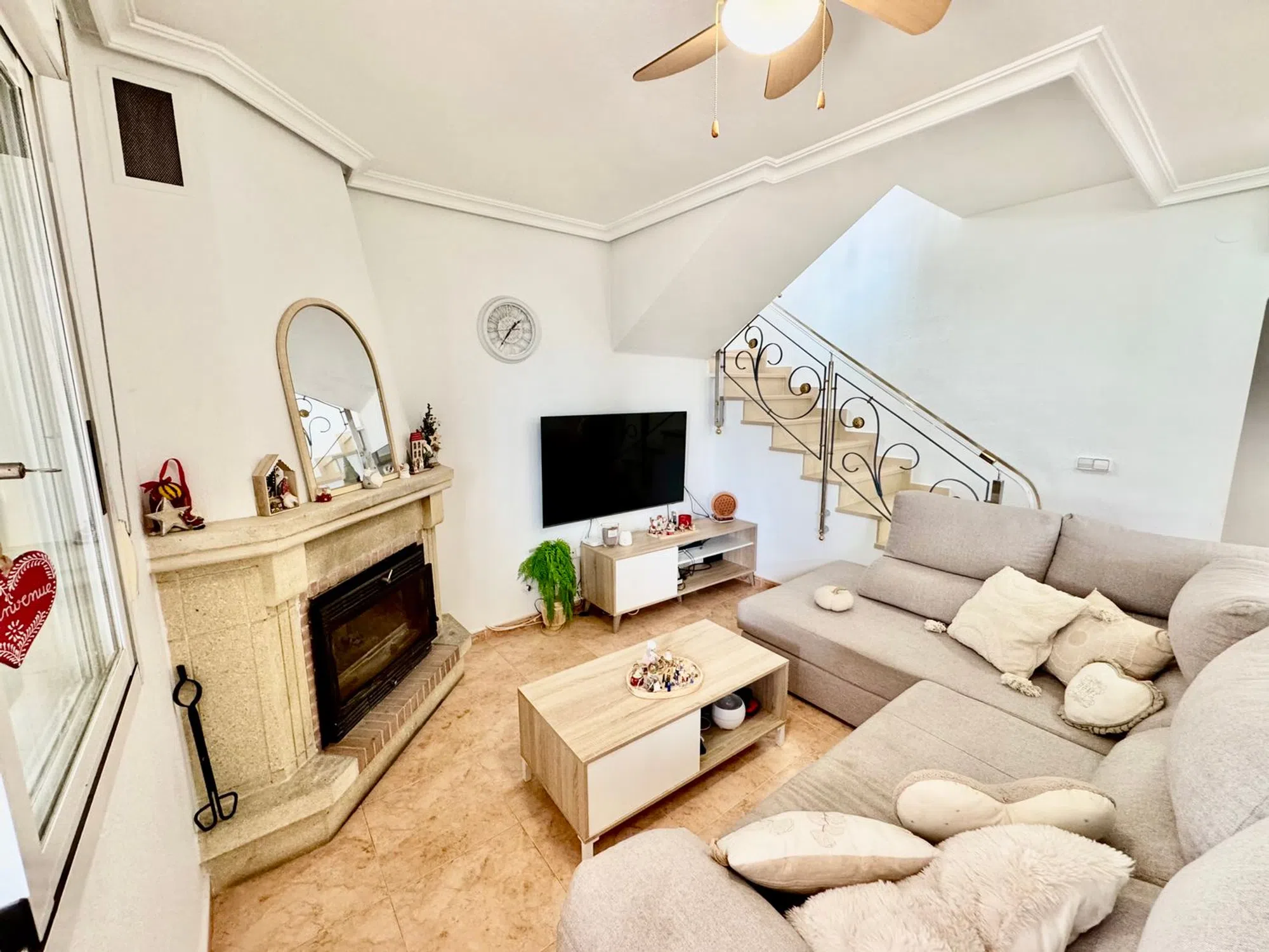 En venta en Pinar de Campoverde (Pilar de la Horadada) Encantadora villa reformada de 3 dormitorios – 2 baños – terrazas – piscina – orientación sur �� Situada en una zona residencial tranquila y muy demandada. Esta villa, completamente renovada con gusto, ofrece un entorno de vida tranquilo y soleado durante todo el año. Ideal como vivienda habitual, segunda residencia o inversión. � Planta baja: • Varias terrazas exteriores (incluyendo un espacio tipo garaje/trastero) • Pequeño hall de entrada • Salón luminoso con chimenea de cassette de leña • Comedor • Cocina equipada nueva • 2 dormitorios con armarios empotrados (espacio bajo cama + vestidor) • Baño con bañera • Porche acristalado / veranda • Zona de lavandería (lavadora nueva, secadora, congelador y armarios) � Planta superior: • Distribuidor • Suite principal con vestidor y armarios • Baño • Gran terraza orientación sur con vistas al mar � Exteriores y equipamiento: • Gran piscina comunitaria a 1 minuto a pie con trastero • Aire acondicionado • Toldos solares • Mosquiteras • Vivienda se vende amueblada, electrodomésticos incluidos • Fácil aparcamiento frente a la casa • Calle tranquila, con poco tráfico • Pequeño bosque detrás de la vivienda y muchos lugares para visitar en los alrededores � Ubicación ideal: • A 5 min del centro de Pinar de Campoverde • A 10 min de Pilar de la Horadada (colegios, comercios, centro deportivo) y de las playas (Mil Palmeras, La Mar Menor) • Centros comerciales Zenia Boulevard y Dos Mares a 15 min • Aeropuerto de Alicante a 50 min � Precio: 279.000 € � Una villa luminosa y perfectamente ubicada, donde el confort y la tranquilidad se unen. Una oportunidad que no puedes dejar pasar. � Francés y español: � Inglés y neerlandés: +32 494 04 17 00.