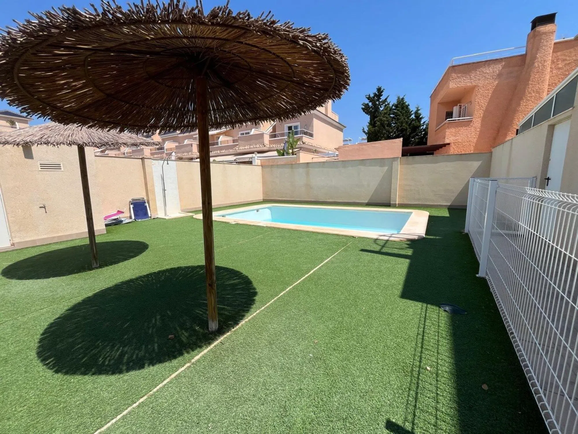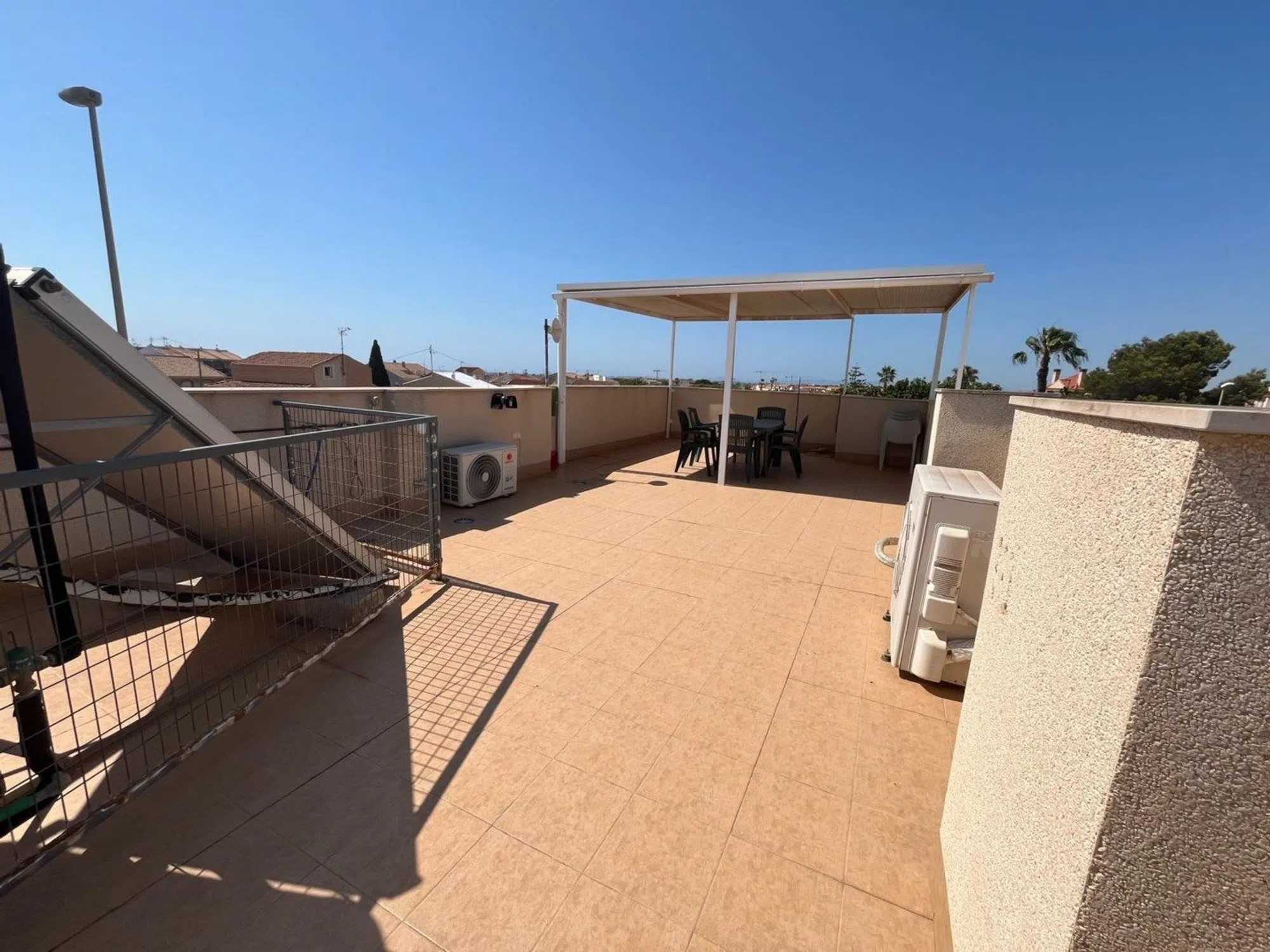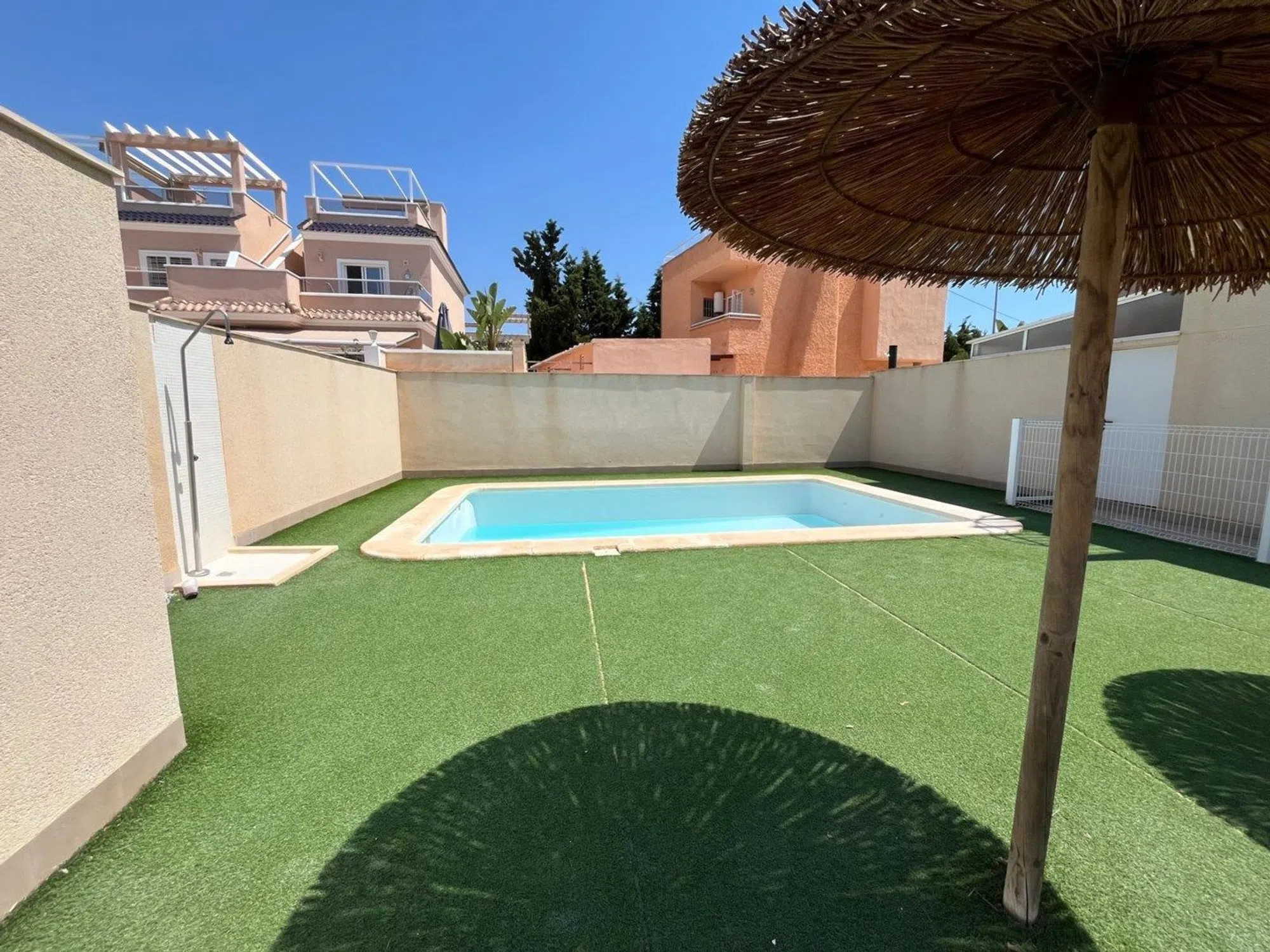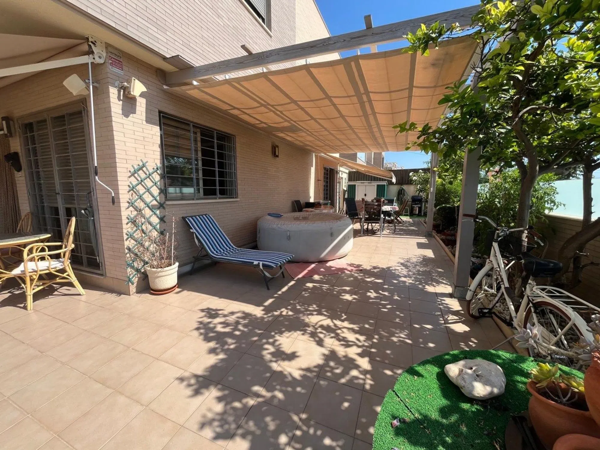 Bienvenido a una casa elegante y soleada en la resplandeciente costa mediterránea, donde la comodidad se combina a la perfección con la ubicación. Este moderno adosado esquinero, totalmente equipado, se encuentra a solo unos minutos a pie de la playa dorada, el animado paseo marítimo y el encantador centro de La Torre, con sus tiendas, cafeterías y restaurantes. La casa cuenta con una distribución luminosa y abierta que irradia amplitud y comodidad. El espacioso salón, con orientación sureste, inunda de luz natural y se abre a la elegante cocina, un espacio perfecto tanto para el día a día como para fiestas. Originalmente concebida como una casa de tres dormitorios, ahora cuenta con dos amplios dormitorios, ambos con baño en suite. La casa cuenta con un total de tres baños, todos de estilo moderno y con un alto nivel de calidad. Pero son las zonas exteriores las que realmente hacen de esta casa algo único. La amplia terraza solárium de 56 m² ofrece un paraíso privado bajo el sol. Además, está equipada con paneles solares, lo que la convierte en una casa ecológica y económica. En la planta de entrada nos recibe un espacio de 90 metros cuadrados que actualmente se utiliza como jardín y aparcamiento, pero que se puede transformar fácilmente en un oasis verde con piscina privada: un sueño para quienes buscan ese pequeño extra. Aquí vivirás con todo a tu alcance: el mar, la oferta de ocio, la paz y la luz. Un hogar perfecto tanto para residencia permanente como para vacaciones de lujo, en medio de lo mejor que la Costa Blanca tiene para ofrecer. Póngase en contacto con nosotros para obtener más información o reservar una visita. ¡También ofrecemos visitas digitales!