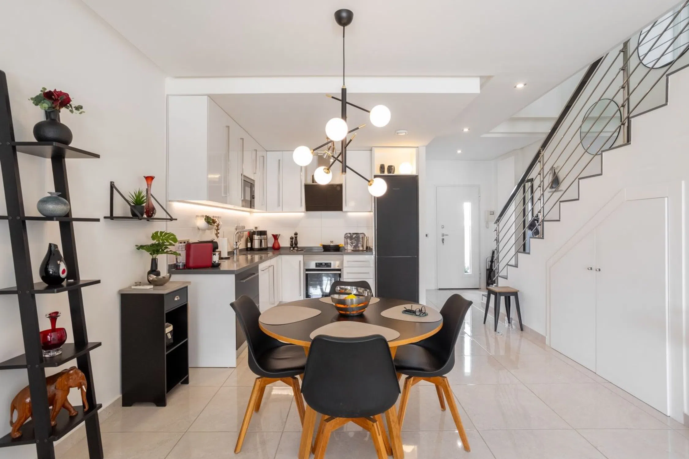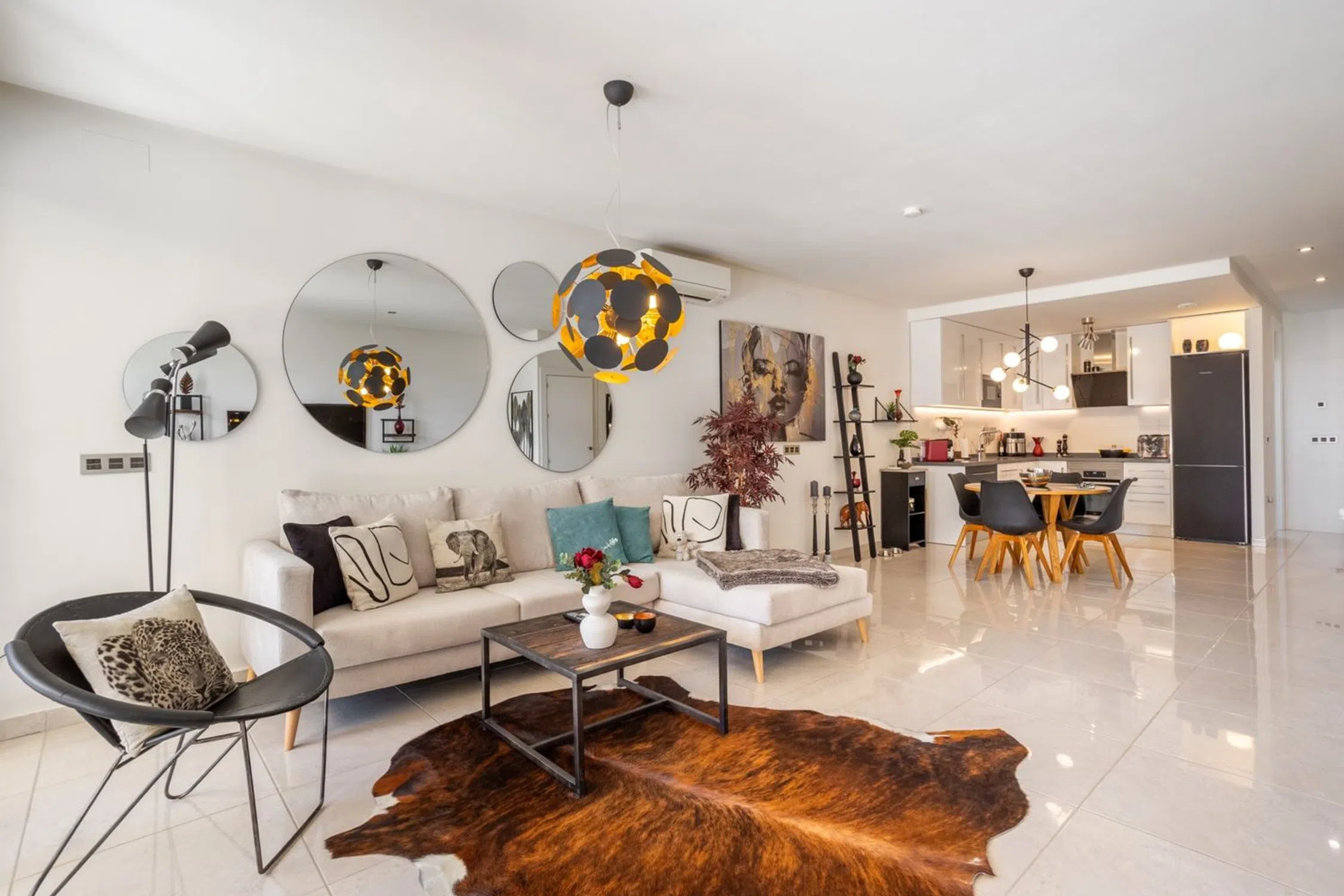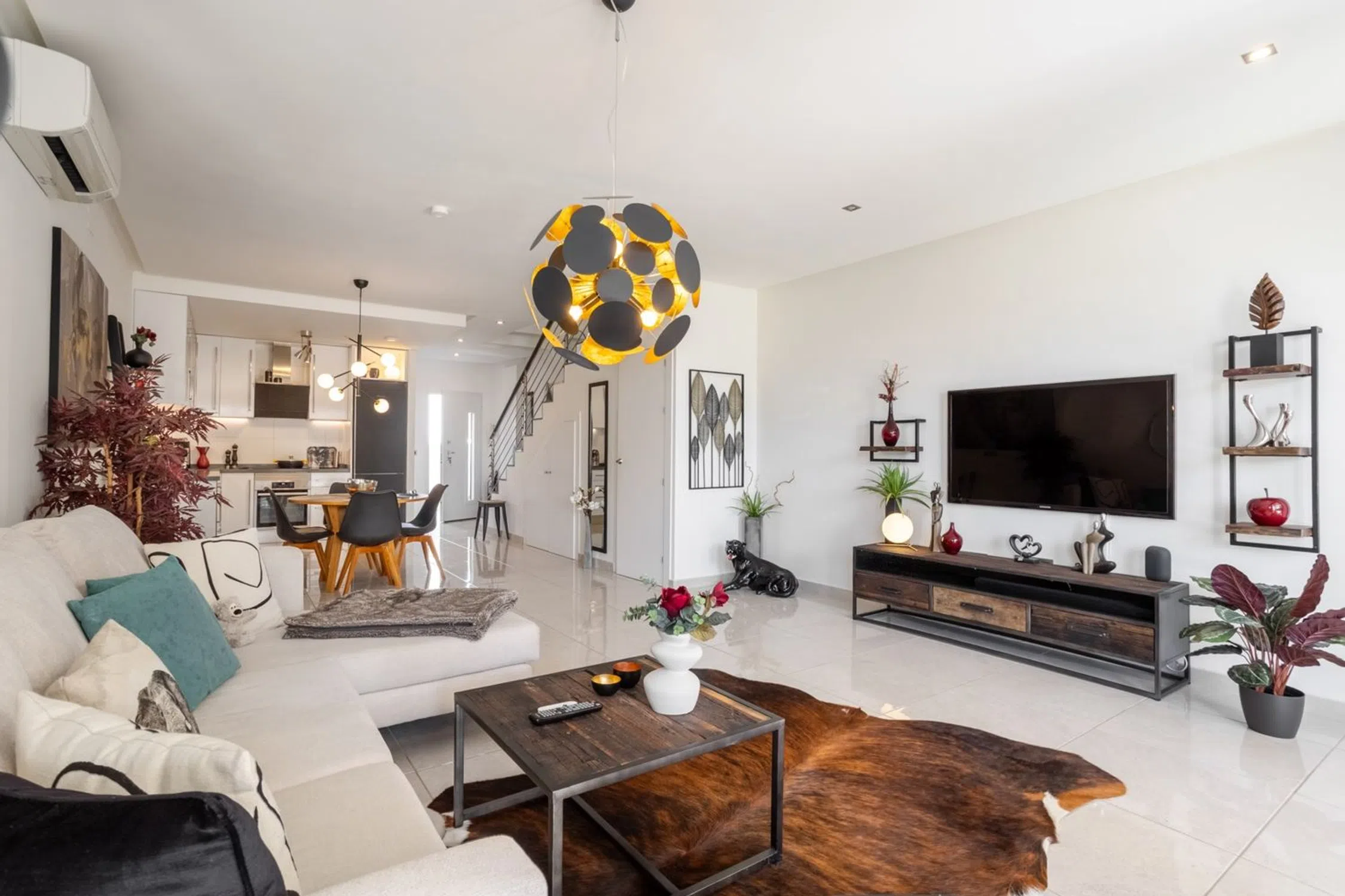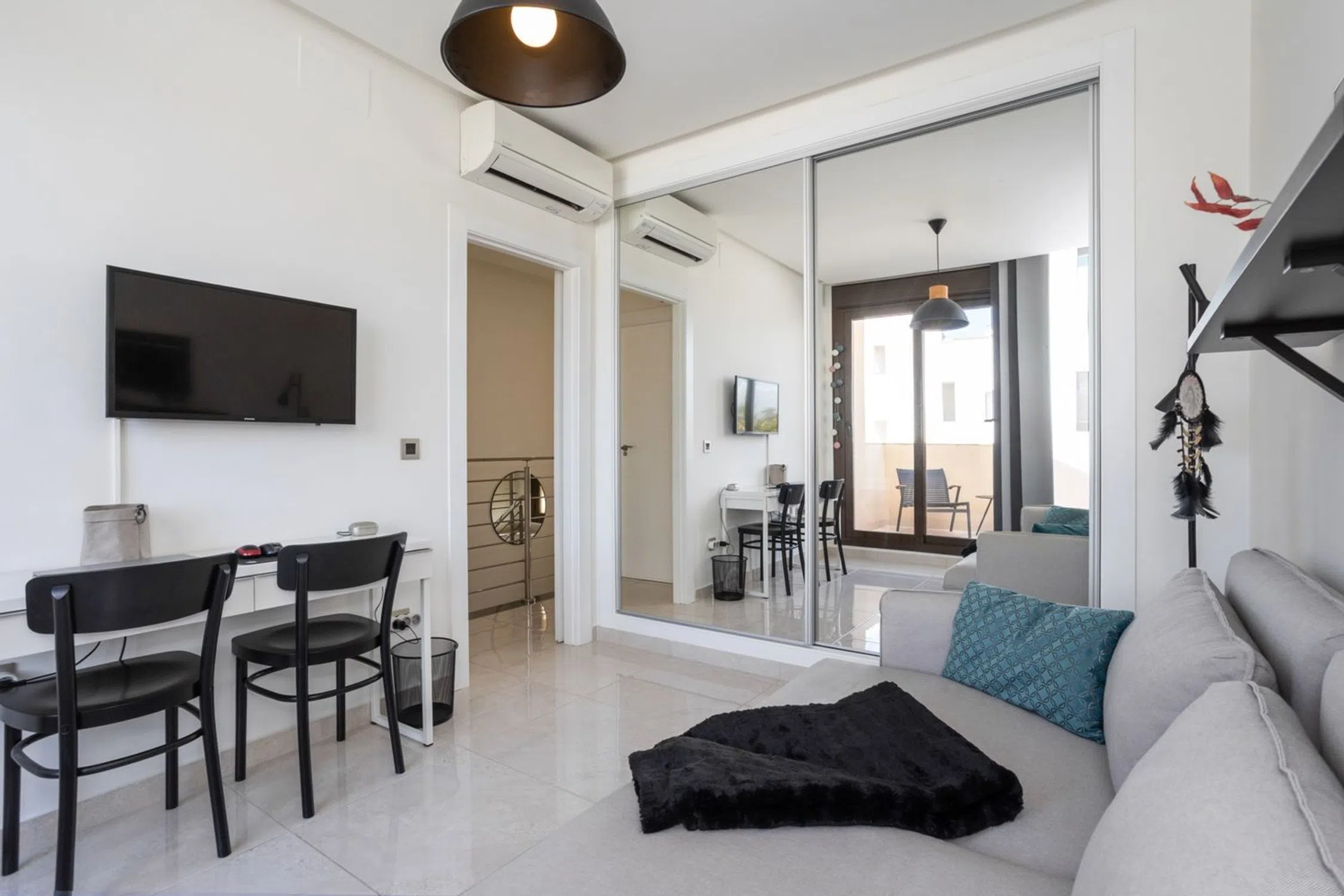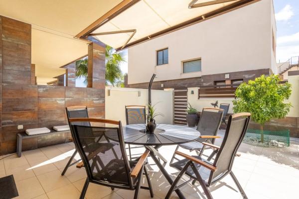 Una cálida bienvenida a la casa adosada moderna y bien planificada ubicada en la popular zona de Torre de la Horadada en la Costa Blanca sur. Este elegante alojamiento consta de dos dormitorios, dos baños y una sala de estar y cocina de planta abierta. Además, hay dos patios en la planta baja, una amplia terraza, un balcón y una gran azotea en una ubicación soleada. Esta casa adosada también está equipada con paneles solares. La casa adosada tiene una sensación constantemente acogedora con un generoso flujo de luz y espacios amueblados con gusto. Se trata de un alojamiento que satisface incluso las necesidades y deseos más exigentes. En la zona común hay una piscina con una bonita ubicación. La sala de estar y la cocina están ubicadas en un espacio abierto y la habitación tiene espacio tanto para una sala de estar como para un comedor. La cocina tiene buenas opciones de almacenamiento detrás del elegante exterior de los gabinetes y buenas superficies de trabajo en la encimera oscura. Dos dormitorios con agradables flujos de luz y ubicaciones tranquilas, el dormitorio principal está amueblado con una cama doble y una mesita de noche mientras que la segunda habitación está amueblada como un estudio con un escritorio y un sofá pero puede acomodar fácilmente dos camas individuales o una cama doble. Ambos dormitorios disponen de espacio de almacenamiento en armarios empotrados. Dos baños, ambos equipados con WC, lavabo con inodoro y ducha. En la gran terraza de la azotea hay mucho espacio para muebles de exterior, un grupo de relax y tumbonas. En la terraza hay una cocina exterior y una ducha. Aquí vives cerca del mar Mediterráneo y de hermosas playas, incluida la Playa de las Higuericas. También hay una buena selección de tiendas, restaurantes y cafés cerca. Para aquellos que disfrutan jugando al pádel, hay varias pistas de pádel cercanas y para aquellos interesados en el golf, hay una buena selección de campos de golf bien mantenidos a poca distancia en coche. Se puede llegar fácilmente a la ciudad de Torrevieja en coche. Póngase en contacto con nosotros para obtener más información o reservar una visita. Por supuesto, realizaremos visitas digitales si no puede asistir en persona.