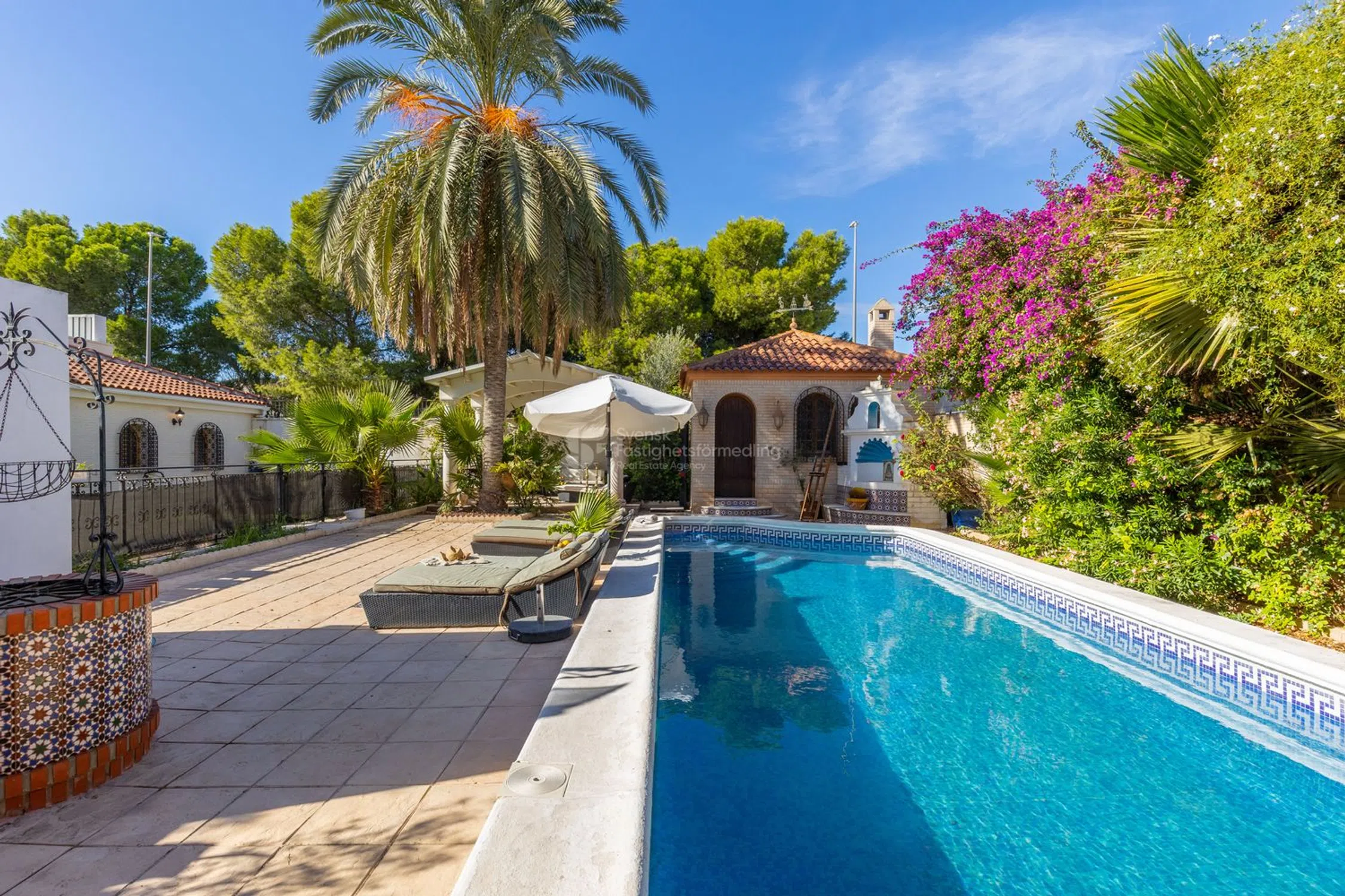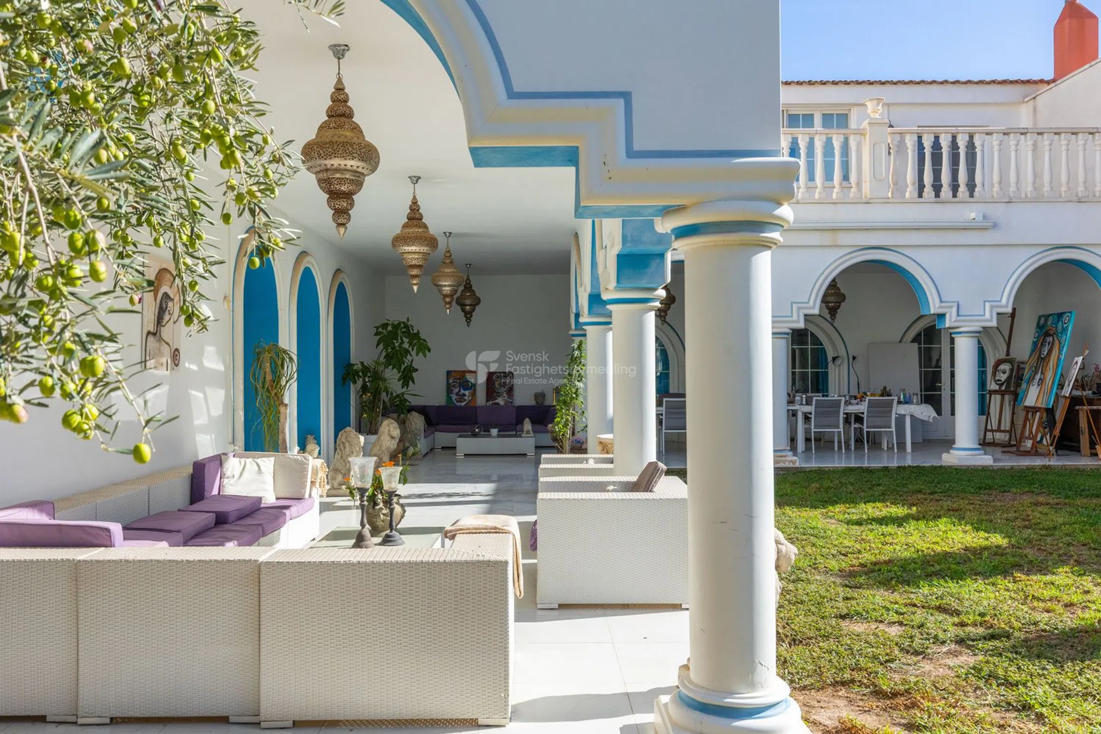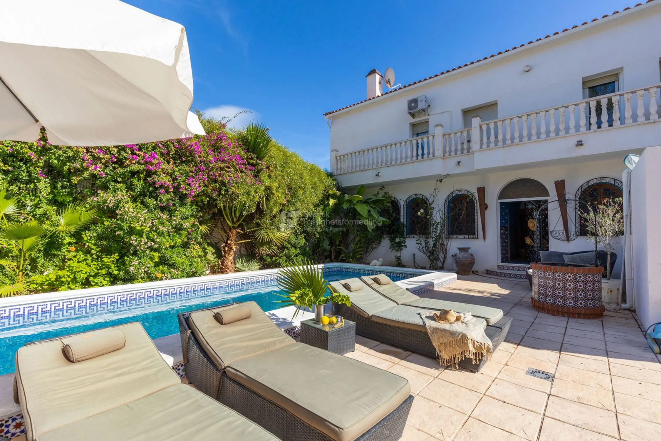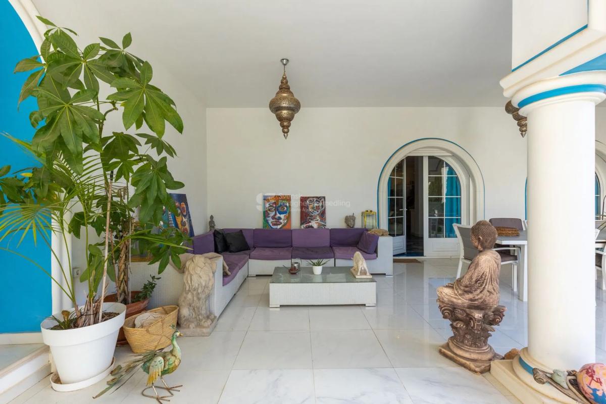 Esta es una casa diferente a cualquier otra: una residencia espectacular que cautiva con su arquitectura única, alma artística y detalles únicos. Aquí, las influencias marroquíes se unen a la calidez mediterránea, creando un ambiente luminoso y espacioso que recuerda a un exclusivo hotel boutique. Esta es una casa para el exigente, donde cada detalle cuenta una historia y cada habitación ofrece una experiencia. El punto central natural de la casa es el grandioso atrio, cuyo volumen y acústica crean un espacio casi mágico. La luz fluye a través del techo de cristal y realza la sensación de apertura y calma. Aquí, la arquitectura y la función se unen en una habitación que puede funcionar tanto como un lugar de reunión como un escenario para expresiones creativas. Alrededor del atrio se encuentra una joya de habitación tras otra, tanto en la planta baja como en el piso superior. Desde multitud de dormitorios, todos diseñados individualmente con un enfoque en la comodidad, la tranquilidad y la armonía, hasta bibliotecas, múltiples espacios de cocina, hermosos baños, balcones intercalados y una gran lavandería con hermosas vistas verdes, así como generosos espacios de almacenamiento. Varias chimeneas en la casa crean calidez y carácter, mientras que grandes ventanales conducen a una terraza de aproximadamente 120 m² con acceso directo a la piscina y al jardín, perfecta para cenas y relajación. Con piscina privada y tumbonas, la casa se encuentra como en un oasis de tranquilidad con proximidad tanto al bullicio del pueblo como a la pintoresca campiña. Con una generosa cocina integrada en el jardín y una pérgola con muebles de exterior, existe un gran potencial para diversos eventos y celebraciones. En la planta superior se encuentra una suite principal privada que constituye su propio santuario. Aquí hay un amplio vestidor y un baño exclusivo con sensación de spa. La escalera conduce a la azotea, donde esperan hermosas vistas abiertas de las montañas y el campo. Además, hay tanques con agua filtrada en toda la casa, así como un sistema de música integrado. Un apartamento independiente pertenece a la propiedad. El apartamento independiente ofrece muchas posibilidades en sí mismo para más familiares, conocidos o para alquilar. Una vivienda elegante y práctica con tres dormitorios, un baño elegante y un aseo independiente. La cocina es generosa y se abre al salón y al comedor en una distribución social que invita a la convivencia. Una gran terraza de 120 m² ofrece grandes oportunidades para la vida al aire libre tanto durante el día como en agradables veladas. ¡Aquí encontrará una casa que nunca antes ha visto y que tiene un potencial increíble para hacer realidad sus sueños! La zona también tiene una fantástica proximidad tanto al centro, al campo como a las comunicaciones ferroviarias que unen el idílico pueblo con las ciudades más grandes de los alrededores. Póngase en contacto con nosotros en Svensk Fastighetsförmedling y le contaremos más.