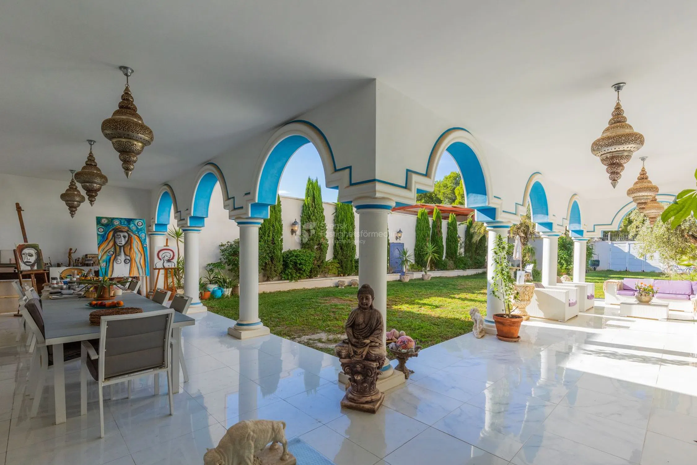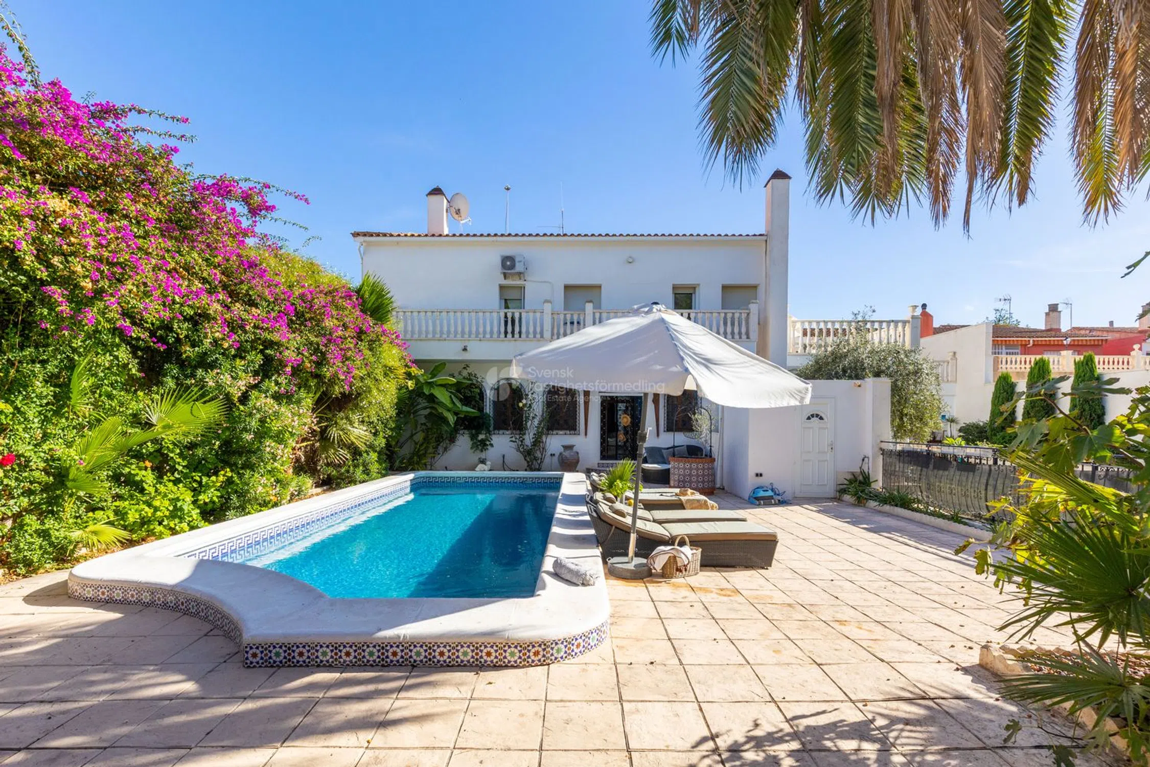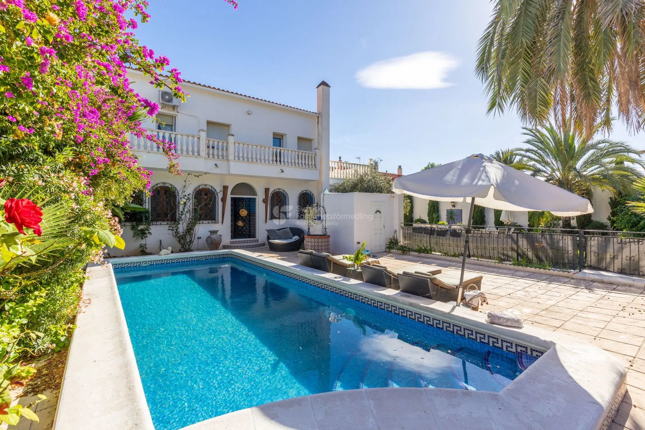 Esta es una casa diferente a cualquier otra: una residencia espectacular que cautiva con su arquitectura única, alma artística y detalles únicos. Aquí, las influencias marroquíes se unen a la calidez mediterránea, creando un ambiente luminoso y espacioso que recuerda a un exclusivo hotel boutique. Esta es una casa para el exigente, donde cada detalle cuenta una historia y cada habitación ofrece una experiencia. El punto central natural de la casa es el grandioso atrio, cuyo volumen y acústica crean un espacio casi mágico. La luz fluye a través del techo de cristal y realza la sensación de apertura y calma. Aquí, la arquitectura y la función se unen en una habitación que puede funcionar tanto como un lugar de reunión como un escenario para expresiones creativas. Alrededor del atrio se encuentra una joya de habitación tras otra, tanto en la planta baja como en el piso superior. Desde multitud de dormitorios, todos diseñados individualmente con un enfoque en la comodidad, la tranquilidad y la armonía, hasta bibliotecas, múltiples espacios de cocina, hermosos baños, balcones intercalados y una gran lavandería con hermosas vistas verdes, así como generosos espacios de almacenamiento. Varias chimeneas en la casa crean calidez y carácter, mientras que grandes ventanales conducen a una terraza de aproximadamente 120 m² con acceso directo a la piscina y al jardín, perfecta para cenas y relajación. Con piscina privada y tumbonas, la casa se encuentra como en un oasis de tranquilidad con proximidad tanto al bullicio del pueblo como a la pintoresca campiña. Con una generosa cocina integrada en el jardín y una pérgola con muebles de exterior, existe un gran potencial para diversos eventos y celebraciones. En la planta superior se encuentra una suite principal privada que constituye su propio santuario. Aquí hay un amplio vestidor y un baño exclusivo con sensación de spa. La escalera conduce a la azotea, donde esperan hermosas vistas abiertas de las montañas y el campo. Además, hay tanques con agua filtrada en toda la casa, así como un sistema de música integrado. Un apartamento independiente pertenece a la propiedad. El apartamento independiente ofrece muchas posibilidades en sí mismo para más familiares, conocidos o para alquilar. Una vivienda elegante y práctica con tres dormitorios, un baño elegante y un aseo independiente. La cocina es generosa y se abre al salón y al comedor en una distribución social que invita a la convivencia. Una gran terraza de 120 m² ofrece grandes oportunidades para la vida al aire libre tanto durante el día como en agradables veladas. ¡Aquí encontrará una casa que nunca antes ha visto y que tiene un potencial increíble para hacer realidad sus sueños! La zona también tiene una fantástica proximidad tanto al centro, al campo como a las comunicaciones ferroviarias que unen el idílico pueblo con las ciudades más grandes de los alrededores. Póngase en contacto con nosotros en Svensk Fastighetsförmedling y le contaremos más.