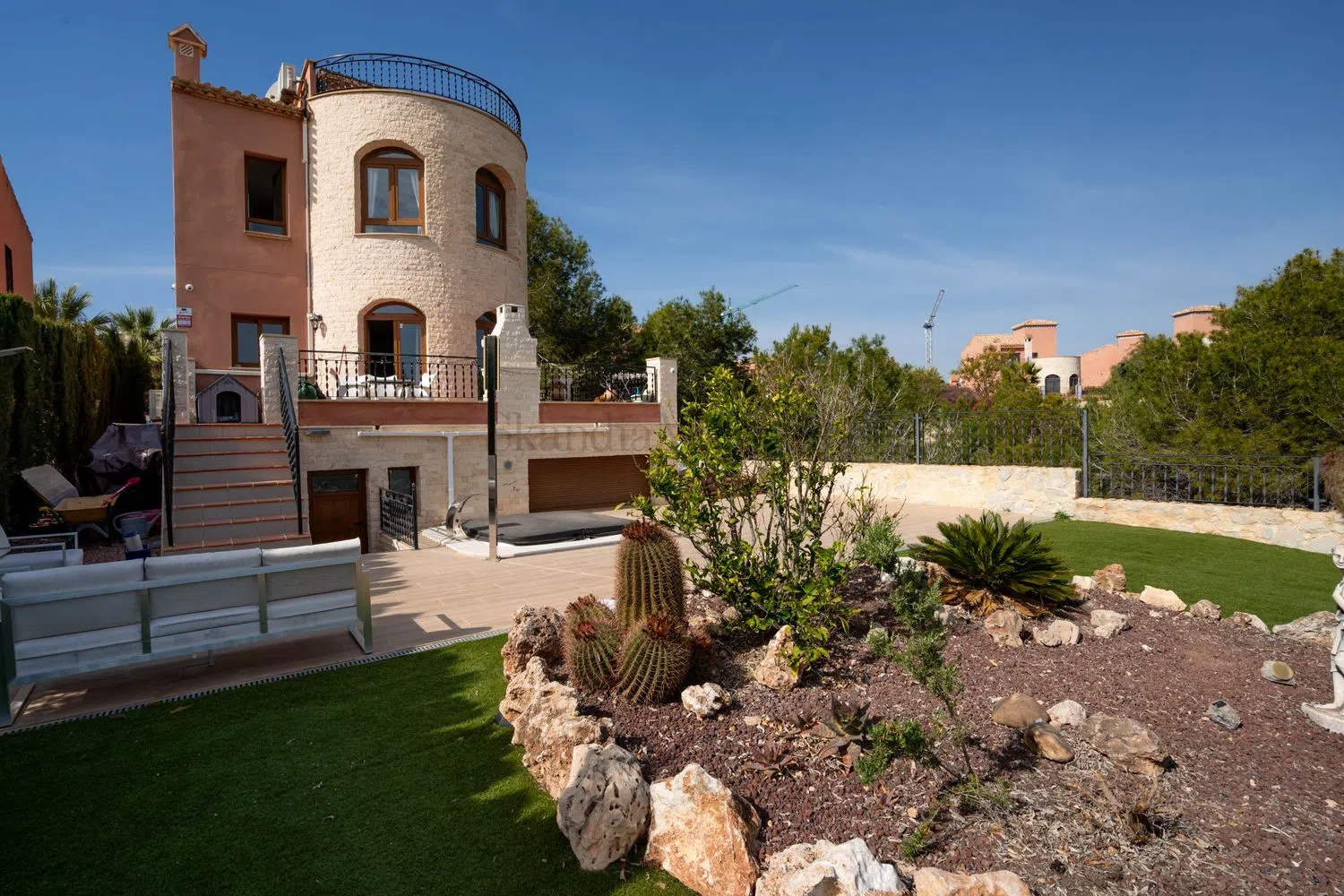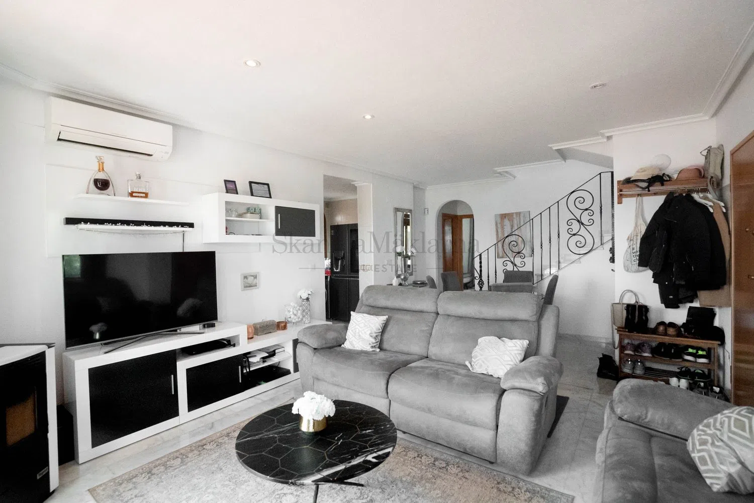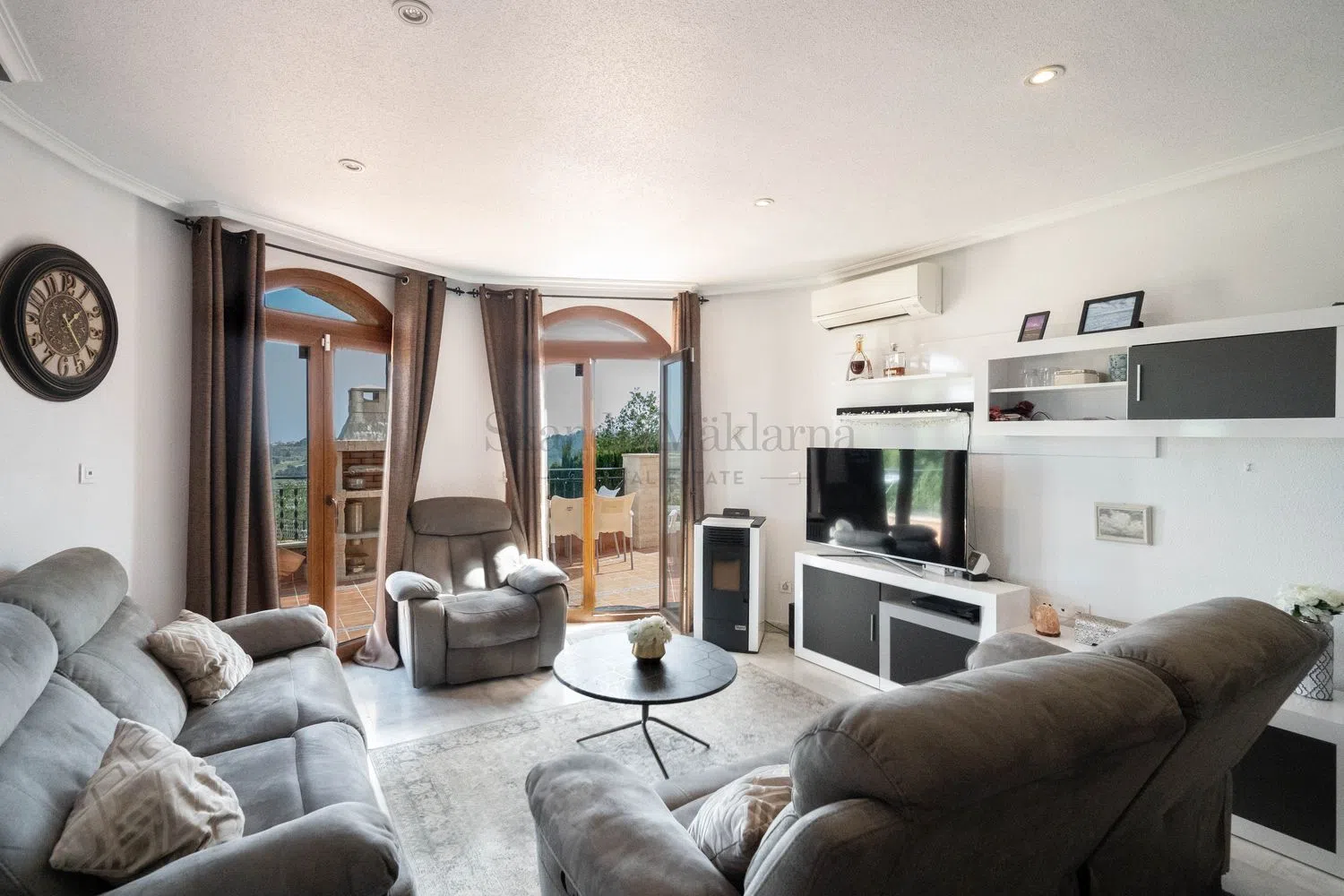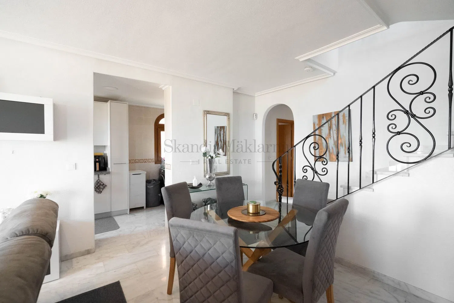 Aquí en SkandiaMäklarna nos complace ofrecerle esta villa bien cuidada y realmente acogedora a las afueras de San Miguel de Salinas. La villa consta de un total de 4 plantas. En la planta de entrada hay salón, cocina, dos dormitorios, un baño y una amplia terraza. Arriba hay dos dormitorios más con cada baño en suite. Si subimos las escaleras hasta la cima, hay una terraza en la azotea con una vista increíblemente hermosa de los alrededores y también una vista del mar Mediterráneo. En la parte inferior de la casa se encuentra el sótano, que está equipado para sauna y sala de estar. Increíblemente acogedor. En la parcela hay espacio para aparcar el coche y para la comunidad hay una zona de piscina compartida. La residencia está ubicada en una zona tranquila a las afueras del pueblo de San Miguel de Salinas. La villa está bien ubicada a medio camino entre San Miguel de Salinas y Villamartín, por lo que los alrededores ofrecen todos los servicios que necesita, independientemente de si está aquí de forma permanente o de vacaciones. Se puede llegar a la playa más cercana en unos 10-15 minutos en coche. A la misma distancia también hay varios campos de golf de alta calidad, el más cercano, Las Colinas, está considerado uno de los mejores campos de España. La escuela internacional también se encuentra a poca distancia. Para aquellos que valoran la paz y la tranquilidad, bonitos patios y bonitas vistas. Bienvenido a casa.