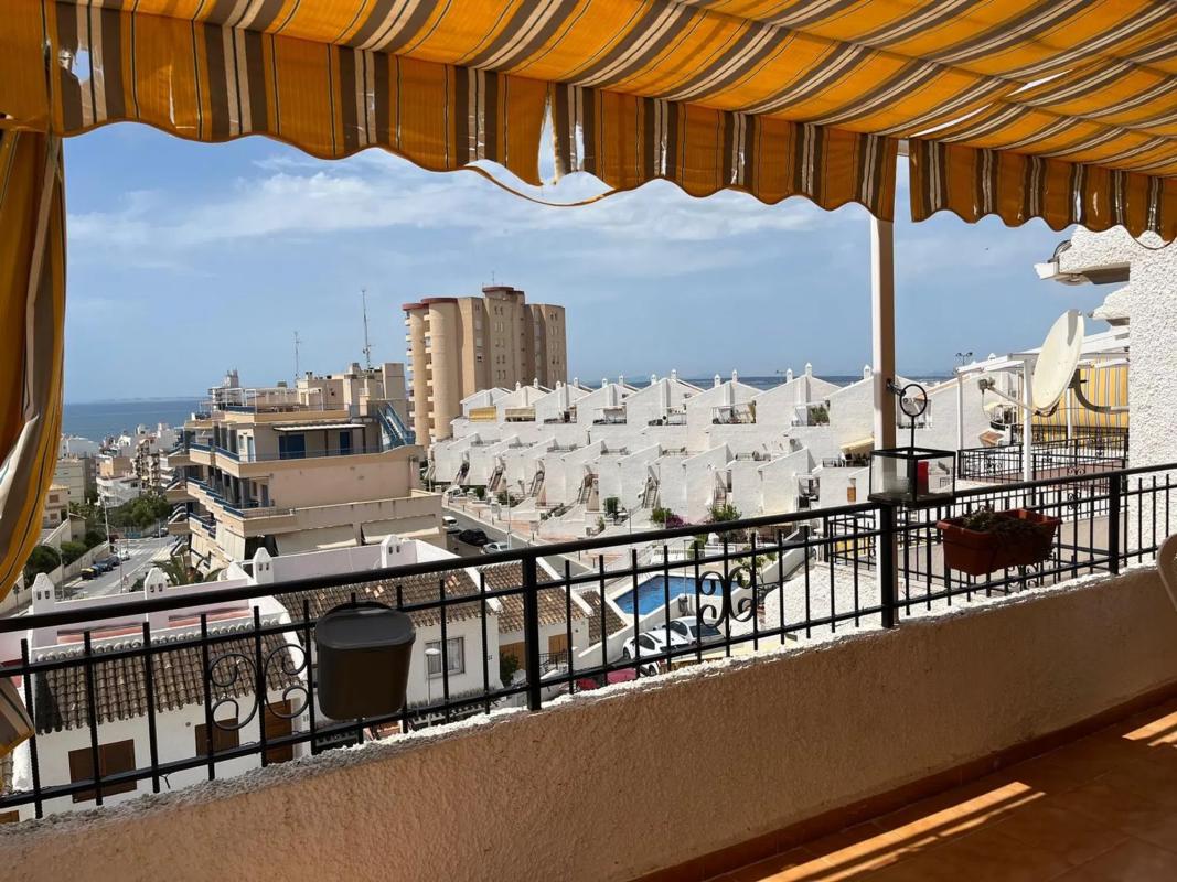 Bungalow ático con vistas al mar en una de las mejores urbanizaciones de Santa Pola (Alicante). A 200 metros de la playa (Calas de Santiago Bernabéu). Amplia terraza con pérgola y vistas pan...