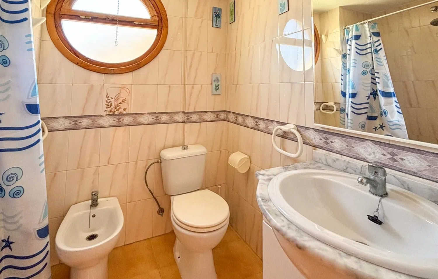 Die vollständig eingerichtete und ausgestattete Küche ist bereit zur Nutzung und ergänzt den funktionalen Grundriss der Wohnung. Besonders hervorzuheben ist die Terrasse, von der aus Sie atemberaubende Ausblicke auf das Meer genießen können. Diese Oase im Freien schafft eine einladende Atmosphäre für entspannende Momente unter freiem Himmel.