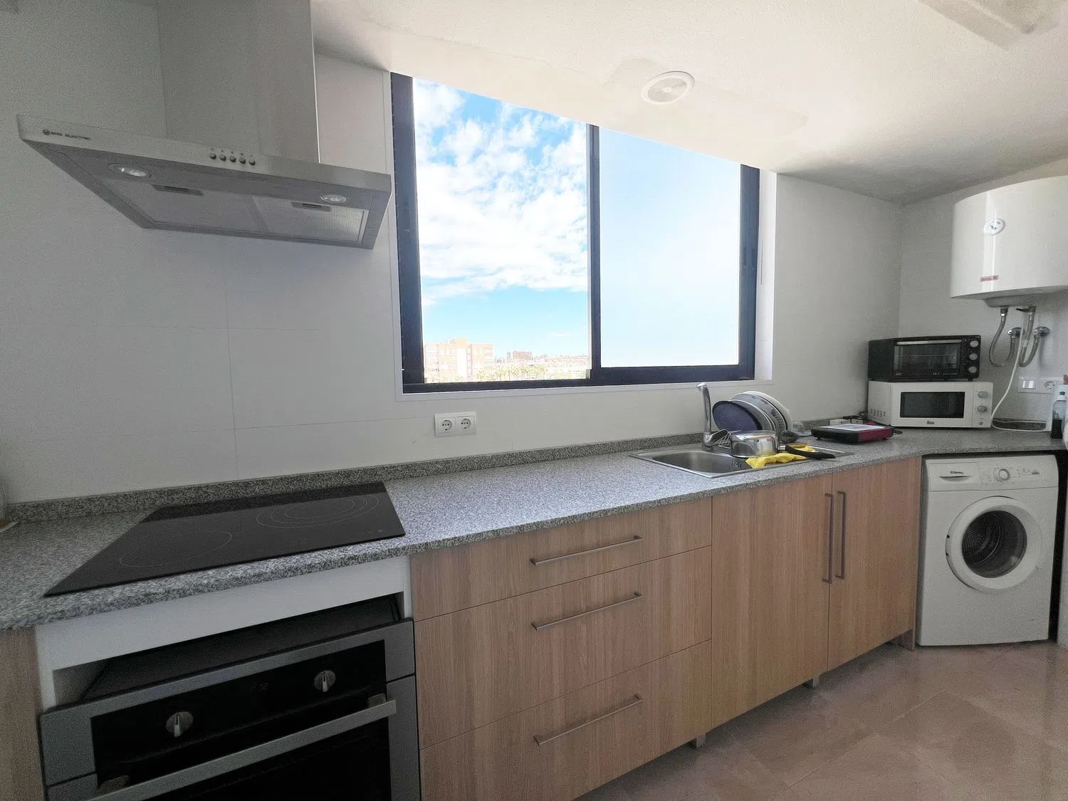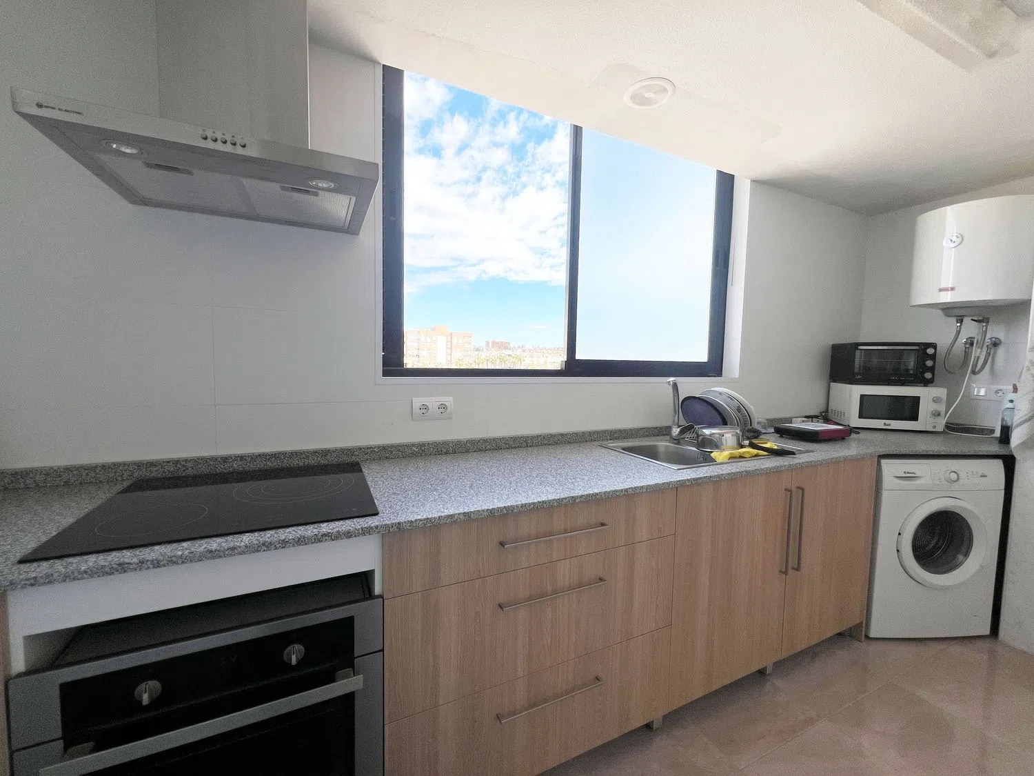Der großzügige Wohn-Essbereich ist hell und einladend und bietet direkten Zugang zu einer 12 m² großen Terrasse, auf der Sie die klare Aussicht genießen und sich entspannen können, während Sie die Umgebung betrachten. Die Küche wurde vollständig renoviert und bietet einen modernen, funktionalen Raum, in dem Sie Ihre Lieblingsgerichte zubereiten können.