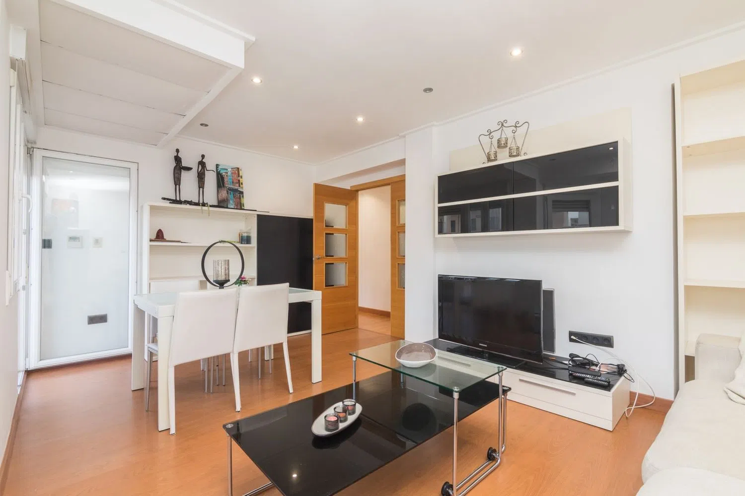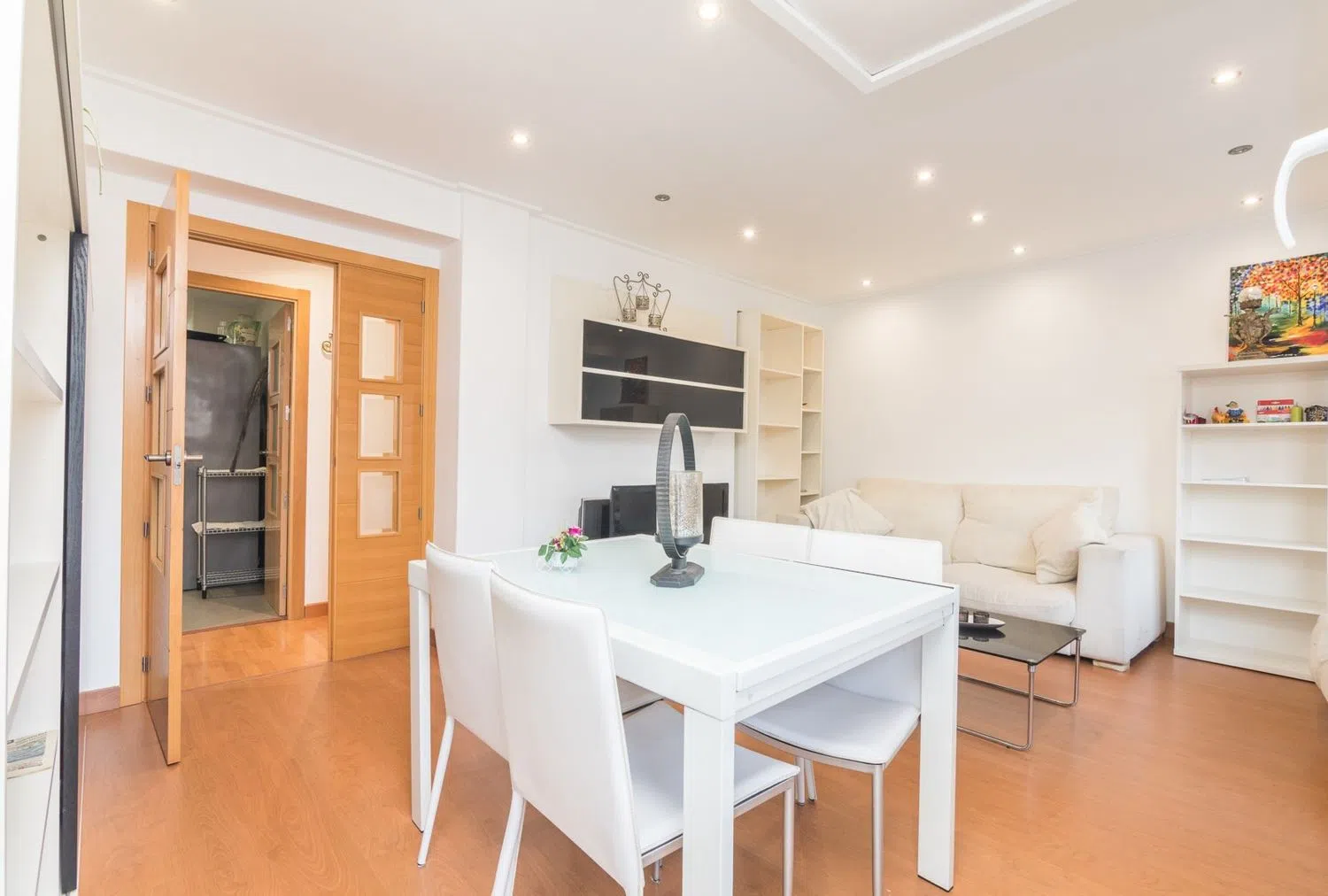 Die gesamte Wohnung wurde mit einem eleganten Parkettboden ausgestattet, der eine warme und stilvolle Note verleiht. Auch die Fenster wurden kürzlich erneuert, was für hervorragende Wärme- und Schalldämmung sorgt, und somit zu höherer Energieeffizienz beiträgt. Eine Klimaanlage mit Kältemittel- und Heizbetrieb in allen Räumen garantiert das ganze Jahr über eine angenehme Temperatur und höchsten Komfort, sowohl im Winter als auch im Sommer.