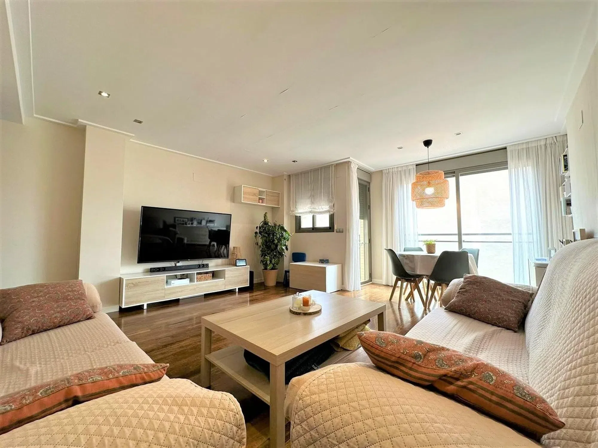 Presentamos este amplio piso mejor que nuevo, totalmente equipado y listo para entrar a vivir. Originalmente de 4 dormitorios como se muestra en planos, transformado en dos. Por otra parte destacar las grandes calidades, tanto del edificio como de la vivienda ya que sus ventanas son de Climalit, suelos de parquet y aire acondicionado por conductos en toda la vivienda. La vivienda actualmente se encuentra distribuida actualmente en dos amplias habitaciones con dos baños completos. Y un gran salón comedor de casi 30 metros y una gran cocina con una pequeña zona de lavadero. Además cuenta con trastero y terraza privativa en la terraza del edificio. Todo en la Calle Marques de Molins, a la altura de Calle Elche y Calle Santa Isabel, es decir lo tienes todo a un paso. ¡Ven a verla que enamora!