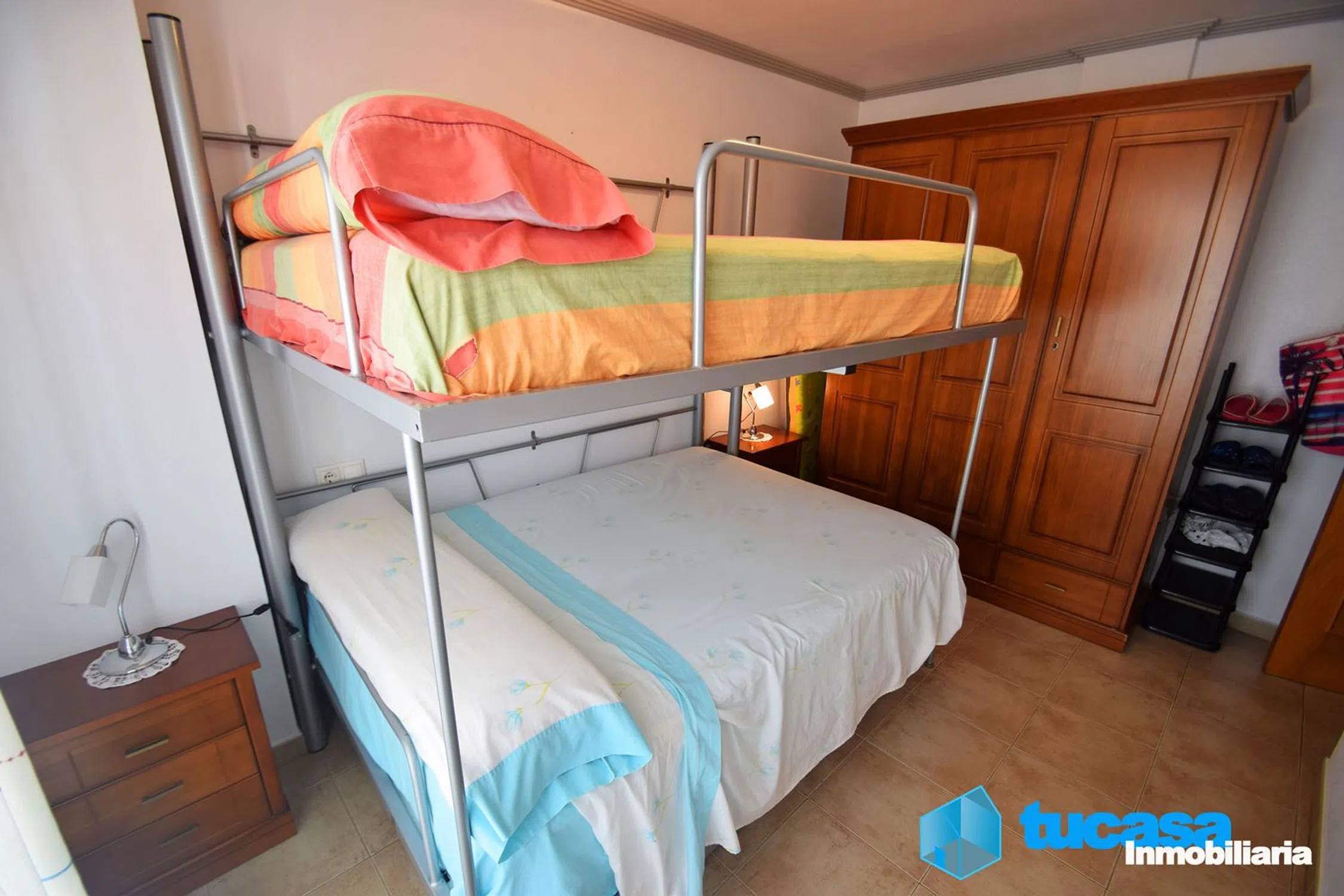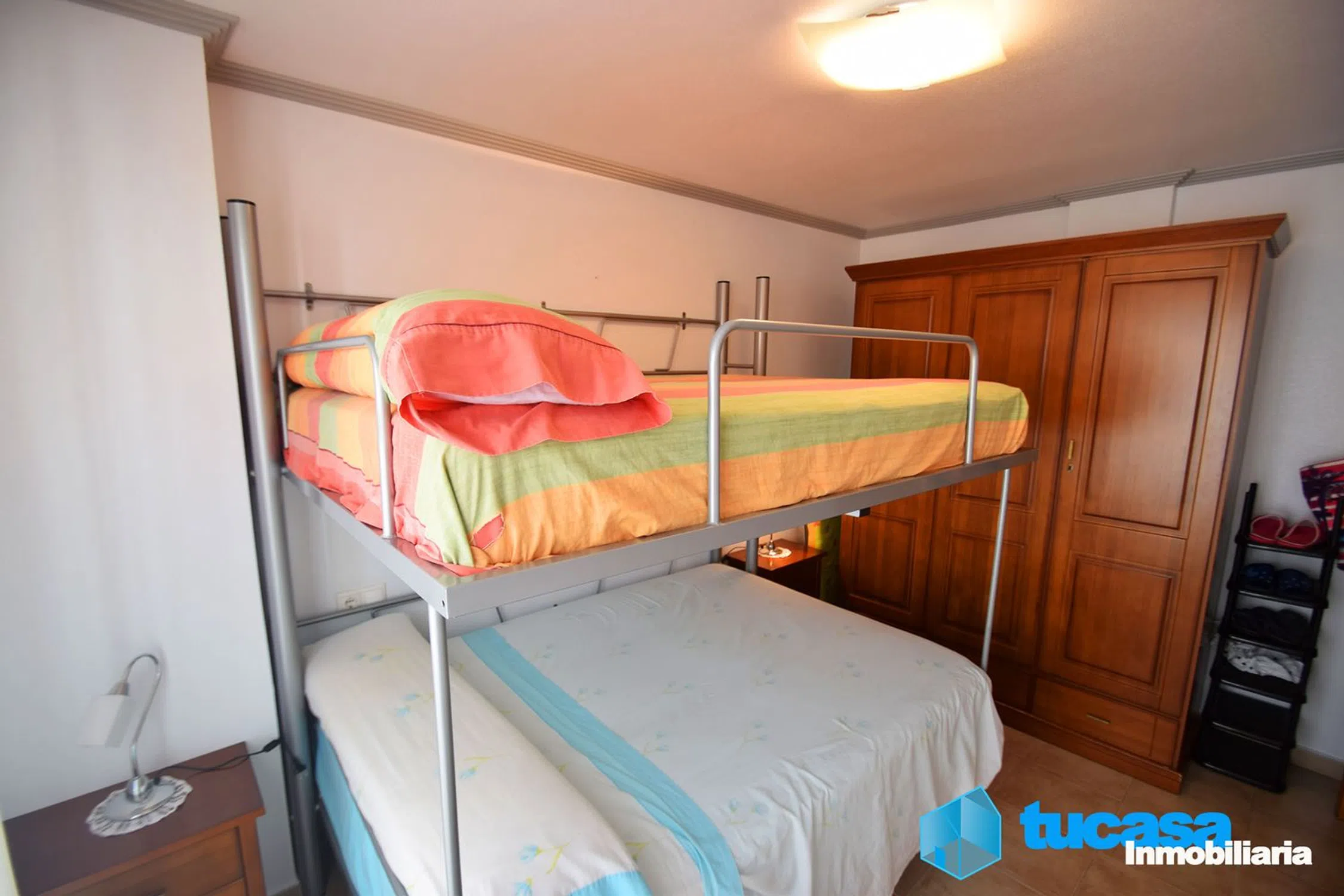 ¡Descubre tu nuevo hogar en Santa Pola! Este encan tador apartamento de 66 m², construido en 2006 que se encuentra en una de las mejores zonas de Santa Pola (Playa de Levante), a tan solo 200 metros de las impresionantes playas del Mediterráneo. Ideal para disfrutar de la brisa marina y del sol. Este apartamento cuenta con un salón comedor totalmente equipado con muebles de calidad, y con acceso a un balcón orientado al este con vistas al mar, además al estar orientada al este tiene una calidez y una luminosidad maravillosa. Esta vivienda tiene dos dormitorios dobles, el principal con armario empotrado, y él de invitados con una litera doble de 1,35. La luminosidad inunda cada rincón, creando un ambiente acogedor y cálido. La cocina tiene acceso al salón con un barra americana, está equipada con electrodomésticos de primeras marcas. Además tiene una depuradora de osmosis, ideal para esos clientes exigentes que buscan comodidad y salud. El baño, es completo con plato de ducha y mampara y ofrece comodidad y estilo. Además, la preinstalación de aire acondicionado y calefacción por conductos garantiza un confort óptimo durante todo el año. Además esta vivienda cuenta con la posibilidad de adquirir un garaje privado con una superficie de 28 m2, dotado de puerta automática, luz propia y posibilidad de poner agua. Ideal para garaje de vehículos e incluso alguna embarcación náutica. Este garaje además es en esquina y tiene un gran ventanal al exterior. La ubicación es inmejorable: cerca de tiendas, colegios, supermercados y un centro comercial, lo que hace que la vida diaria sea muy práctica. También cuenta con puerta blindada de seguridad y carpintería de primera calidad. Este apartamento es ideal como segunda residencia o para disfrutar del ambiente turístico que ofrece Santa Pola. ¡No dejes pasar esta oportunidad y ven a visitarlo!