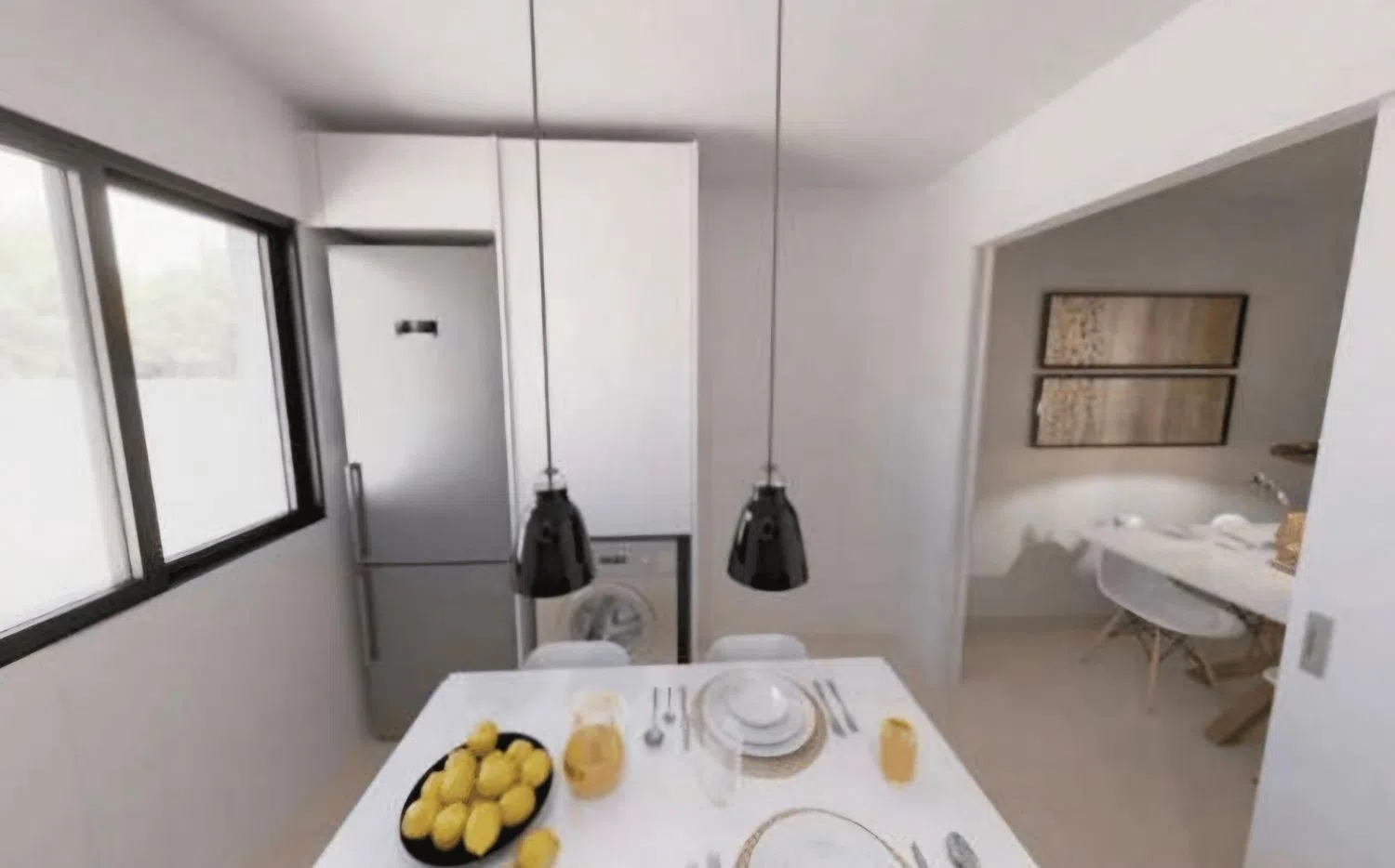Der Innenbereich der Wohnung ist mit neutralen Farbtönen gestaltet, um das einfallende Licht zu betonen. Die großen Fenster und umfangreichen Glasflächen lassen tagsüber viel natürliches Licht herein. Das architektonische Design ist modern und die Ausstattung lässt keine Wünsche offen. Die besonders sichere Eingangstür sorgt für ein gutes Gefühl der Sicherheit, während die Climalit-Fenster im gesamten Wohnbereich eine hohe Energieeffizienz bieten. Die vollständig ausgestattete Küche ist inklusive, und die Vorinstallation für Klimaanlagen sorgt für angenehme Temperaturen in der gesamten Wohnung. Außerdem ist ein umweltfreundlicher Wärmepumpenboiler integriert und ein Stellplatz im Freien vorhanden.