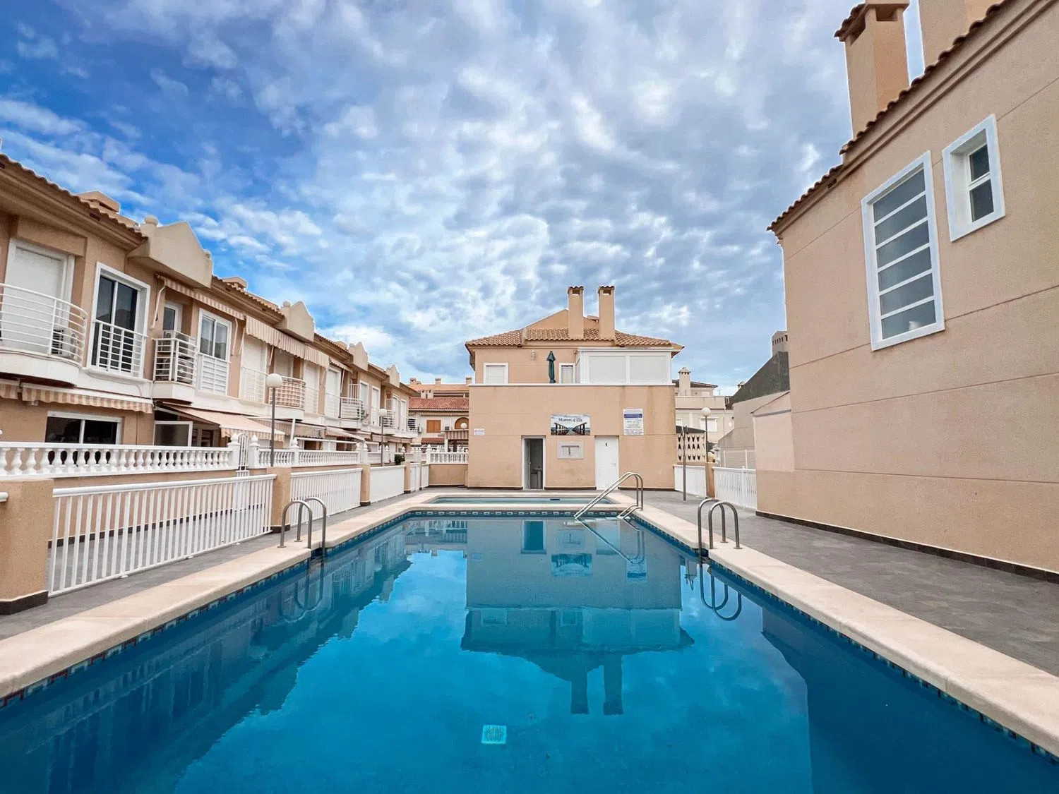 Das Reihenhaus verfügt über einen gemütlichen Kamin für die Winterabende und eine großzügige Gemeinschaftspoolanlage, die an heißen Sommertagen für Erfrischung sorgt. Es ist mit sämtlichen Annehmlichkeiten ausgestattet: einer voll ausgestatteten Küche, einem eigenen Bad, Einbauschränken und einem praktischen Patio mit Zugang zum Pool. Darüber hinaus sind Sie von allen notwendigen Dienstleistungen umgeben, wie Supermärkten, Einkaufszentren, Schulen, Spielplätzen und haben einen schnellen Zugang zu öffentlichen Verkehrsmitteln.