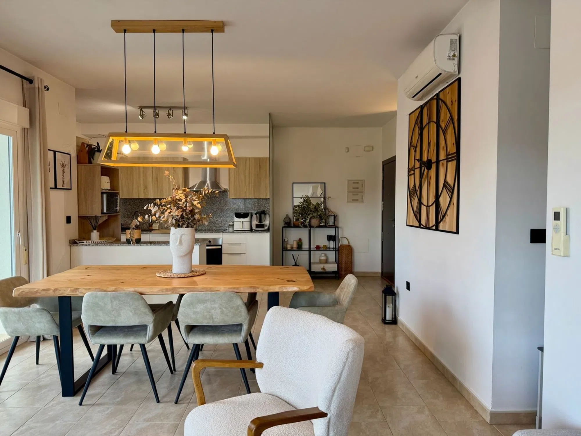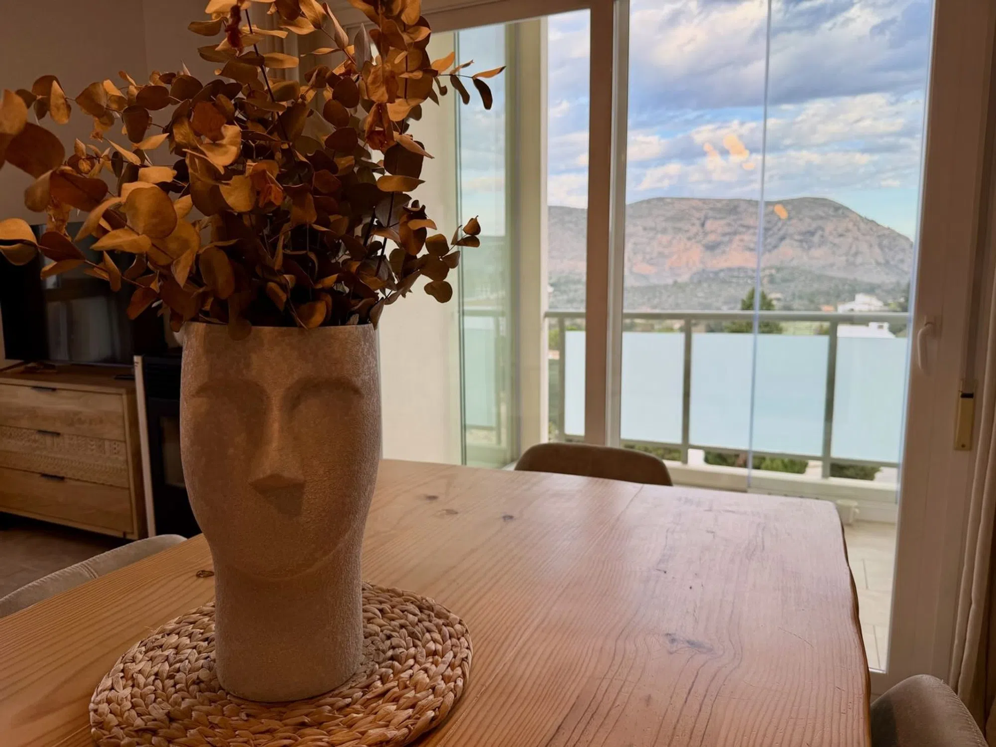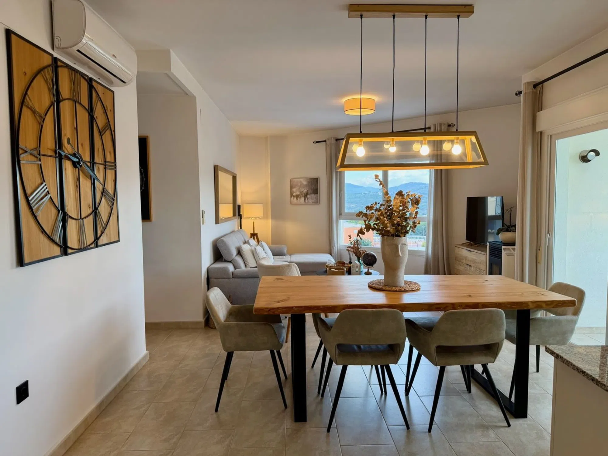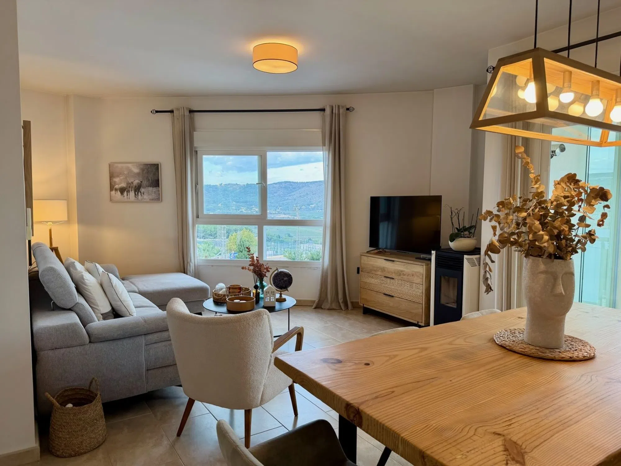 Se vende apartamento totalmente amueblado y equipado, con garaje y trastero incluidos en el precio. Edificio con ascensor construido en 2017. La vivienda consta de un amplio espacio abierto para el salón comedor, dos dormitorios con armarios empotrados y un baño. Aire acondicionado frio-calor en todas las estancias, así como estufa de pellet en perfecto funcionamiento. Todas las terrazas de la vivienda están orientadas al exterior del edificio, por lo que la vivienda cuenta con mucha luz natural durante todo el día. Dos de las tres terrazas están equipadas con acristalamiento de cortinas de cristal. Baño totalmente reformado. Muy buena ubicación ya que se encuentra en el casco urbano de Teulada, a un paseo de todos los servicios y al mismo tiempo con unas bonitas vistas abiertas a la montaña.