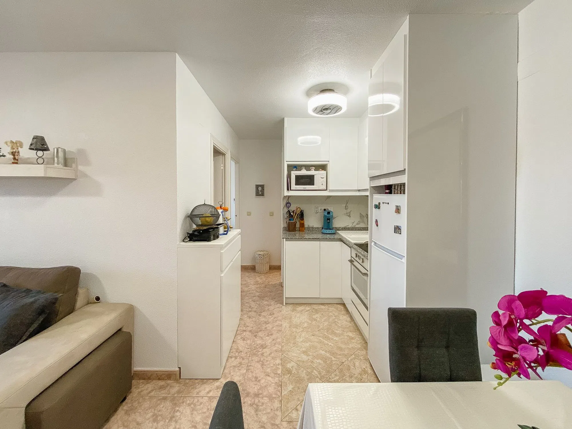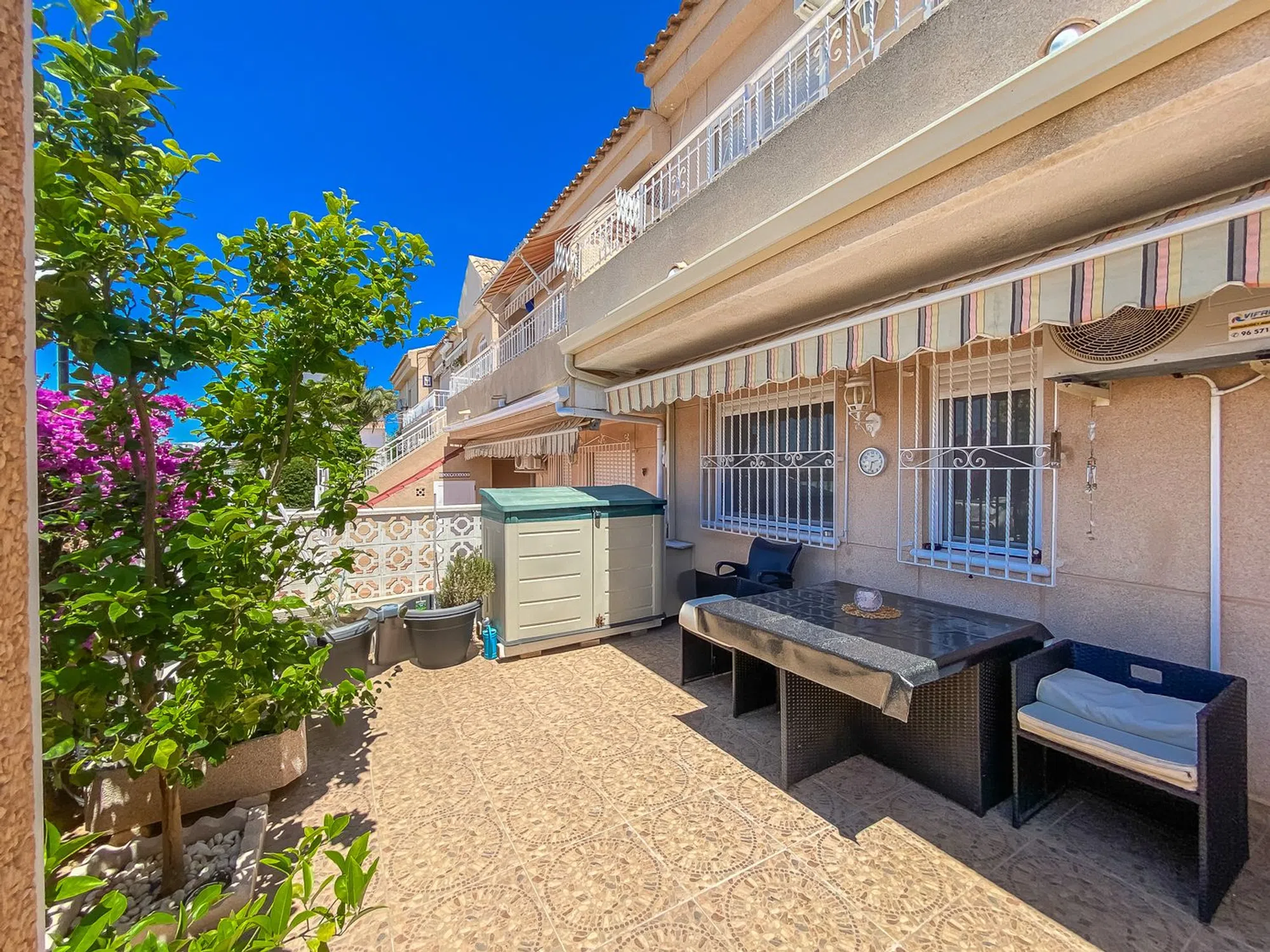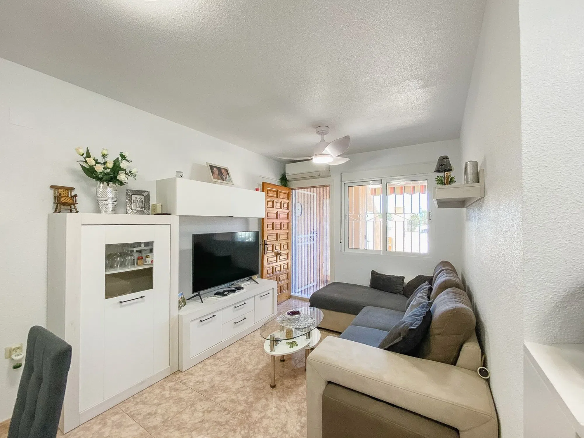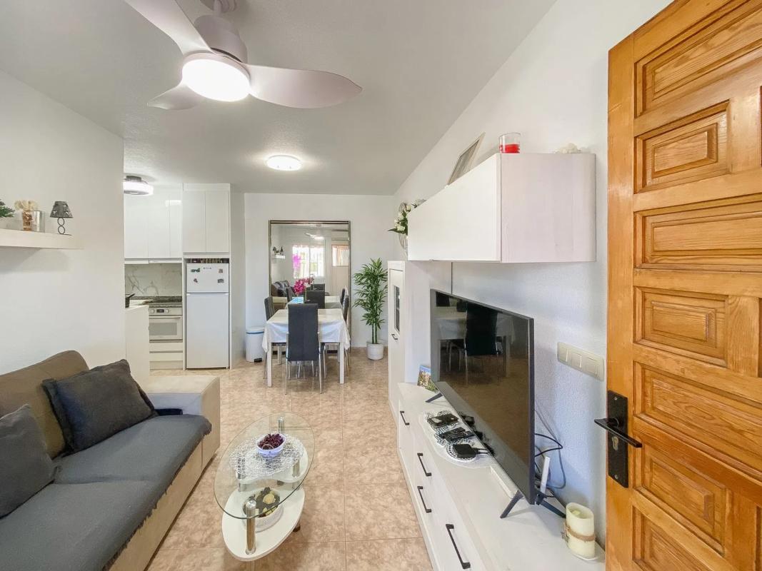 Planta baja con piscina comunitaria Presentamos este encantador apartamento en planta baja, situado frente al hermoso Parque Aromático. La vivienda ofrece un salón con espacio destinado para una mesa de comedor en un diseño de planta abierta con la cocina, dos dormitorios, un baño completo y una gran terraza orientada al oeste, que cuenta con una amplia pérgola que proporciona sombra en los calurosos y soleados días de verano. En las cercanías se encuentra la fantástica playa de La Mata. Si te cansas de nadar en el mar, el complejo dispone además de una gran y bonita piscina comunitaria. También hay una pista de tenis perteneciente a la comunidad, todo ello rodeado de un exuberante jardín verde con vistas al Mediterráneo al fondo. En los alrededores encontrarás un supermercado y una selección de restaurantes.