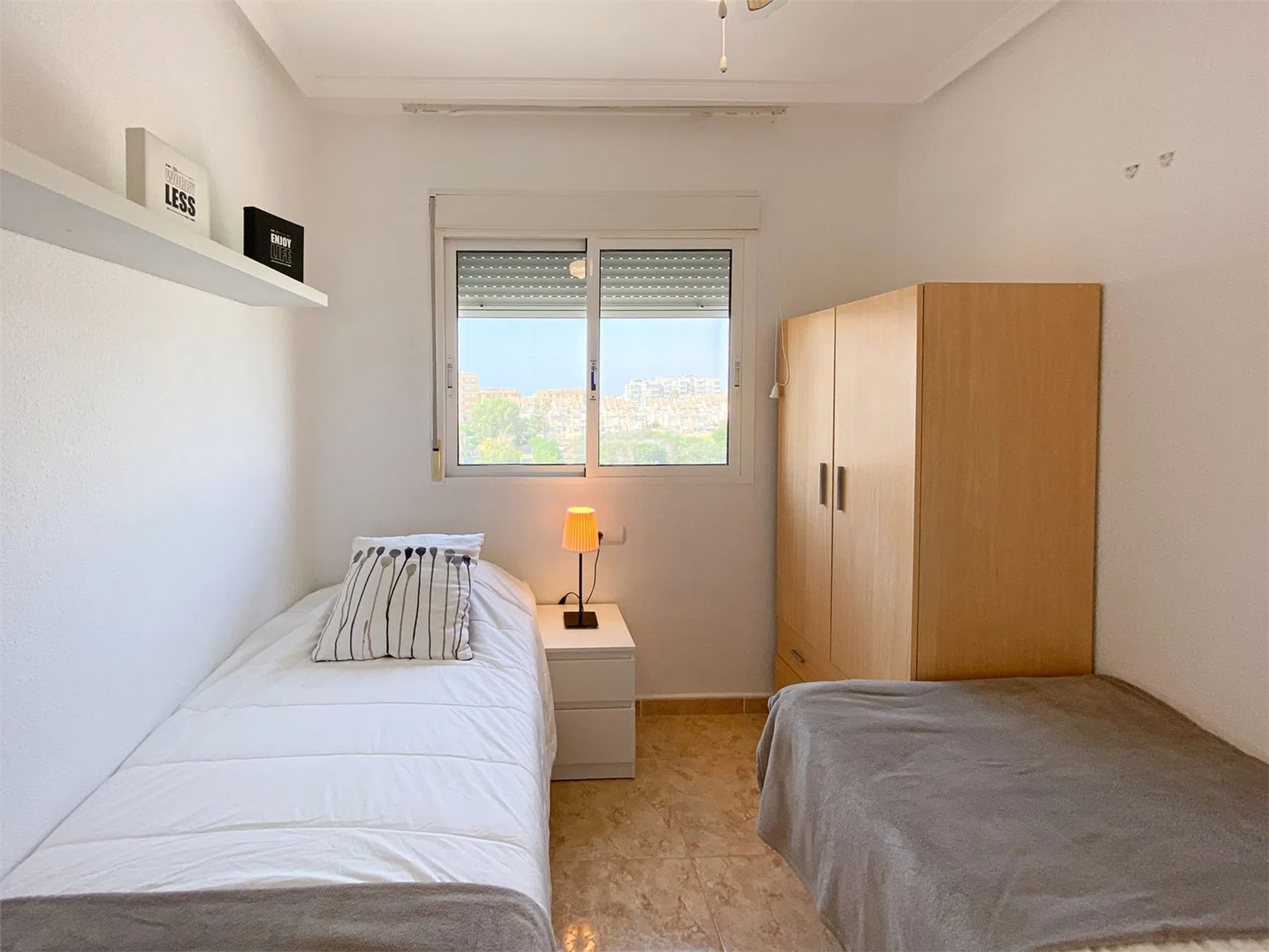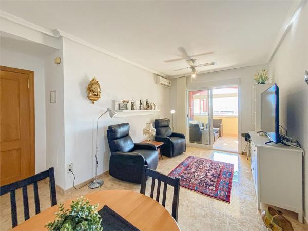 Apartamento con un gran balcon Acogedor apartamento en excelente estado, con amplio balcón en una comunidad tranquila con piscina y jardines. Dispone de dos dormitorios, un baño, cocina equipada y salón-comedor luminoso. Ubicación ideal, cerca de la playa de La Mata, supermercados, restaurantes y tiendas. Incluye plaza de aparcamiento en recinto cerrado. Perfecto como residencia habitual o vivienda vacacional.