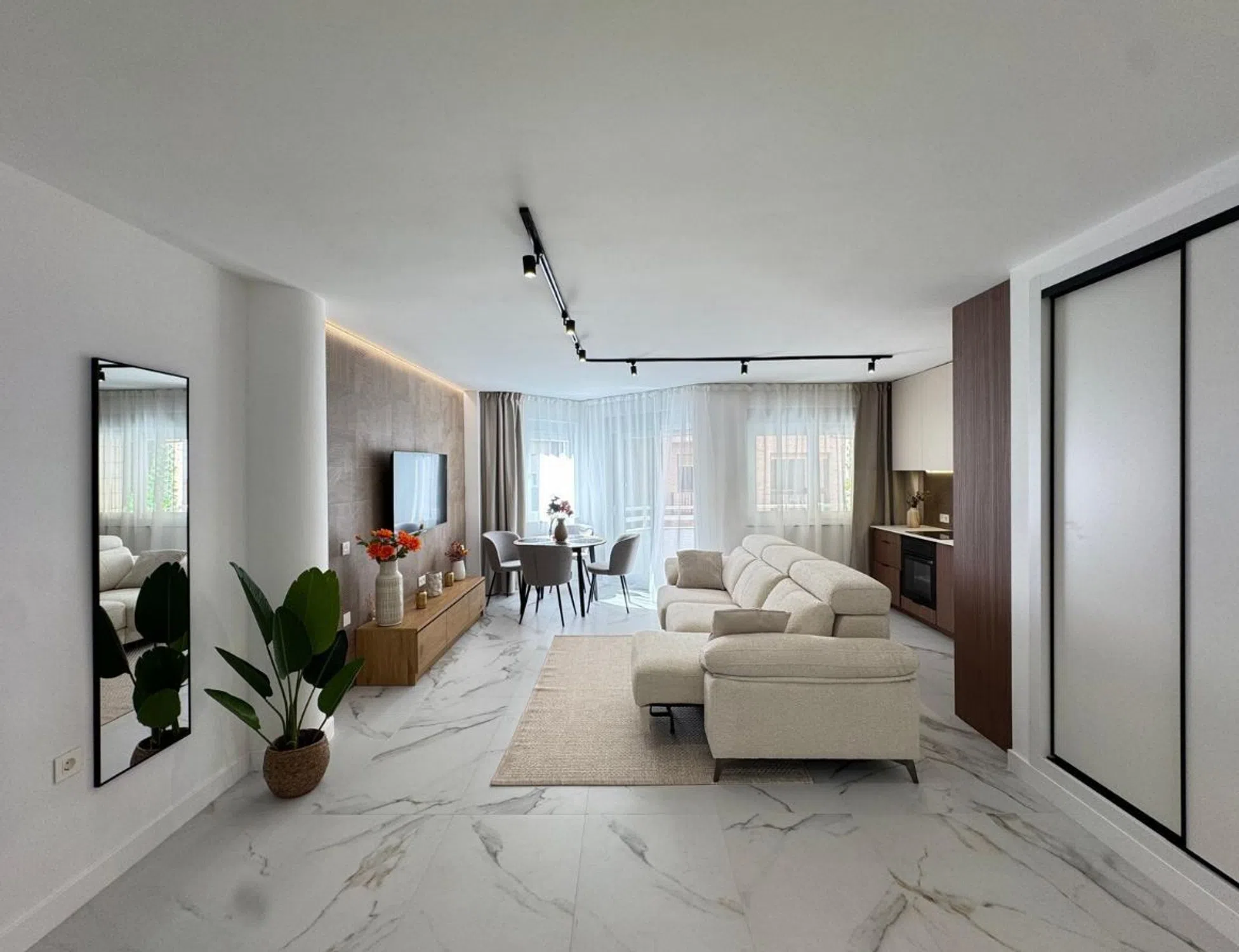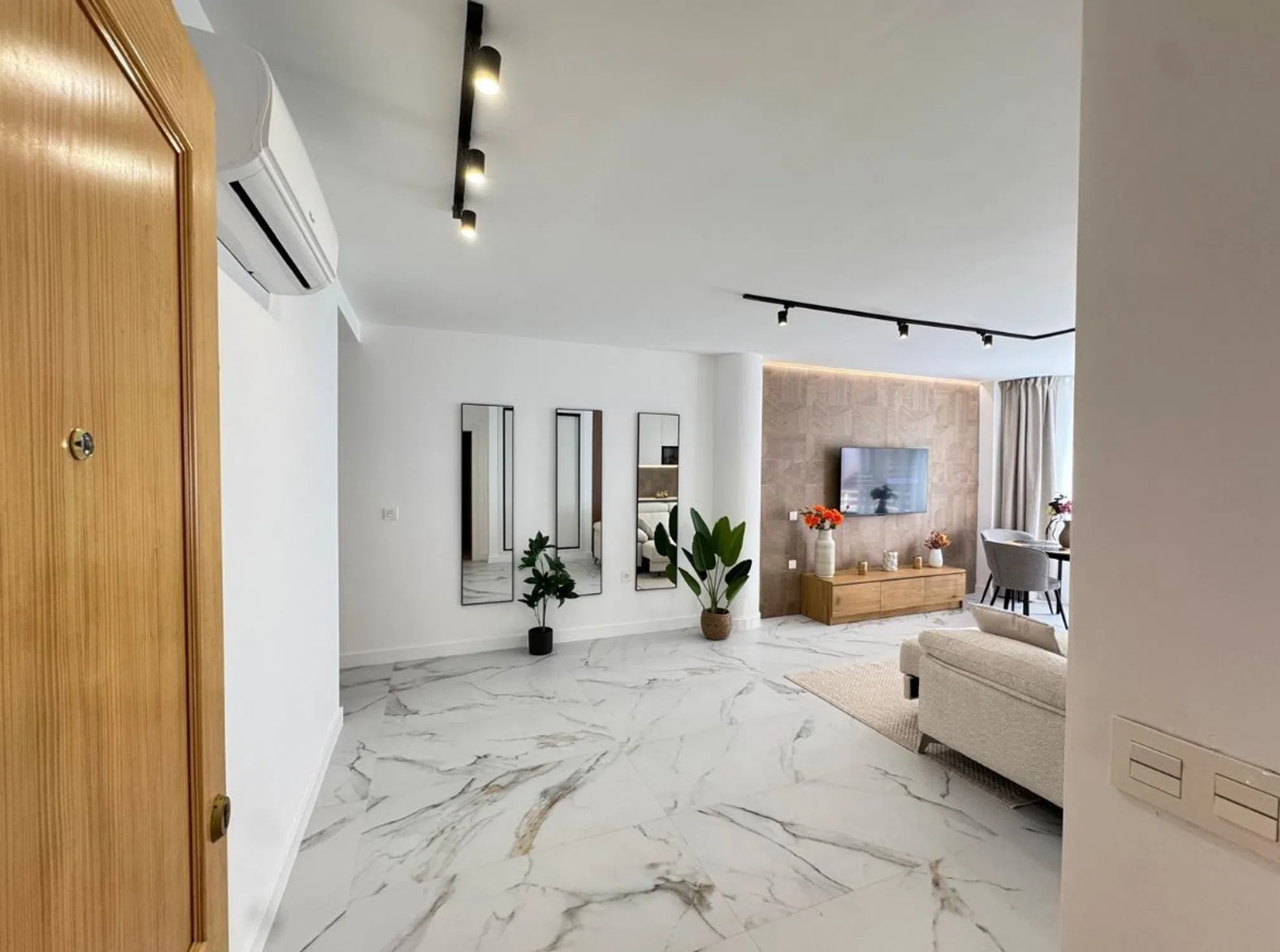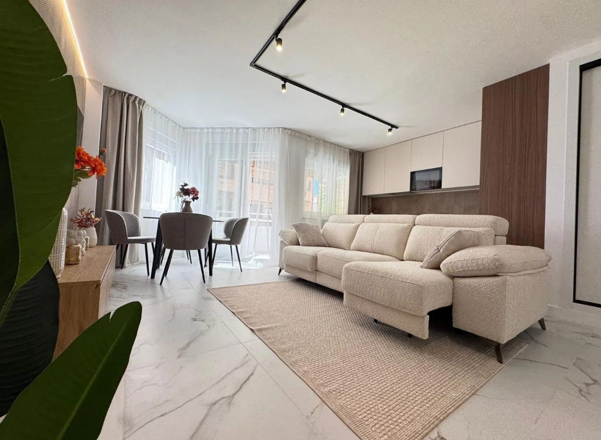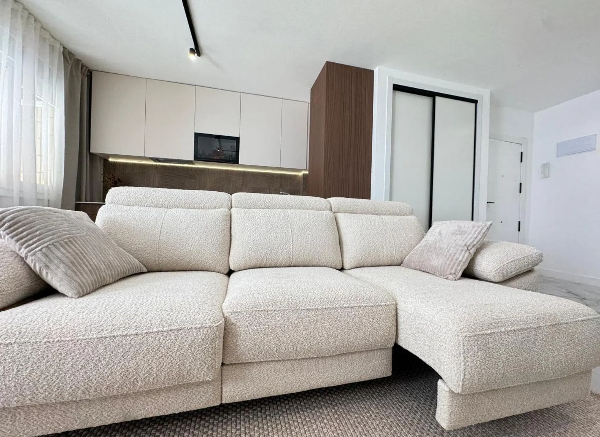 ¡Descubre tu nuevo hogar en el corazón de Torrevieja! Este espectacular piso de 105 m² construidos es la oportunidad perfecta para quienes buscan un estilo de vida moderno y cómodo, a solo unos minutos caminando de la playa. Situado en una primera planta con ascensor, este inmueble ha sido sometido a una reforma integral que le otorga un aire fresco y contemporáneo. La distribución del piso es práctica y acogedora, con 3 amplios dormitorios y 2 baños modernos que cuentan con acabados de primera calidad. El salón, luminoso y espacioso, se integra perfectamente con una cocina de diseño equipada con electrodomésticos integrados, ideal para disfrutar de momentos en familia o con amigos. Además, el acceso a un balcón exterior permite que la luz natural inunde cada rincón del hogar. El piso se entrega amueblado y decorado con un estilo actual que invita a relajarse. La carpintería interior es completamente nueva, y tanto las instalaciones eléctricas como de fontanería han sido renovadas para ofrecer el máximo confort. Los suelos de gres porcelánico de última generación y las paredes en tonos claros aportan elegancia y calidez al ambiente. Ubicado en una zona con todos los servicios a tu alcance, como autobuses, centros comerciales, colegios y zonas de ocio, este piso es ideal para quienes buscan calidad de vida cerca del mar. ¡No dejes pasar esta oportunidad única! Ven a visitarlo y enamórate de tu futuro hogar en Torrevieja.
