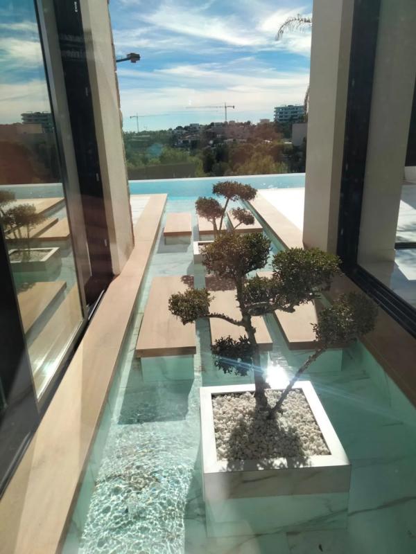 Das oberste Geschoss verfügt über ein Solarium mit einem Jacuzzi für fünf Personen und eine 20 m² große Terrasse, die den Blick auf Golf und Meer freigibt. Im Untergeschoss liegt ein 50 m² großes Studio für bis zu vier Personen mit einem kleinen Wohnzimmer, Badezimmer, Essbereich und Ankleidebereich. Der große Keller von 200 m² bietet Platz für 10 bis 12 Autos und ist mit Ausstellungsregalen, einer Werkstatt und einem Aufzug ausgestattet. Außerdem gibt es dort einen Weinkeller mit integrierter Küche und Essbereich für sechs bis acht Personen sowie ein Büro für zwei Personen mit ausreichend Stauraum.