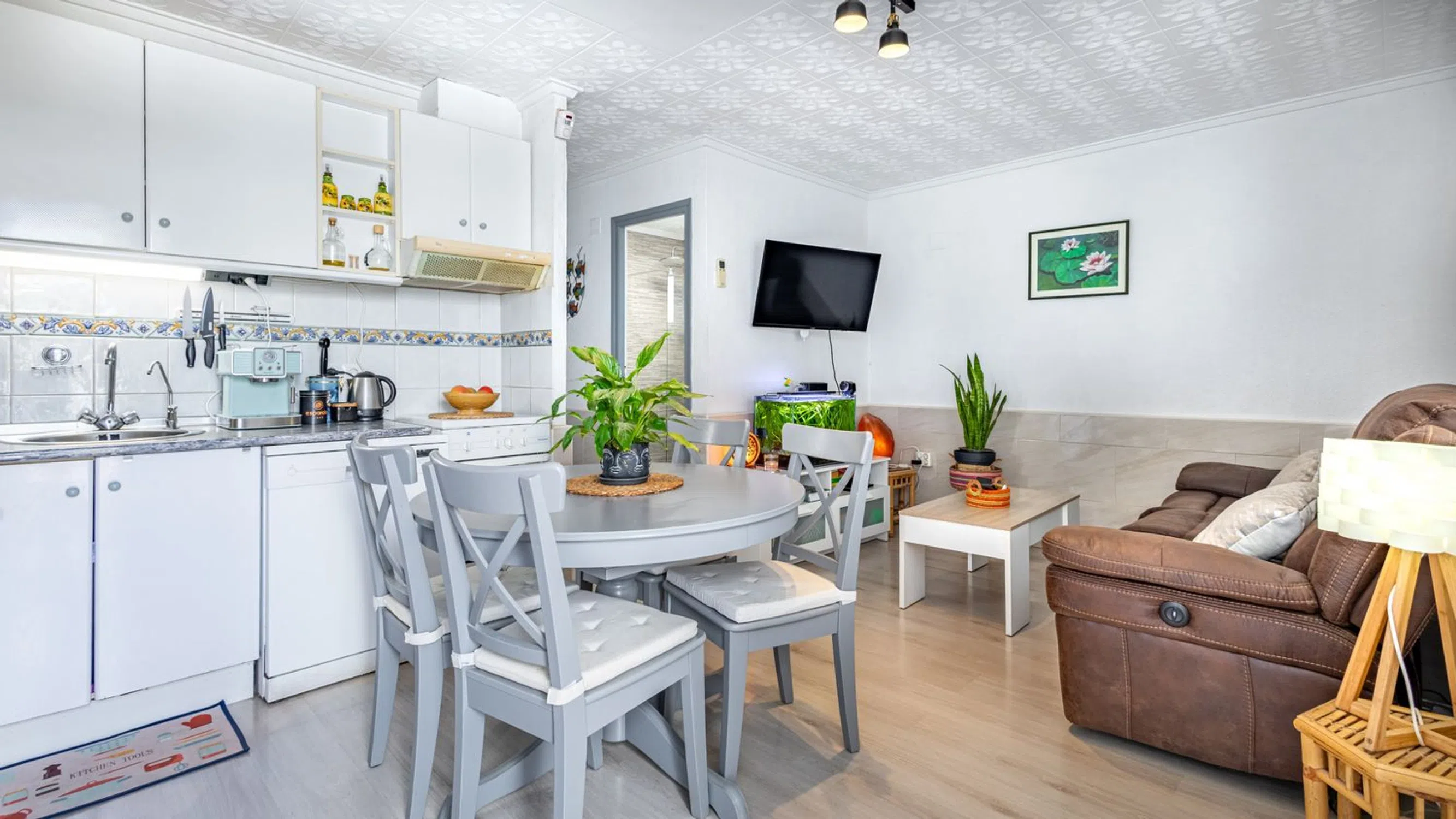 Bungalow en Esquina en Venta – La Siesta · El Salado · Torreta (Torrevieja) Este acogedor bungalow en esquina, completamente reformado, ofrece privacidad, comodidad y una excelente ubicación, siendo ideal tanto como residencia habitual como para disfrutar de vacaciones en la Costa Blanca. La vivienda cuenta con 50 m² útiles sobre una parcela privada de 30 m², destacando un amplio patio orientado al suroeste con gran toldo, perfecto para comidas al aire libre y momentos de relax durante todo el día. En su interior dispone de un luminoso salón con cocina de concepto abierto y aire acondicionado por split, dos dormitorios bien distribuidos y un baño moderno reformado con ducha y ventana. Uno de los dormitorios tiene acceso directo a un patio interior con espacio de almacenaje, mientras que el segundo dormitorio goza de abundante luz natural gracias a su ventana exterior. Características principales: Tipo: Bungalow en esquina Dormitorios: 2 Baños: 1 Superficie útil: 50 m² Superficie construida: 53 m² Parcela: 30 m² Orientación: Suroeste Estado: Reformado Año de construcción: 1984 IBI: 124 € / año Comunidad: No especificado Garaje/Parking: No incluido Ubicación: A solo 3 km del centro de Torrevieja Cerca de restaurantes, servicios y parada de autobús urbano A pocos minutos del Centro Comercial Habaneras y centros educativos Próximo a una pista de petanca, punto de encuentro vecinal Una propiedad lista para entrar a vivir en una zona consolidada y bien comunicada.