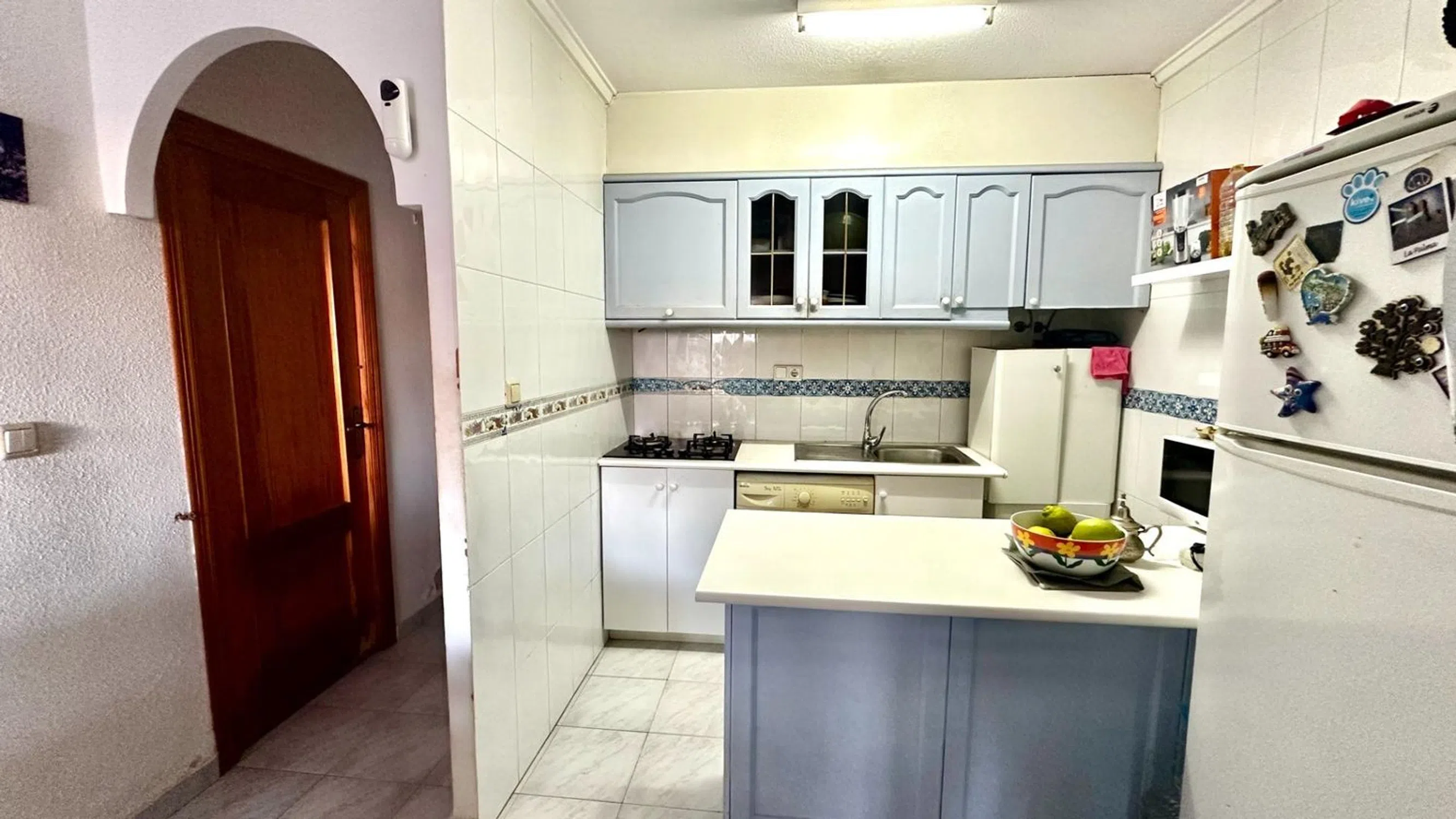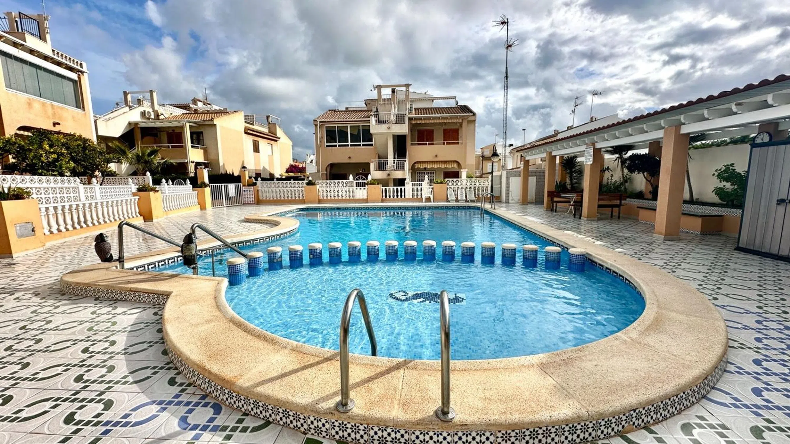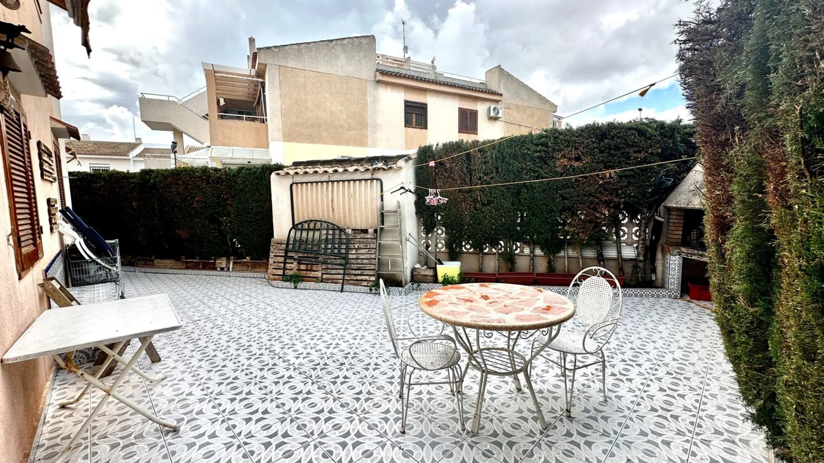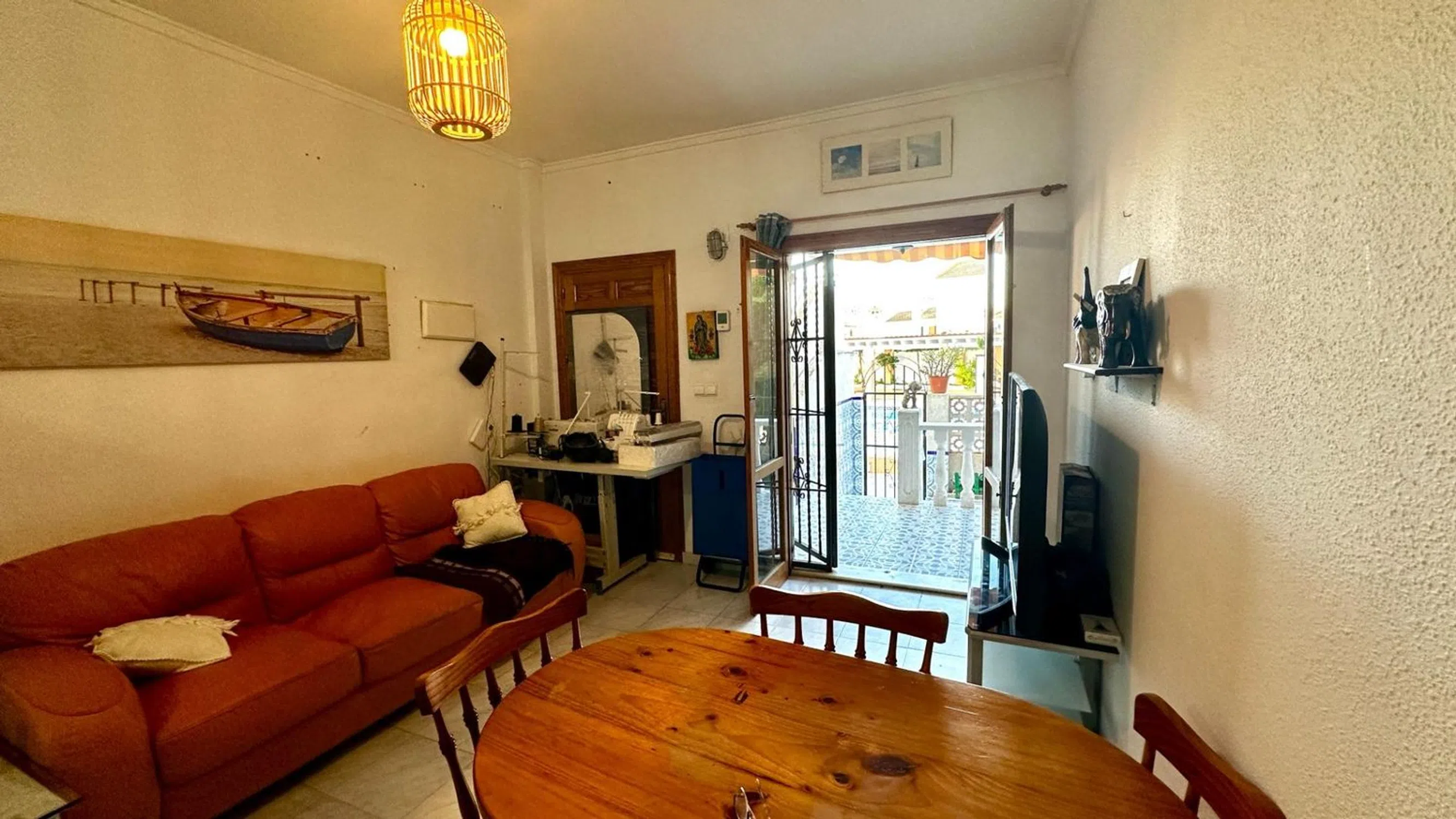 Bungalow en planta baja en la reconocida urbanización Bravo Mar, en la zona de los Frutales, una de las zonas más agradables y demandadas de Torrevieja. Su ubicación es excelente: a poca distancia a pie de la playa de Los Locos y de las Calas, en un entorno tranquilo, con buen vecindario y baja densidad urbanística. La vivienda se encuentra en perfecto estado. La cocina americana, baño completo, y el inmueble se vende amueblado y equipado, listo para entrar a vivir. Uno de sus mayores atractivos es su amplio espacio exterior: 60 m2 en total las dos terrazas, distribuidos entre una terraza delantera con orientación sur y otra trasera con orientación oeste, permitiendo elegir entre sol o sombra en cualquier momento del día. La terraza posterior ofrece además una barbacoa de obra y disfruta de buena privacidad. También hay un porche a la entrada de la vivienda. Originalmente la vivienda contaba con dos dormitorios, pero se añadió un tercer dormitorio y una cocina en la parte posterior, aprovechando el generoso espacio disponible y es completamente independiente de la vivienda, ideal para familiares que disfrutan de vacaciones. En resumen, un bungalow cuidado, funcional y con grandes espacios exteriores, ideal tanto para vacaciones en familia como para vivir todo el año en Torrevieja en un entorno tranquilo y muy bien ubicado. ¡Le invitamos a verlo, le gustará! pide hacer una visita en el telefono.