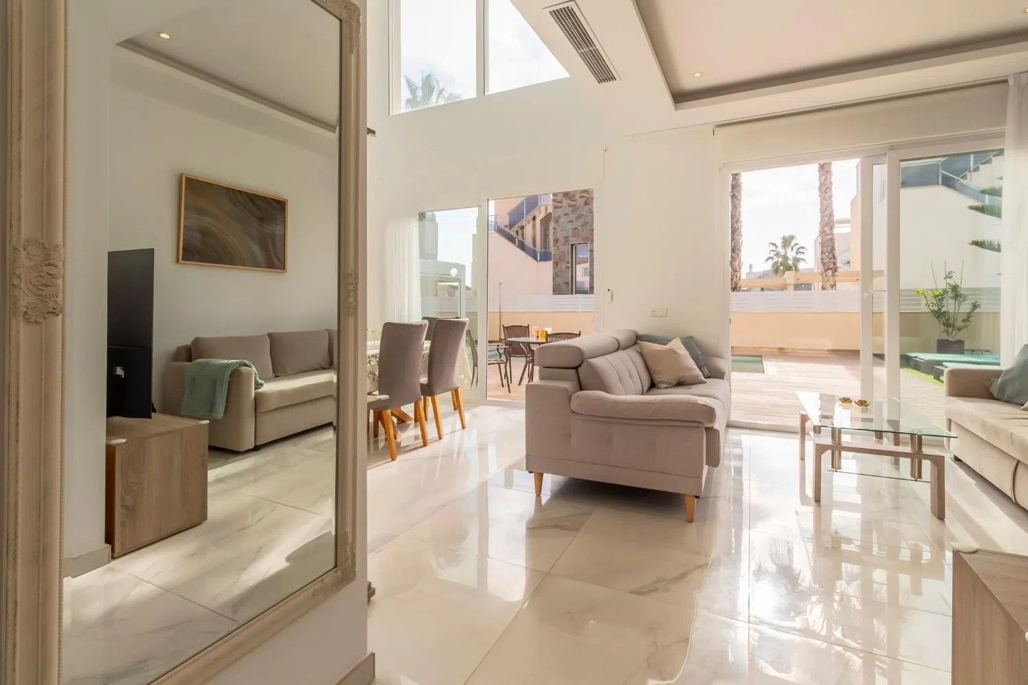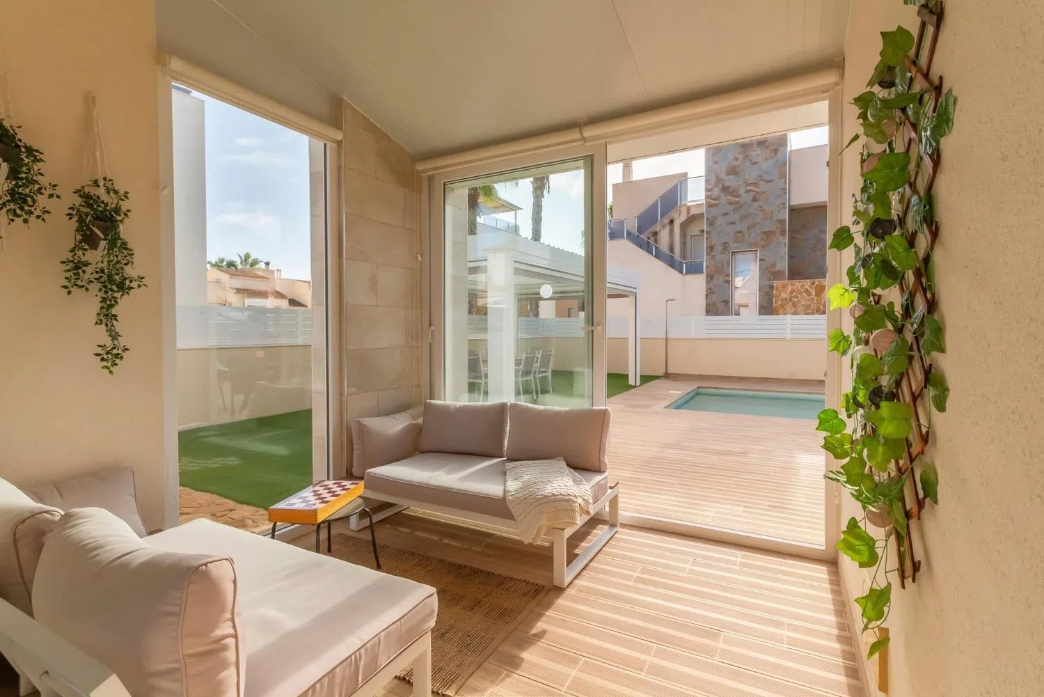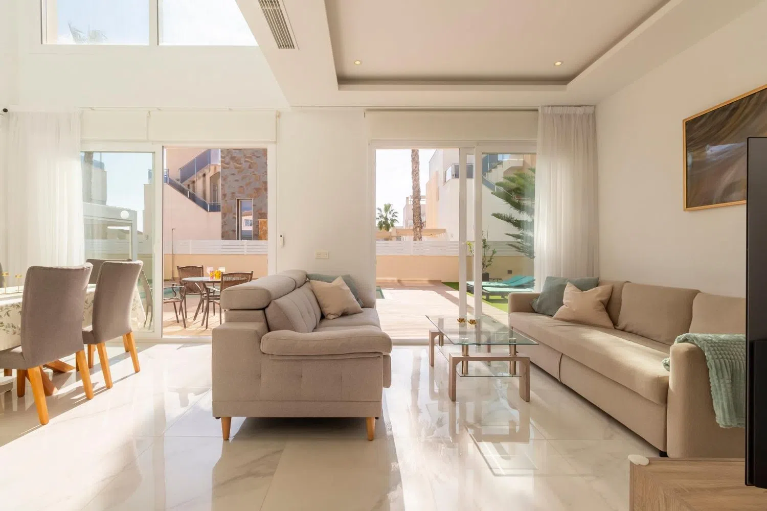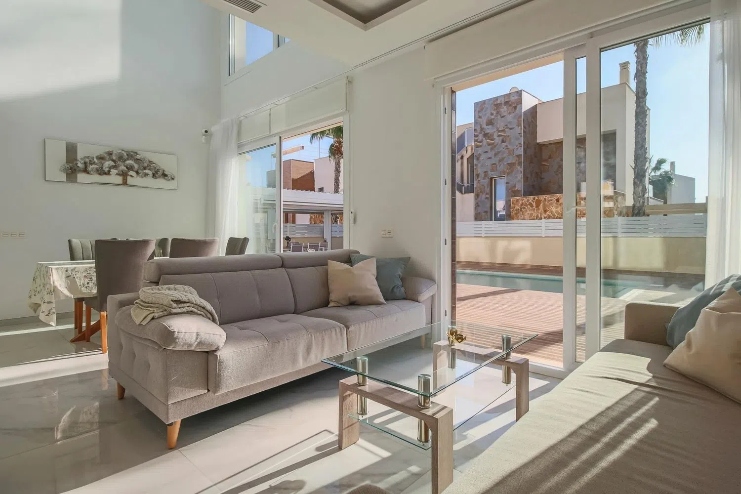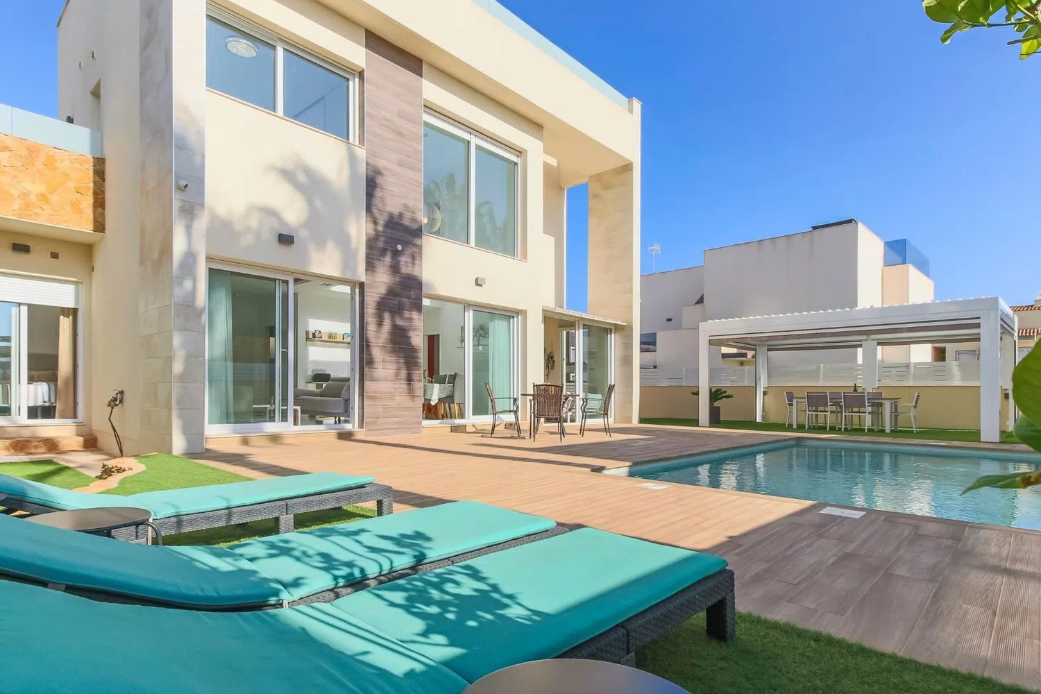 Esta elegante y bien diseñada villa está situada en una zona atractiva y codiciada, perfecta tanto para residencia permanente como para vacaciones. Con una distribución cuidadosamente planificada que incluye tres amplios dormitorios, tres baños y una piscina privada, la propiedad ofrece un ambiente de vida armonioso y confortable. Diseño equilibrado y materiales de alta calidad El interior de la villa destaca por su arquitectura moderna y materiales seleccionados con esmero. El diseño de planta abierta crea una transición fluida entre la sala de estar, el comedor y la cocina completamente equipada. Los luminosos dormitorios son amplios y están diseñados para brindar una sensación de comodidad y relajación, mientras que los baños están elegantemente decorados, combinando funcionalidad y estilo. Piscina privada y espacio exterior La piscina privada de la propiedad es un punto central para la relajación y el ocio. Está rodeada de una terraza soleada que ofrece espacio para muebles de exterior y una barbacoa, ideal para reuniones sociales o momentos de tranquilidad bajo el sol español. El jardín de fácil mantenimiento añade comodidad a la propiedad y brinda espacio para personalizaciones según el gusto del propietario. Ubicación privilegiada Situada cerca de Torre del Moro, la villa combina la proximidad a hermosas playas, restaurantes y servicios, con la tranquilidad y privacidad de la zona. Con buenas conexiones de transporte y una corta distancia en coche a centros comerciales y otras comodidades, esta propiedad es una excelente opción para quienes buscan accesibilidad y exclusividad en un mismo lugar. Para más información o para programar una visita privada, no dude en contactarnos.
