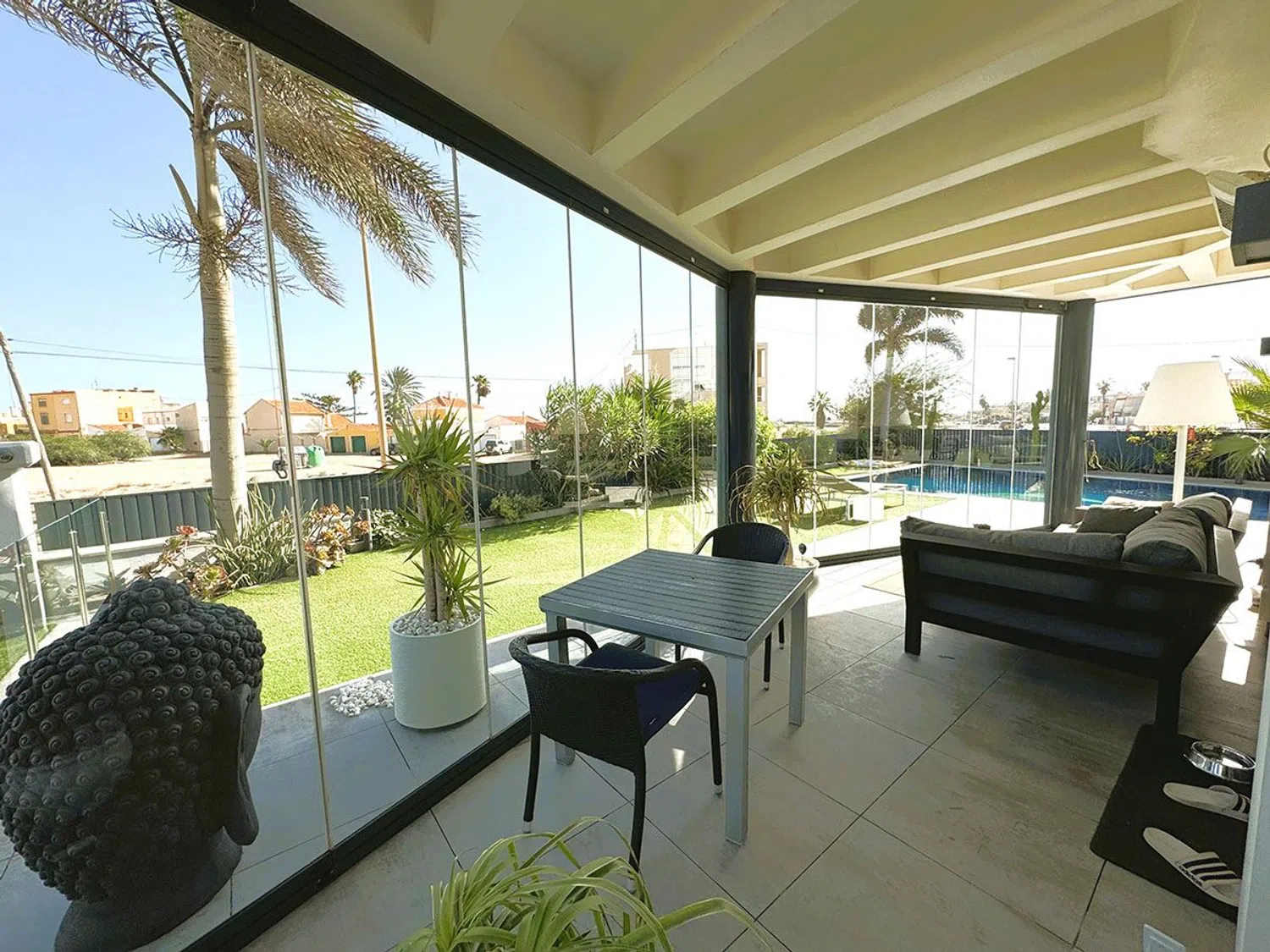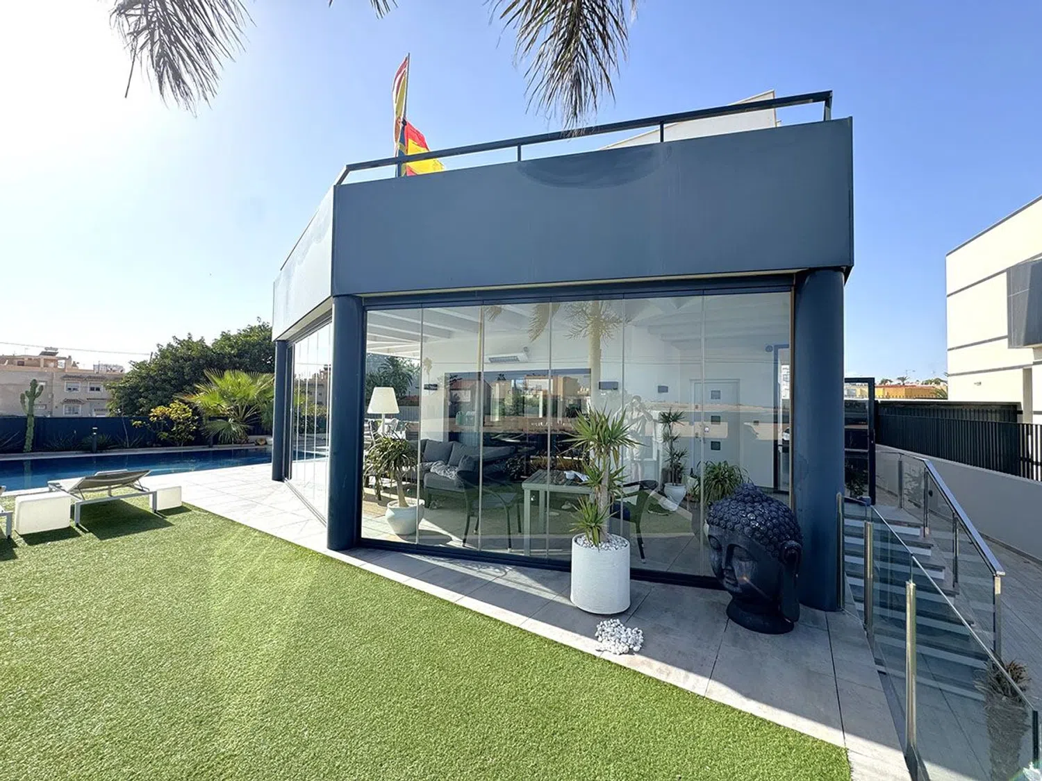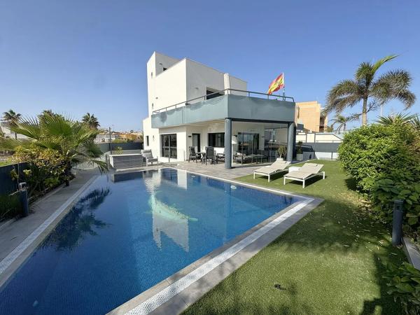 Esta exclusiva villa de 232 m², ubicada en primera línea de playa sobre una parcela de 448 m², ofrece un diseño moderno y tres plantas de espacios luminosos y funcionales. En el exterior, cuenta con amplias terrazas —tanto cubiertas como al aire libre— y una piscina climatizada de agua salada, ideal para disfrutar todo el año. En la planta principal, la villa dispone de un salón-comedor espacioso y luminoso, cocina semi-independiente, un baño completo y una habitación amplia. El sótano alberga una zona de lavandería, un gran salón, una habitación adicional y otro baño completo. La primera planta cuenta con dos habitaciones con acceso directo a una gran terraza con vistas al mar, además de dos aseos. Completamente amueblada y equipada, la villa incluye calefacción por suelo radiante y aire acondicionado por conductos, creando un hogar listo para disfrutar en una ubicación exclusiva frente al mar.