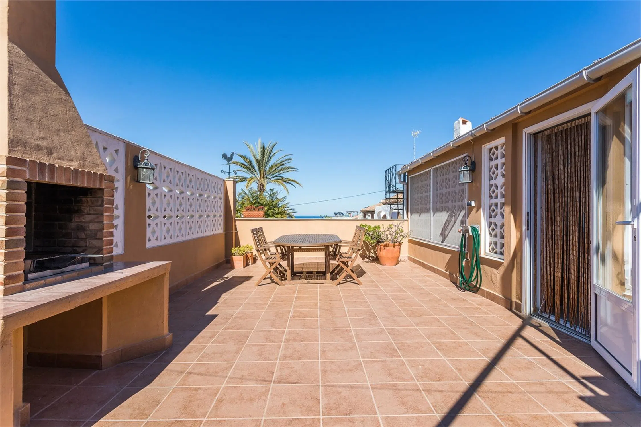 Gran casa adosada con vistas al mar Esta magnífica casa solo puede describirse como verdaderamente única, ubicada en una cima sobre la playa de La Mata, a solo unos cientos de metros del mar Mediterráneo y de todo tipo de servicios. La casa está decorada con un estilo rústico moderno con un toque mediterráneo. Hay una amplia terraza con una barbacoa de obra ubicada en la parte posterior de la casa y un gran solárium desde el cual se puede ver y disfrutar del clima mediterráneo durante todo el año. Hay mucho espacio tanto para la familia y como para los amigos, con 4 dormitorios, 2 baños y 2 amplias salas de estar, ambas con chimenea.